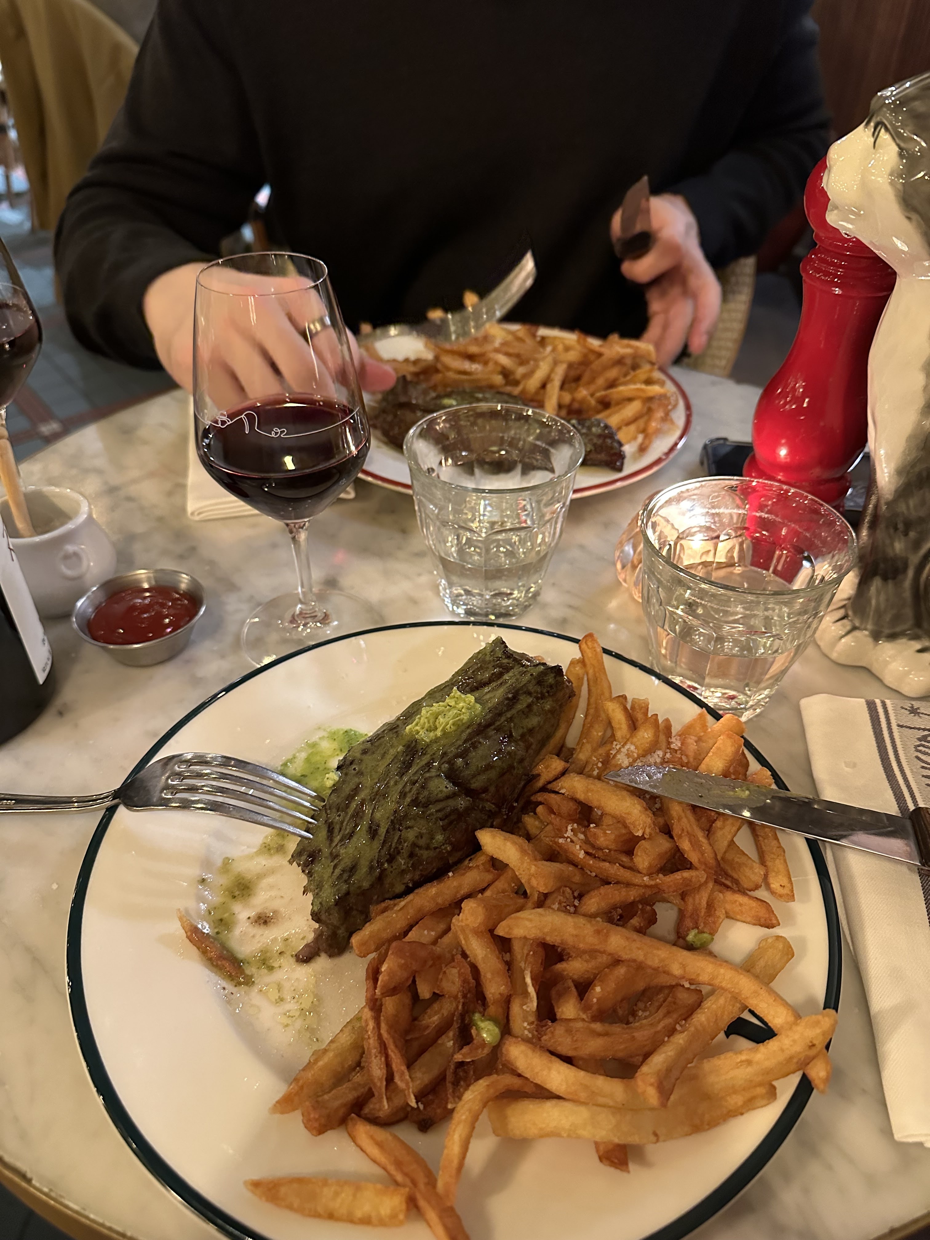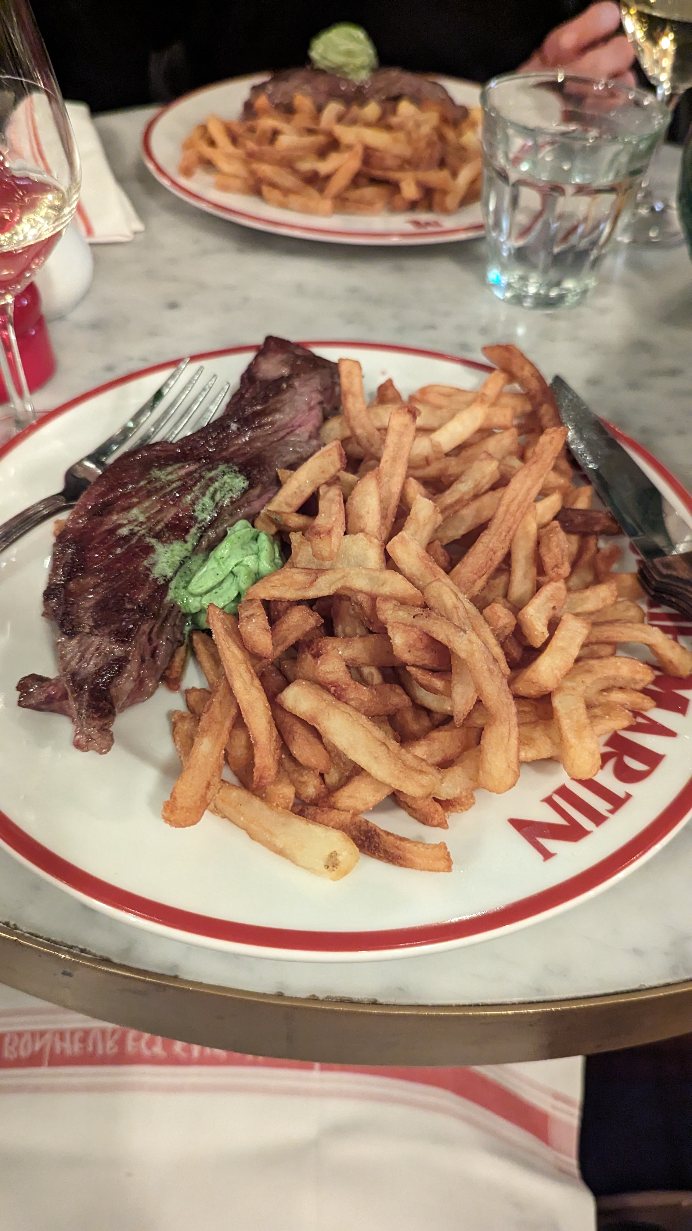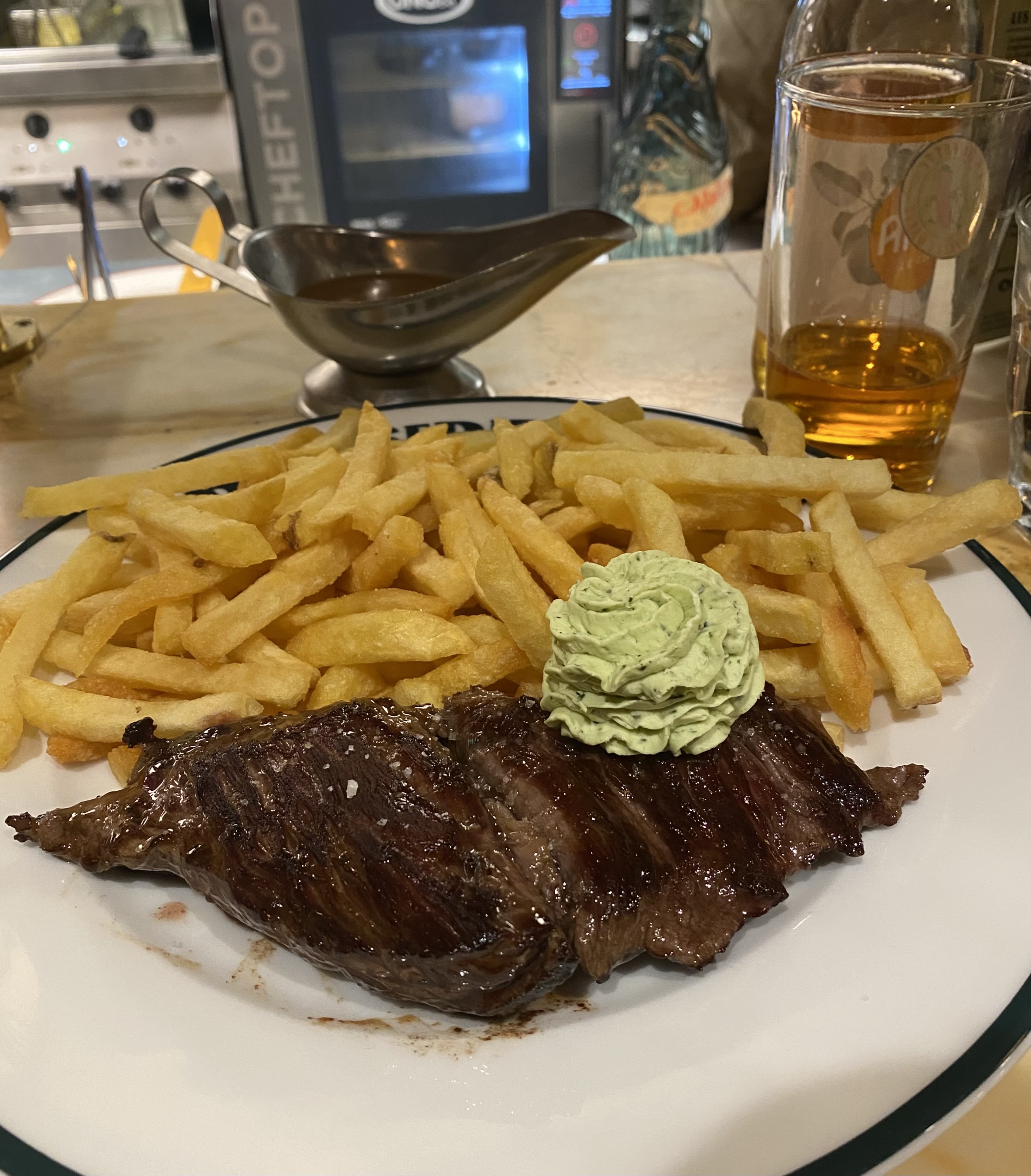 Le steak frites était le pire que j'aie jamais mangé dans un restaurant. Je suppose que je n'ai probablement pas eu de chance avec la coupe qu'ils m'ont servie, mais c'est néanmoins une mauvaise expérience pour moi. Le service était également terriblement lent et il était très difficile d’attirer l’attention du serveur. Expérience très différente de l’autre brasserie que j’ai visitée de cette chaîne. Je ne reviendrai pas chez Martin.