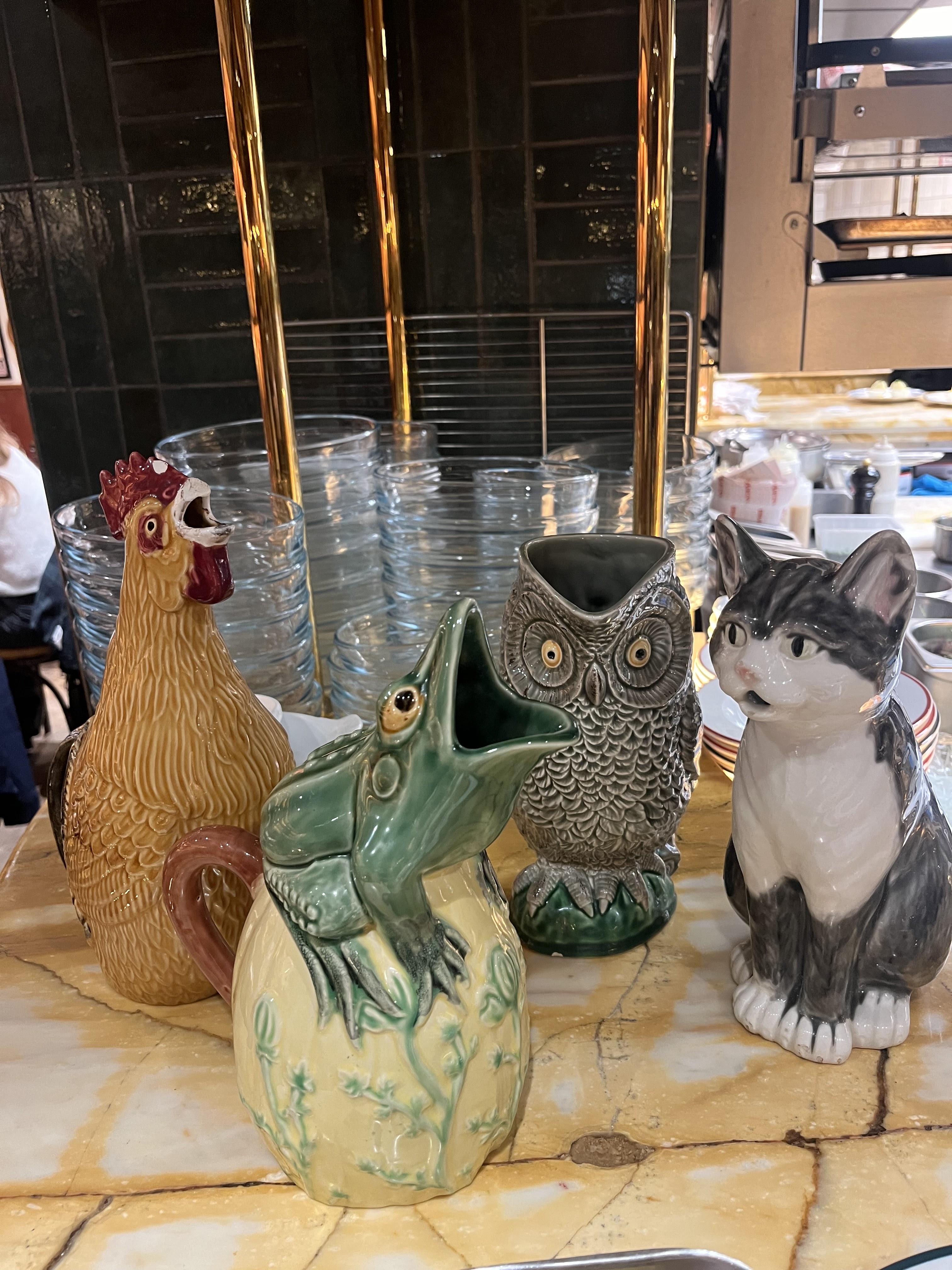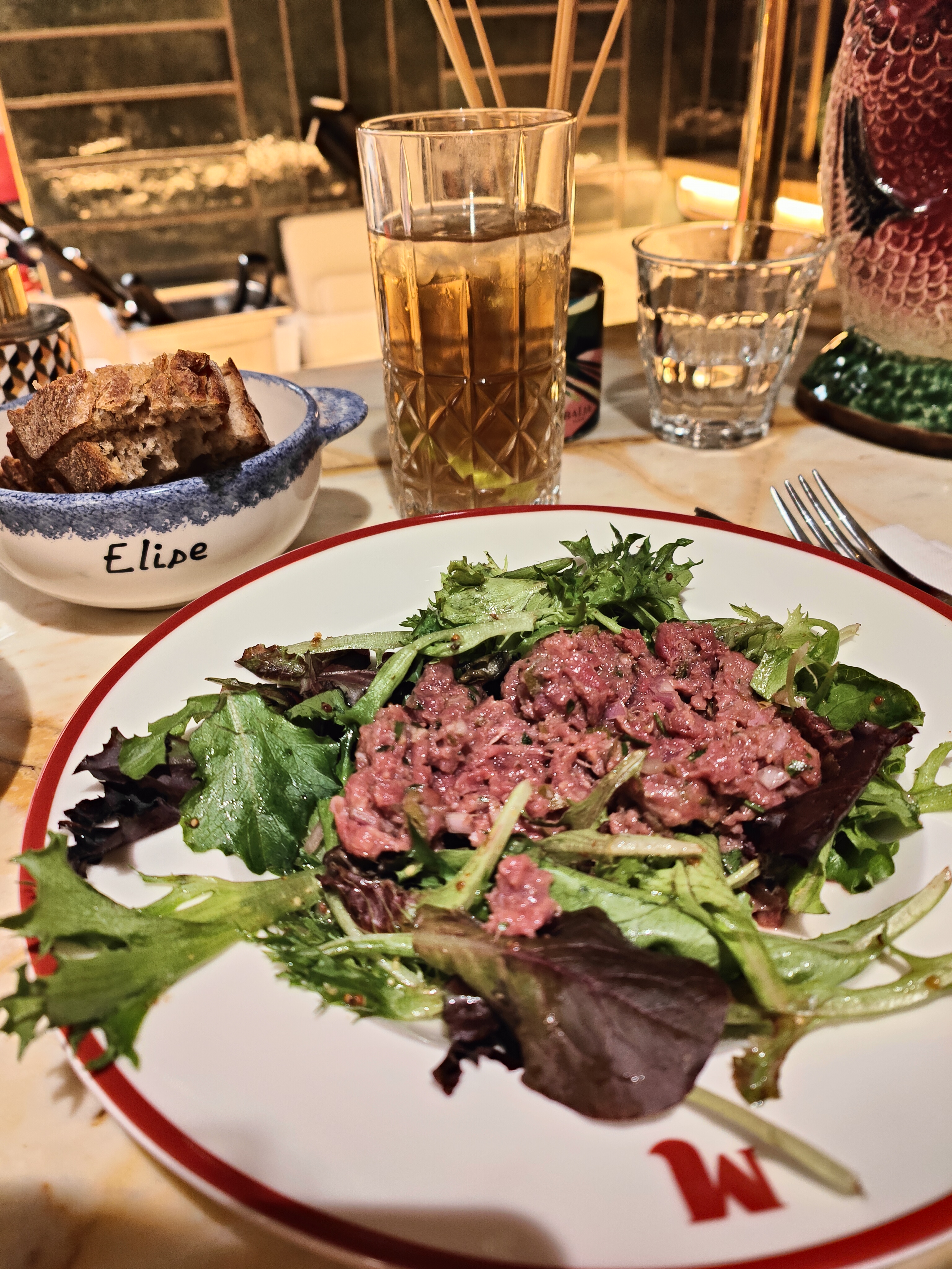 Très belle décoration ! Ce lieu est parfait pour un déjeuner ou un dîner 🍲 ! Je recommande fortement les œufs 🥚 en entrée et la saucisse purée (j’ai oublié de prendre la photo) ! Petit plus pour l’équipe qui est très sympathique et les carafes en forme d’animaux !