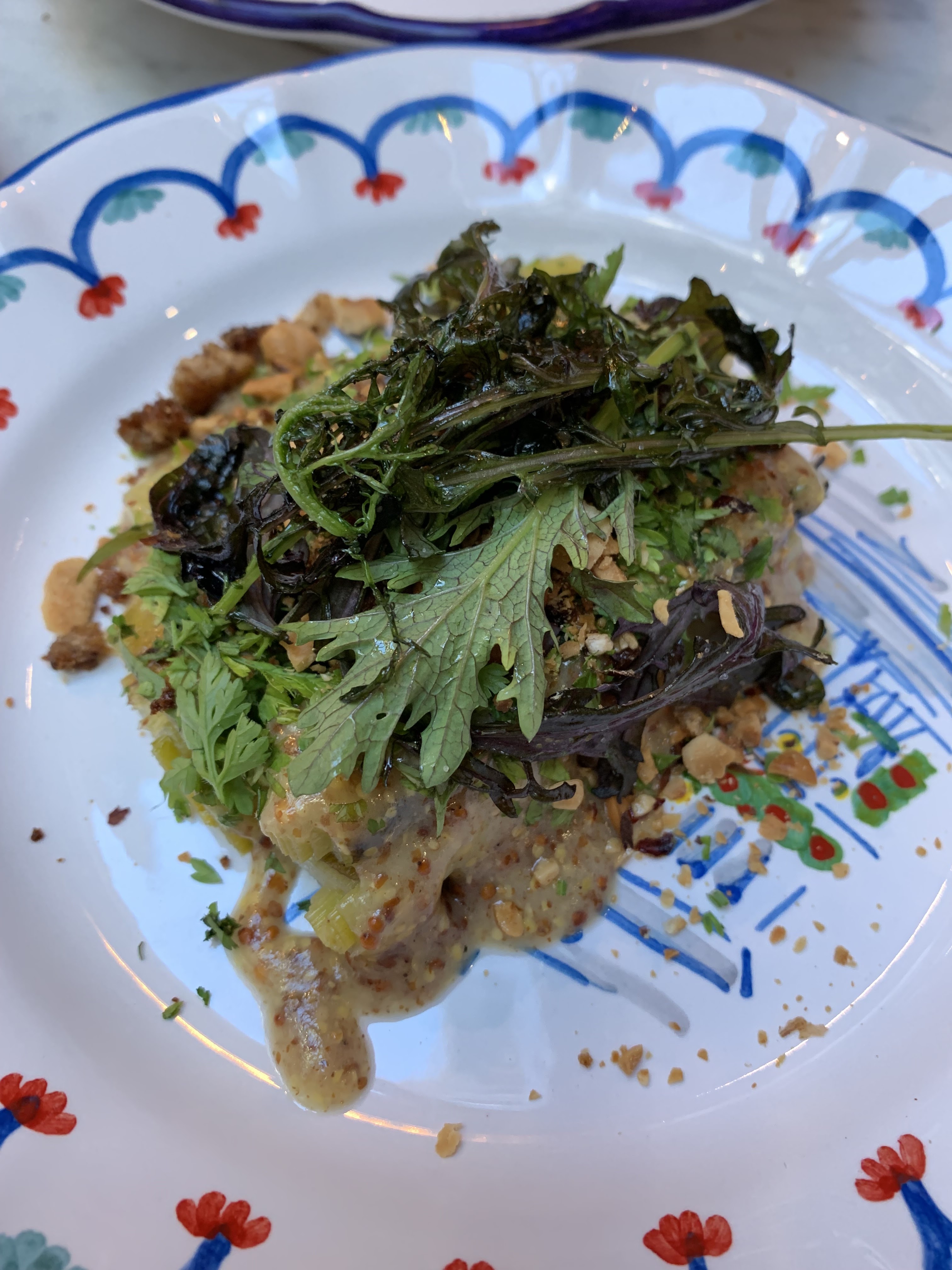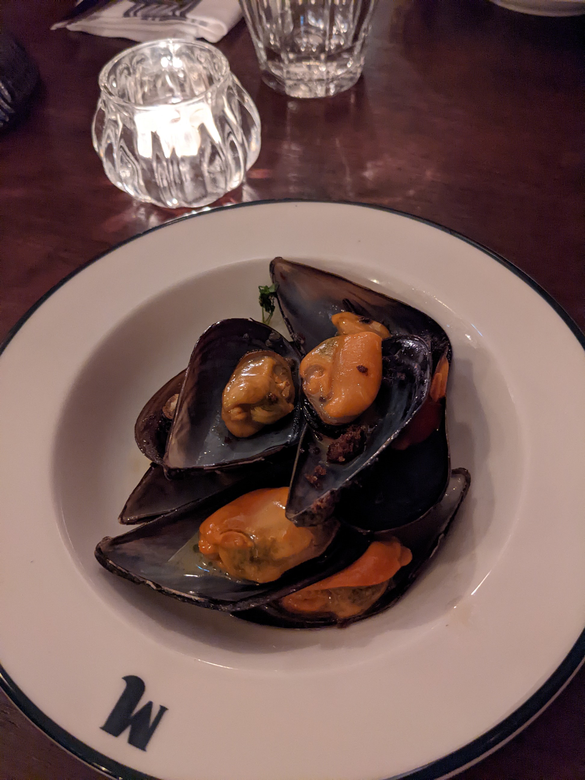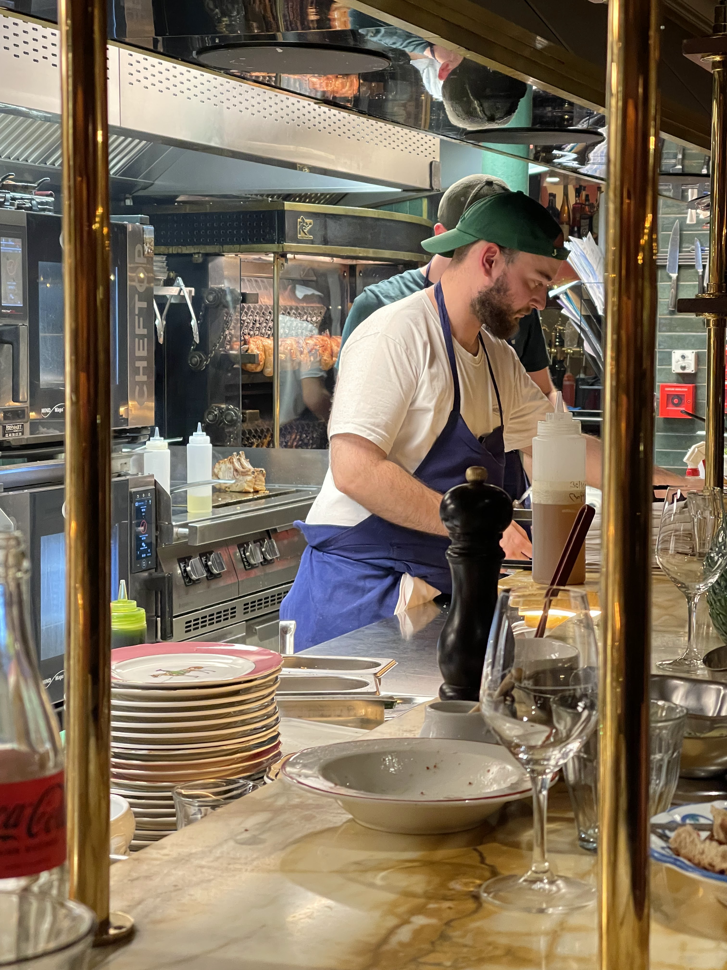 Cuisine ouverte animée avec plaisanteries scintillantes ; personnel sympathique et charmant (mais qui a besoin de plus de soutien pour couvrir le grand espace) ; décor de brasserie classique avec luminaires en laiton ; impressionnant rôtissoire à flamme haute derrière le bar. De nombreux plats étaient déjà complets lorsque je me suis mis à table, mais j'ai apprécié le pâté de campagne, les champignons farcis et les moules vapeur. Le dessert Paris-Brest était un moment fort !