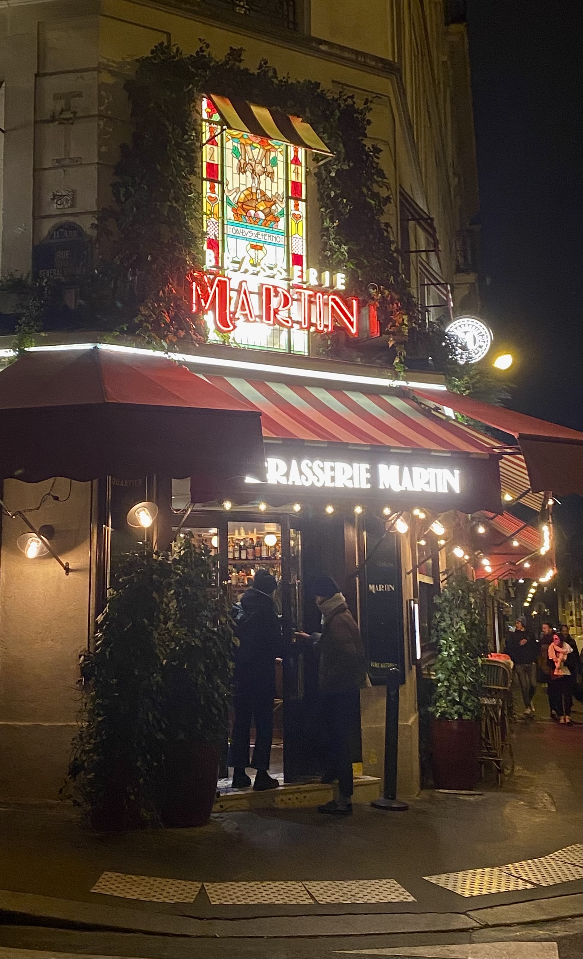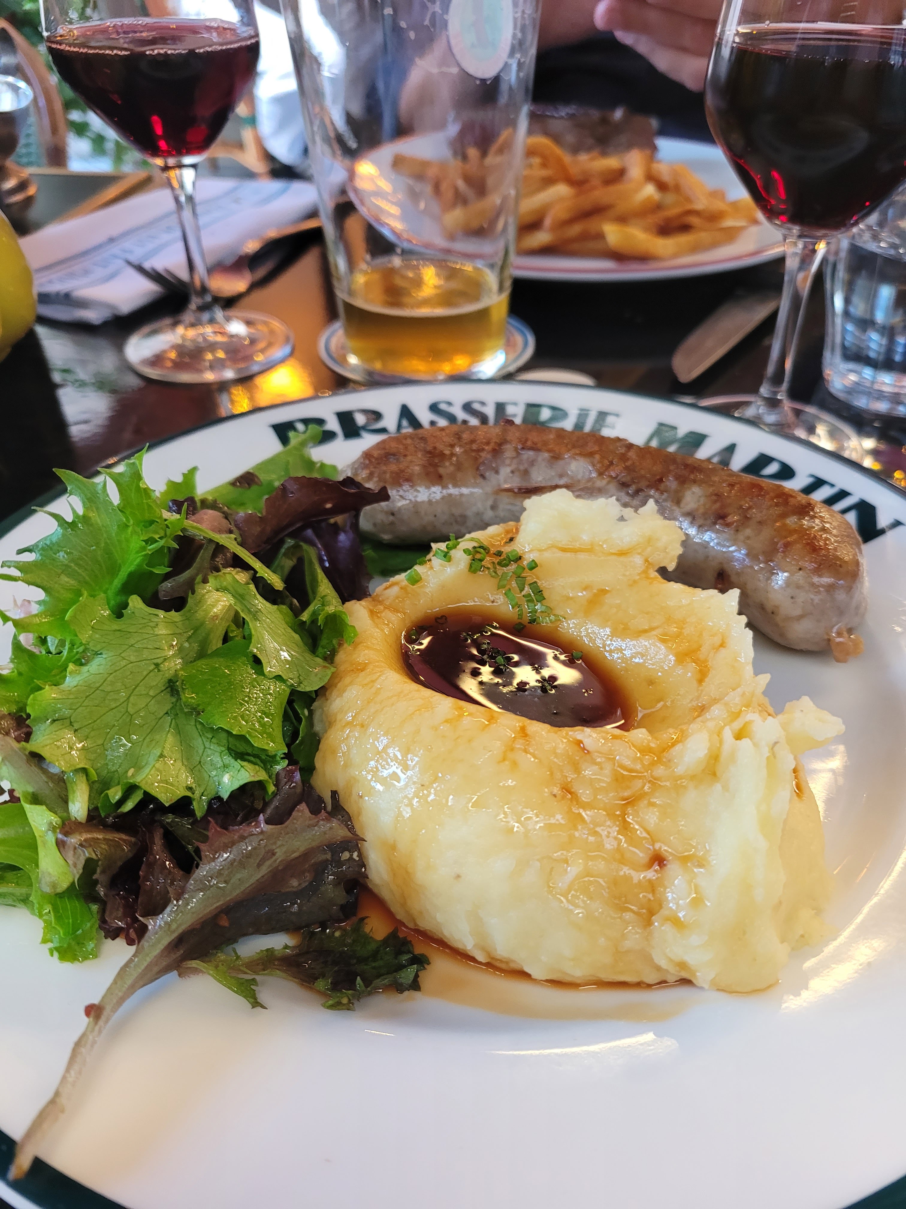 J'ai adoré la Brasserie Martin ! Une parfaite brasserie parisienne située dans le quartier du Parc Gardette et non loin du métro St Amboise et du quartier proche de l'Hôtel Gardette Park où nous logeons. Nous avons eu la soupe à l'oignon, la truite fumée, le vin rouge, le poulet, les frites et le steak-frites. Suivi de la tarte aux poires en dessert. Je suis content que nous ayons fait une réservation avant notre arrivée à Paris car la veille de notre réservation, nous avons essayé de monter à pied et c'était une heure et demie d'attente (mais c'était samedi soir). Nous avons amené notre enfant de cinq ans et c'était assez fort pour que personne ne s'en soucie et il aimait le plat de poulet et de frites. Et la tarte ! Merci!