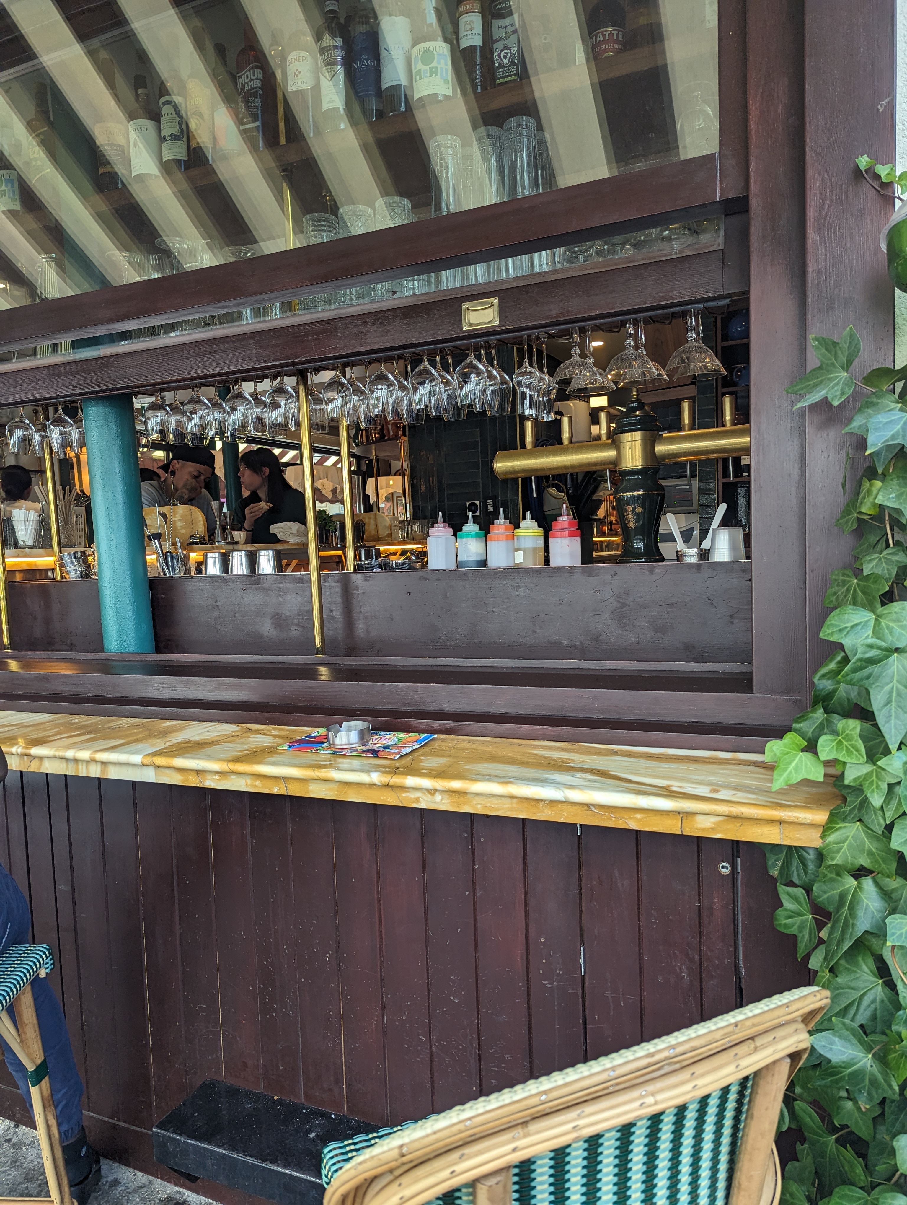 Déjà ce midi il a plu et ça faisait du bien avec ces fortes chaleurs ! De fait j'ai demandé à être placé à l'intérieur et n'ayant pas réservé j'ai été placé au comptoir sans que ce soit gênant. Service impeccable et rapide, j'ai goûté à la saucisse purée. Peut-être un peu déçu par la saucisse mais la purée était bonne. Ça ne m'empêchera pas de revenir avec grand plaisir.