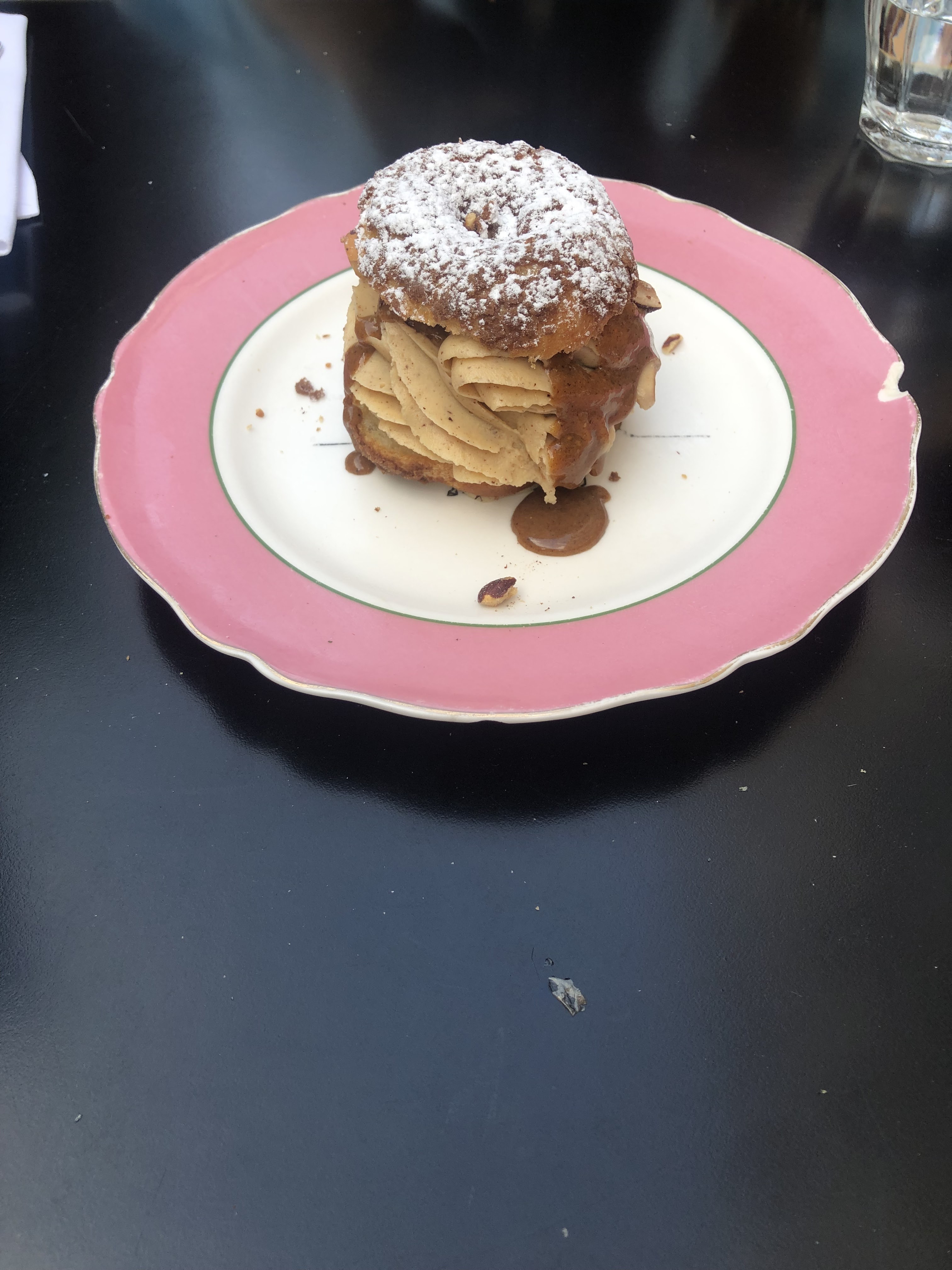 Les déserts ici changent la vie. Peut-être que je suis simplement inculte mais la nourriture était si bonne. Le personnel était très sympathique même si notre français est si mauvais et qu'ils ont des menus en anglais et en français. Ils proposent de nombreuses options de boissons et l'ambiance est incroyable. Tellement beaux qu'ils servent de l'eau dans une drôle de bouteille de poisson. La nourriture était aussi très bonne, mon seul reproche était que les frites étaient soit trop salées, soit trop fades (mal mélangées peut-être ?) mais la viande était cuite à la perfection et les sauces étaient toutes deux très bonnes et accompagnaient bien le repas. Et encore une fois, le désert que nous avons eu était tellement bon.