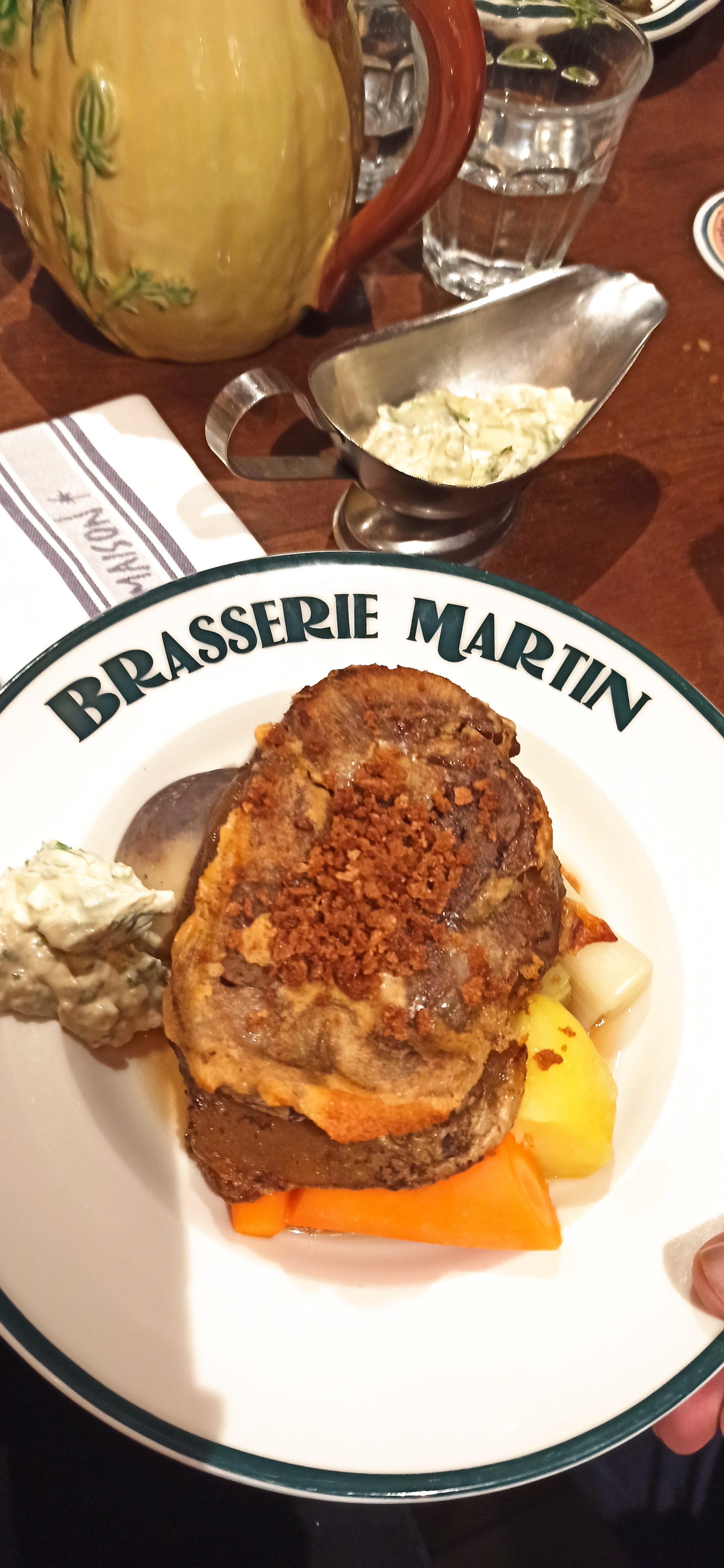 Je ne peux pas répondre donc je modifie mon commentaire. Habitués des bouillons et différentes brasseries, nous avions hâte de venir tester la brasserie Martin. Soupe à l’oignon excellente par contre très déçu par la pièce de cochon rôti, étant donné le prix. La rôtisserie donne très envie en rentrant dans le restaurant (jambon et poulet) mais je doute qu’il soit fait à la broche, et plutôt sec. C’est un filet mignon classique. Mais la brasserie Martin reste tout de même un bon restaurant pour passer un bon moment 😊