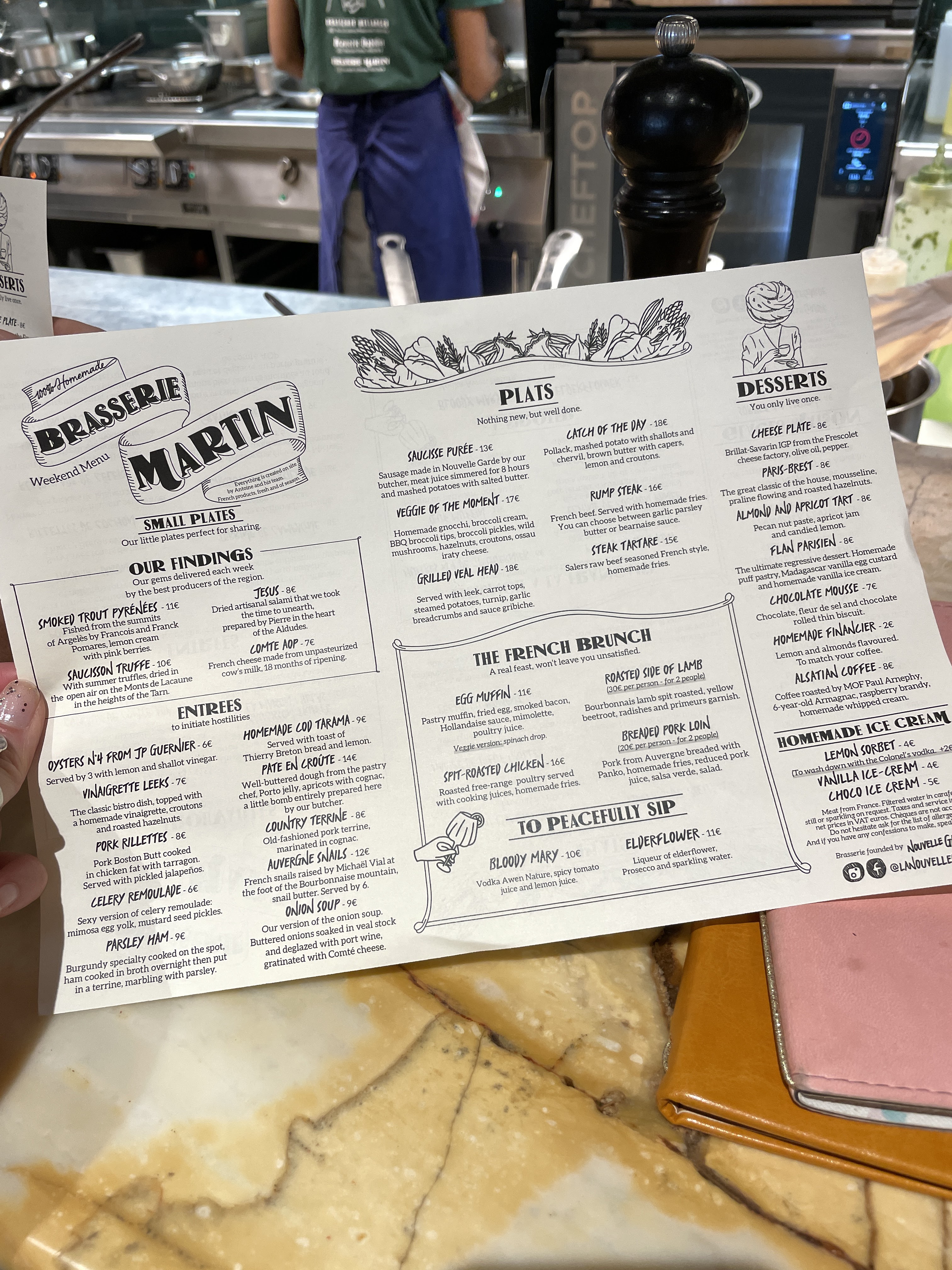 Super expérience à la Brasserie Martin ! Une ambiance chaleureuse, jeune et conviviale avec des serveurs sympathiques et attentifs. J’ai pris le poulet cuit à la broche et la crème brûlée, et je reviendrai très certainement pour goûter d’autres plats 😊