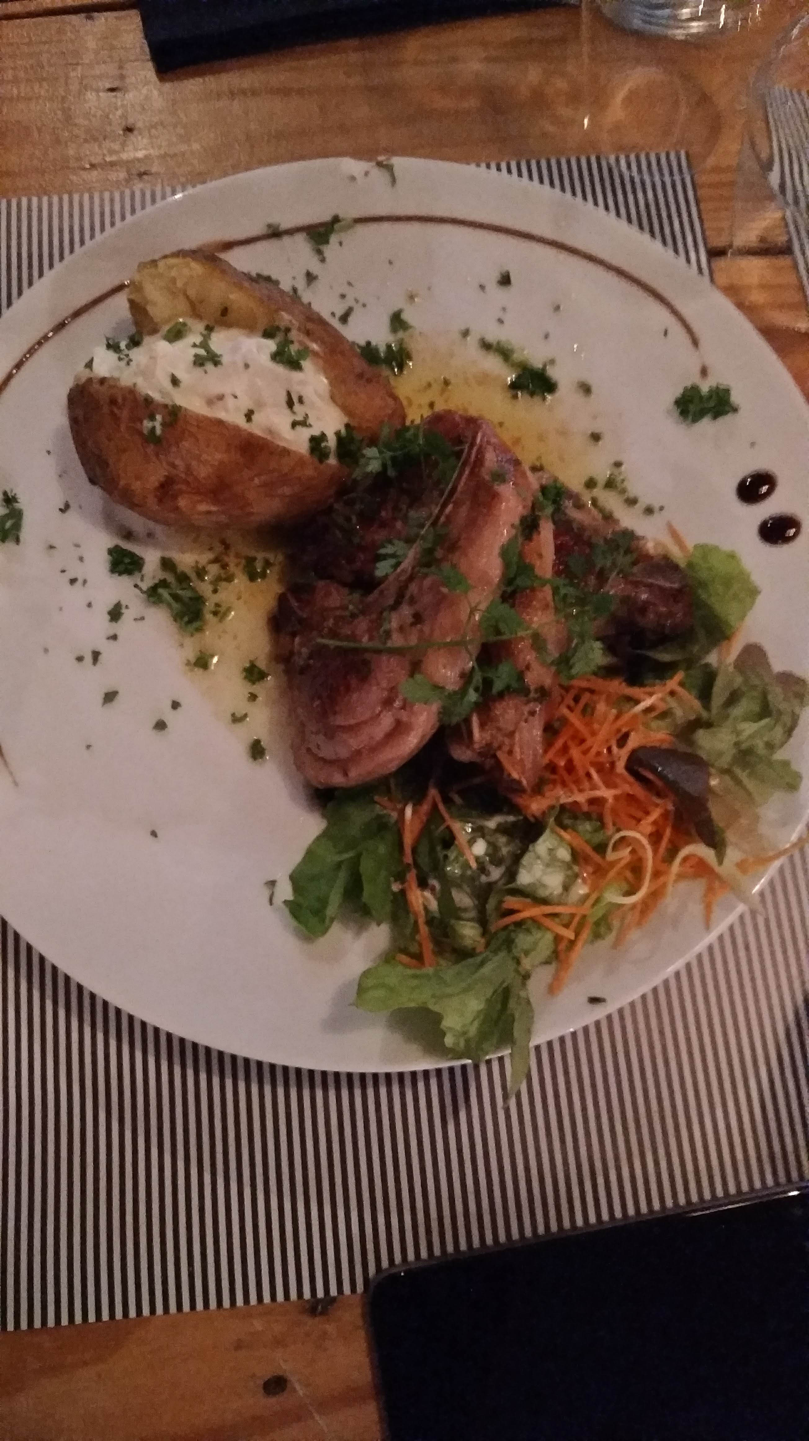 Endroit vraiment très chaleureux avec une terrasse super agréable. Carte sympathique avec beaucoup de choix, en termes de viande notamment ! Dommage qu'il y ait peu d'alternatives Végétariennes. Un peu déçu de la qualité de la viande de ma salade de bœuf : beaucoup plus de gras incroquable/incoupable que de viande, qu'on me justifie en disant que c'est une viande persillée :( Ça faisait un peu cher la salade avec ses carottes râpées et les quelques morceaux de viande par dessus. Dessert équilibré en terme de quantité et de qualité : bon choix, ça ne vous assomme pas après le repas, nous avons apprécié :) Serveurs agréables et disponibles. Nous réitèrerons l'expérience et je ferai évoluer ce commentaire et cette note !