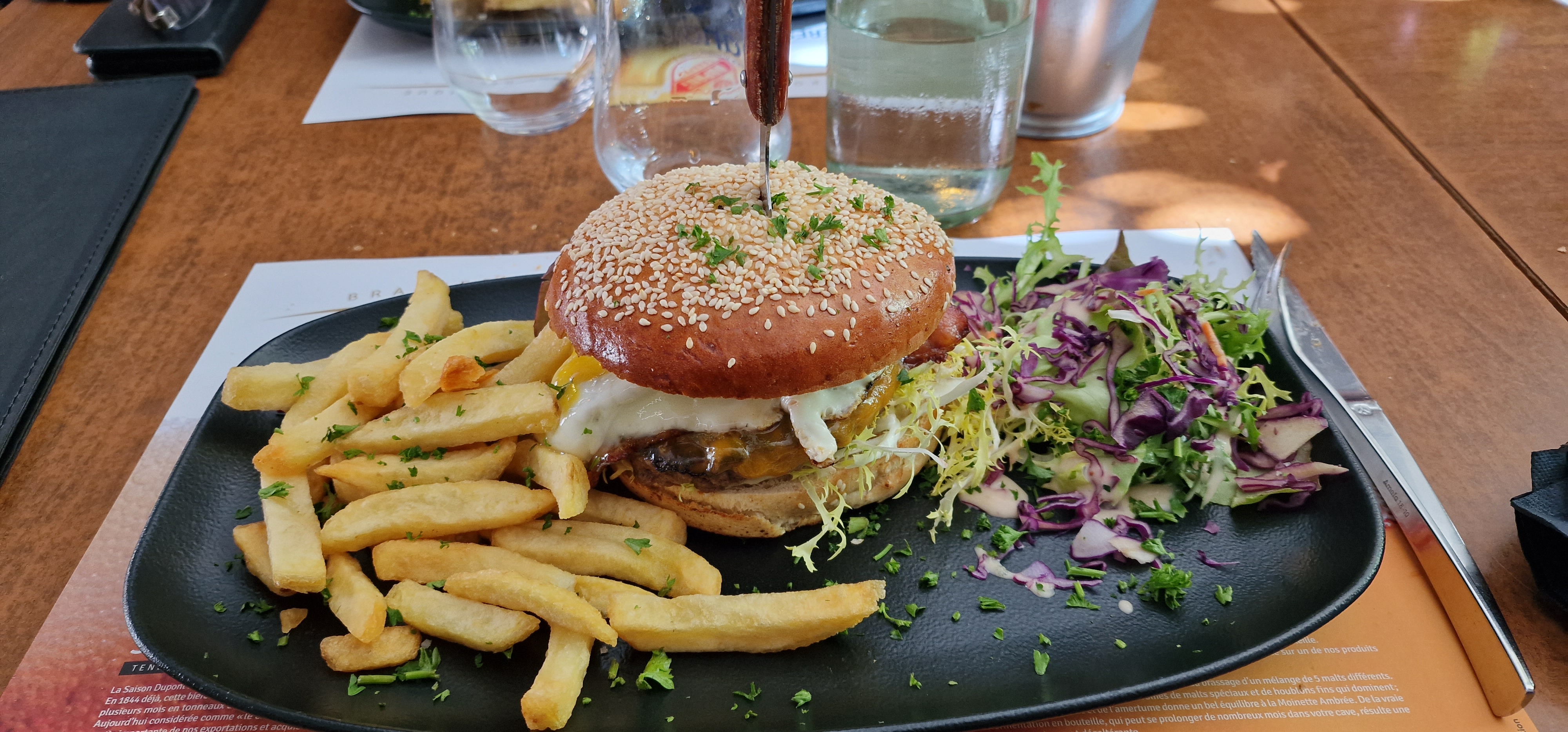 Découvert dans le contexte de la vente à emporter, l'accueil est très sympathique 😃. Les hamburgers 🍔sont gourmands (même celui Enfant). J'espère pouvoir, une prochaine fois, tester la carbonnade, exceptionnellement indisponible lors de ma venue 😢