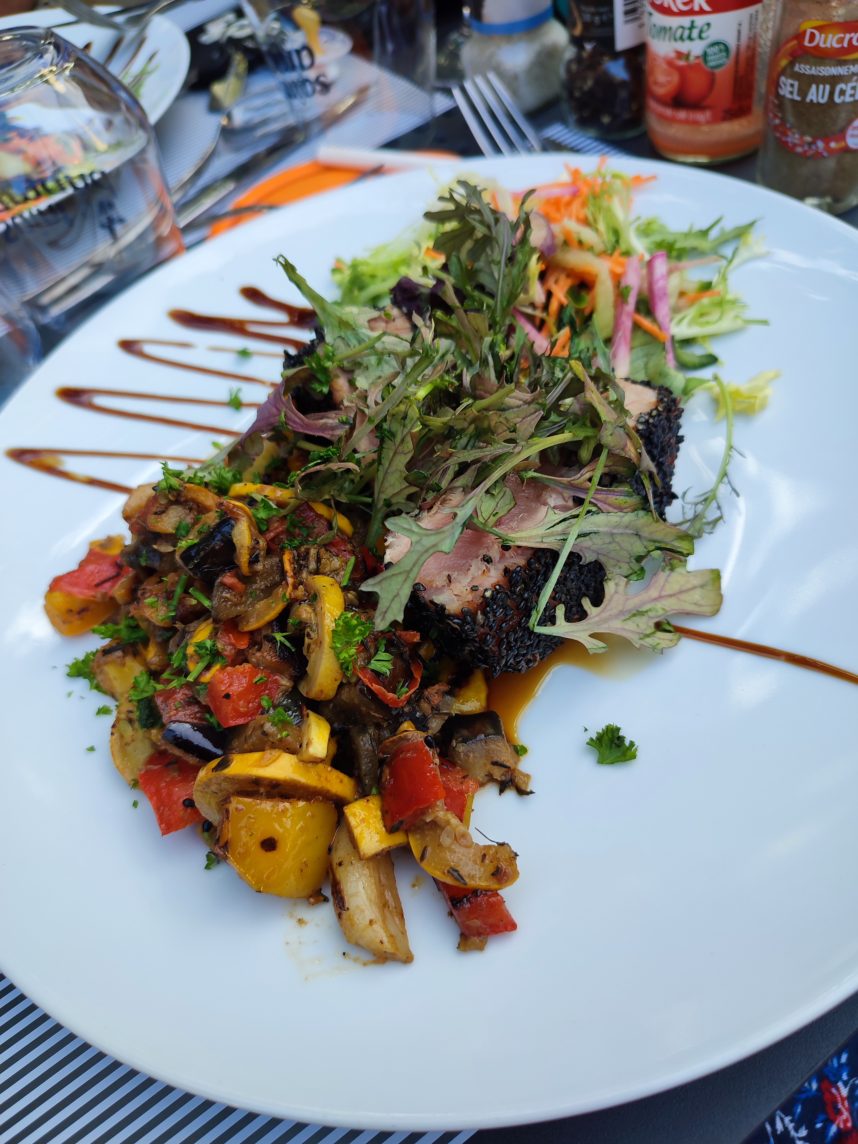 Beau cadre, terrasse agréable, personnel compétent et soucieux du service client. Les plats sont généreusement servis. Pour ma part, beaux morceaux de thon et la poêlee de légumes était délicieuse 👍