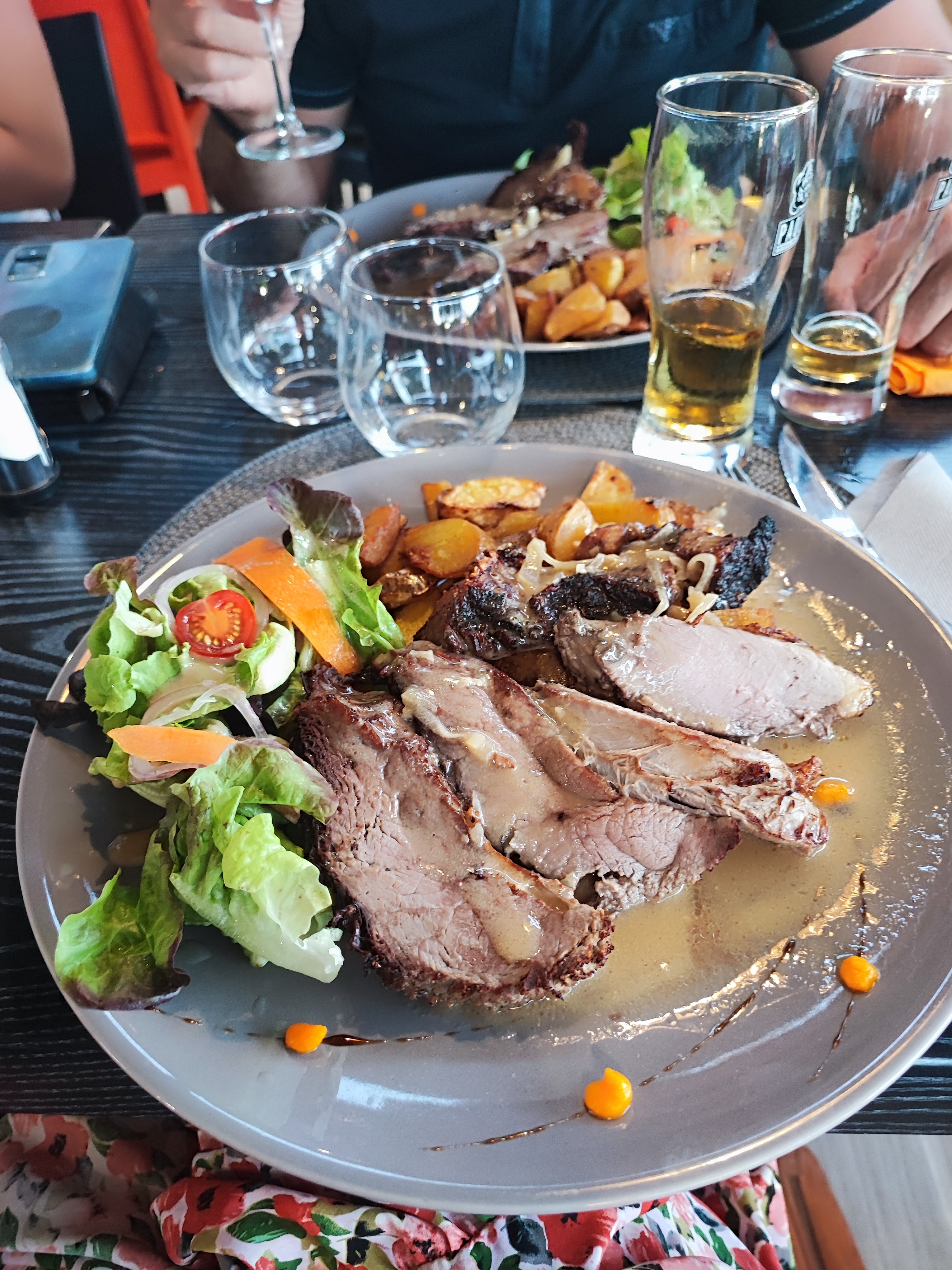 Nous sommes passés devant et avons été attiré par l'odeur du cochon à la broche. Nous nous sommes arrêtés pour savoir si il y avait de la place on nous a répondu que oui. Vraiment belle surprise ! Nous nous sommes régalé ! Le service était au top ! Seul petit bémol le pain industriel, vraiment dommage sachant qu'il y a une boulangerie juste à côté.. Je recommande quand même cette adresse.