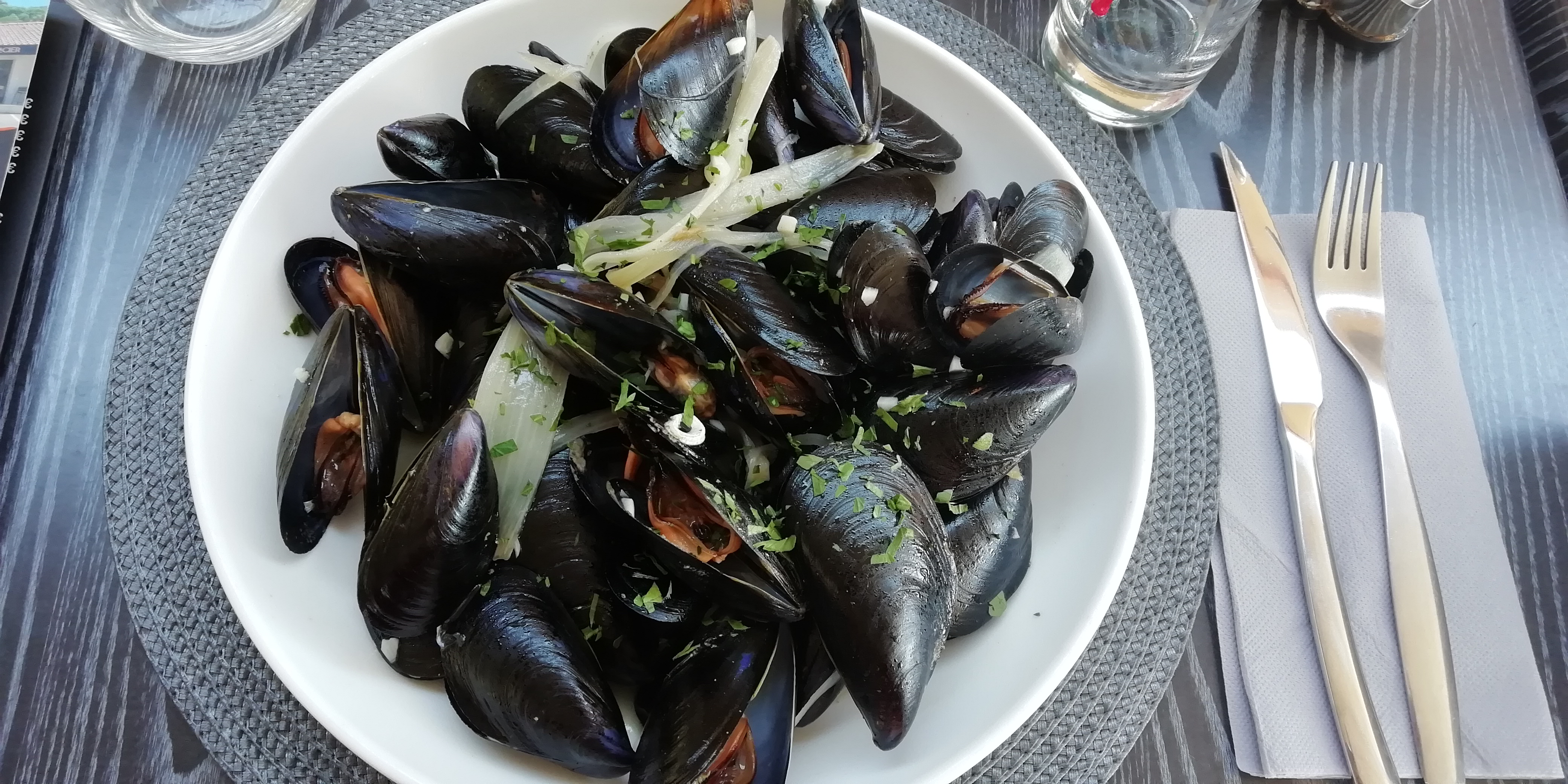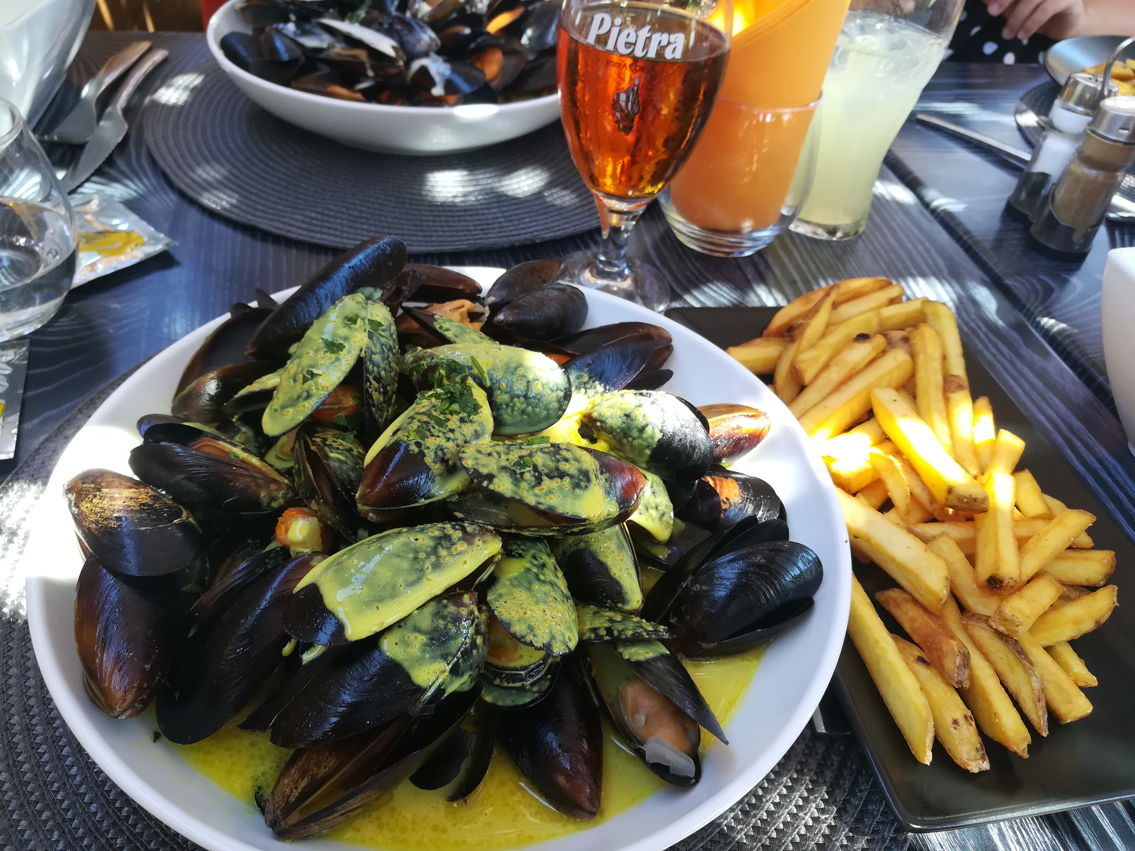 service agréable et rapide, moules au curry pour moi et moules au roquefort pour madame, hamburger menu enfant pour ma fille Frites en accompagnement pour tous, et pour chacun 1 kg de belles moules baignant dans leur jus. un régal en qualité et en quantité pour un tarif très honnête Le café gourmand est accompagné de 5 variétés de délicieux petits gâteaux Cerise sur le gâteau le patron accepte les chèques vacances ( ce qui est loin d'être le cas sur toute l'île a cause de la majoration des frais de 10% sur encaissement de ces chèques)