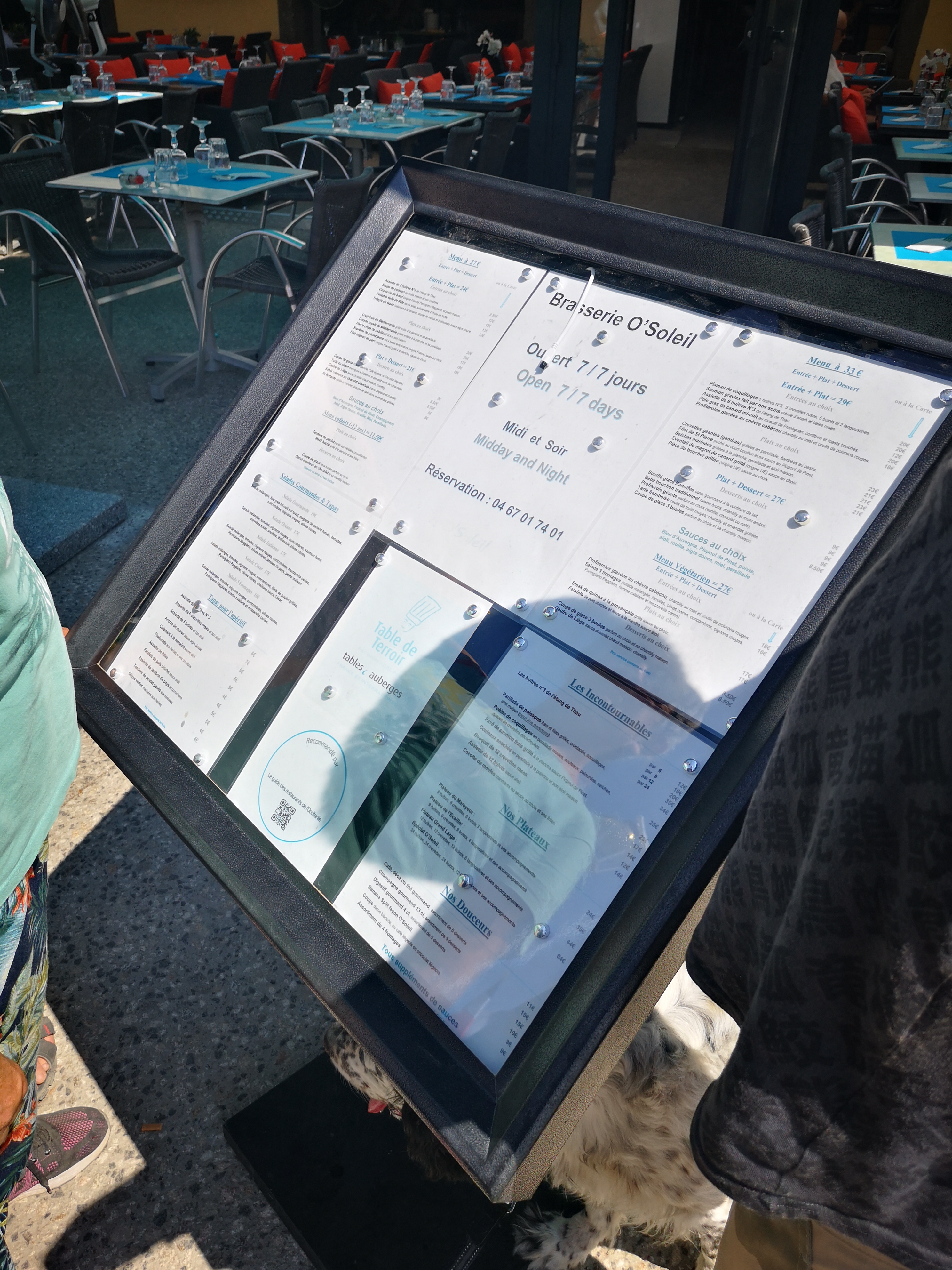 Nous avons eu un très bon repas, d'autant plus que le restaurant était plein à craquer. Nous vous recommandons de sonner pour réserver les jours ensoleillés, car la terrasse est un endroit parfait pour regarder les gens et est donc très populaire ! Assurez-vous de réserver une visite de la distillerie Noilly Prat car ses brillantes visites, généralement anglaises, ont lieu l'après-midi.