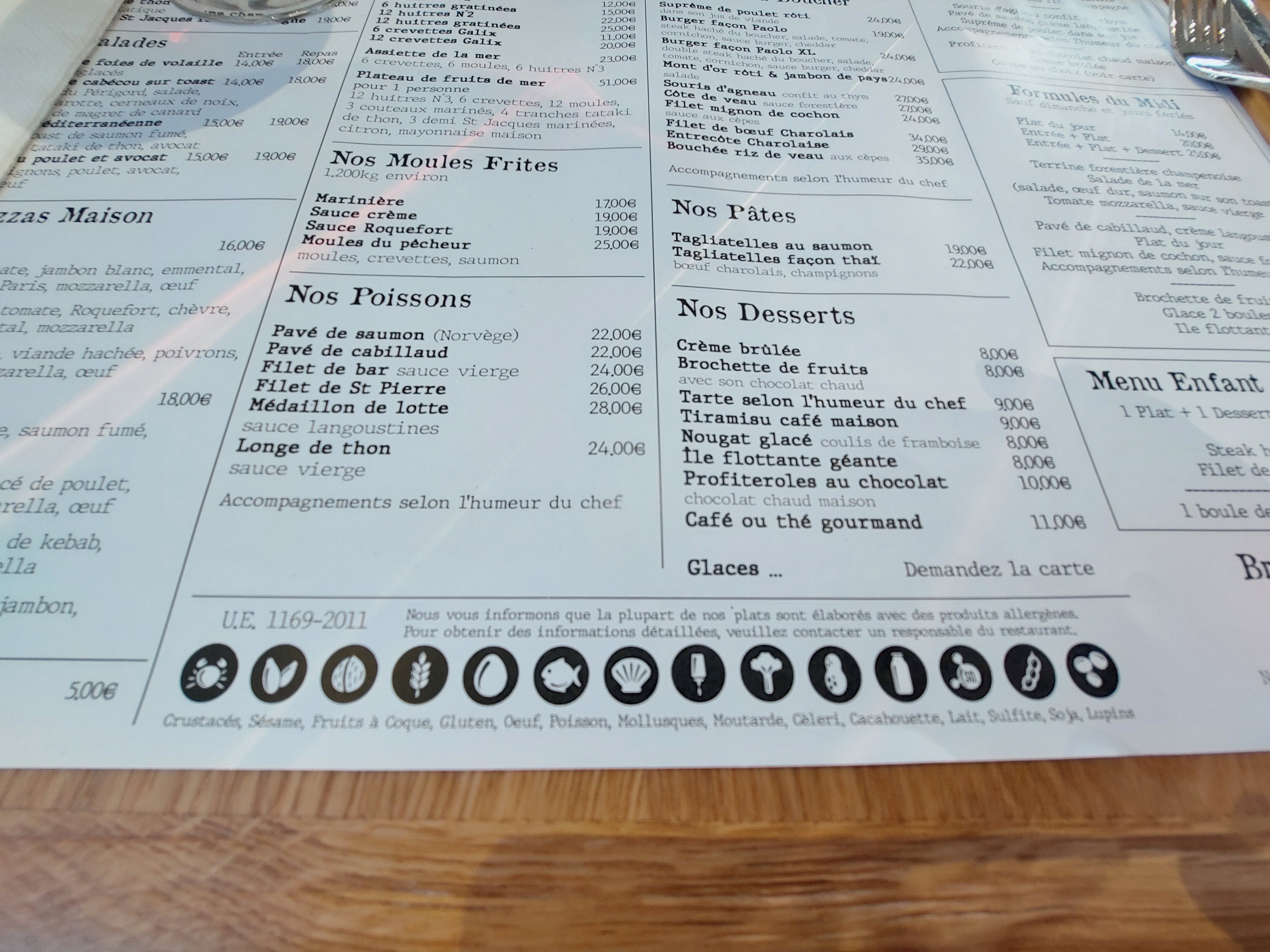 Bon restaurant, service très correct !! Nous avons pris des moules à volonté sauce crème ; excellente. Les serveurs sont très réactifs . Je recommande