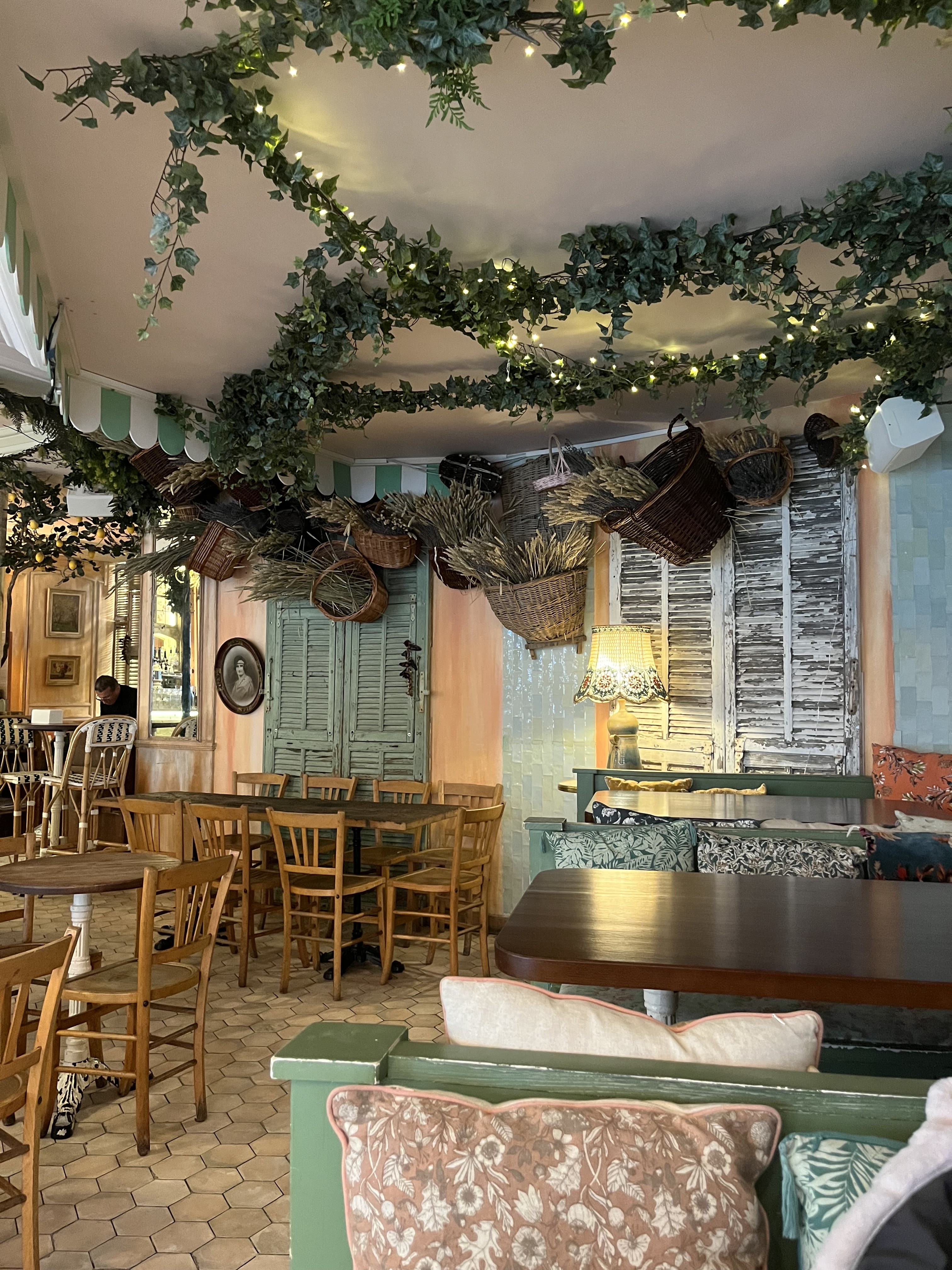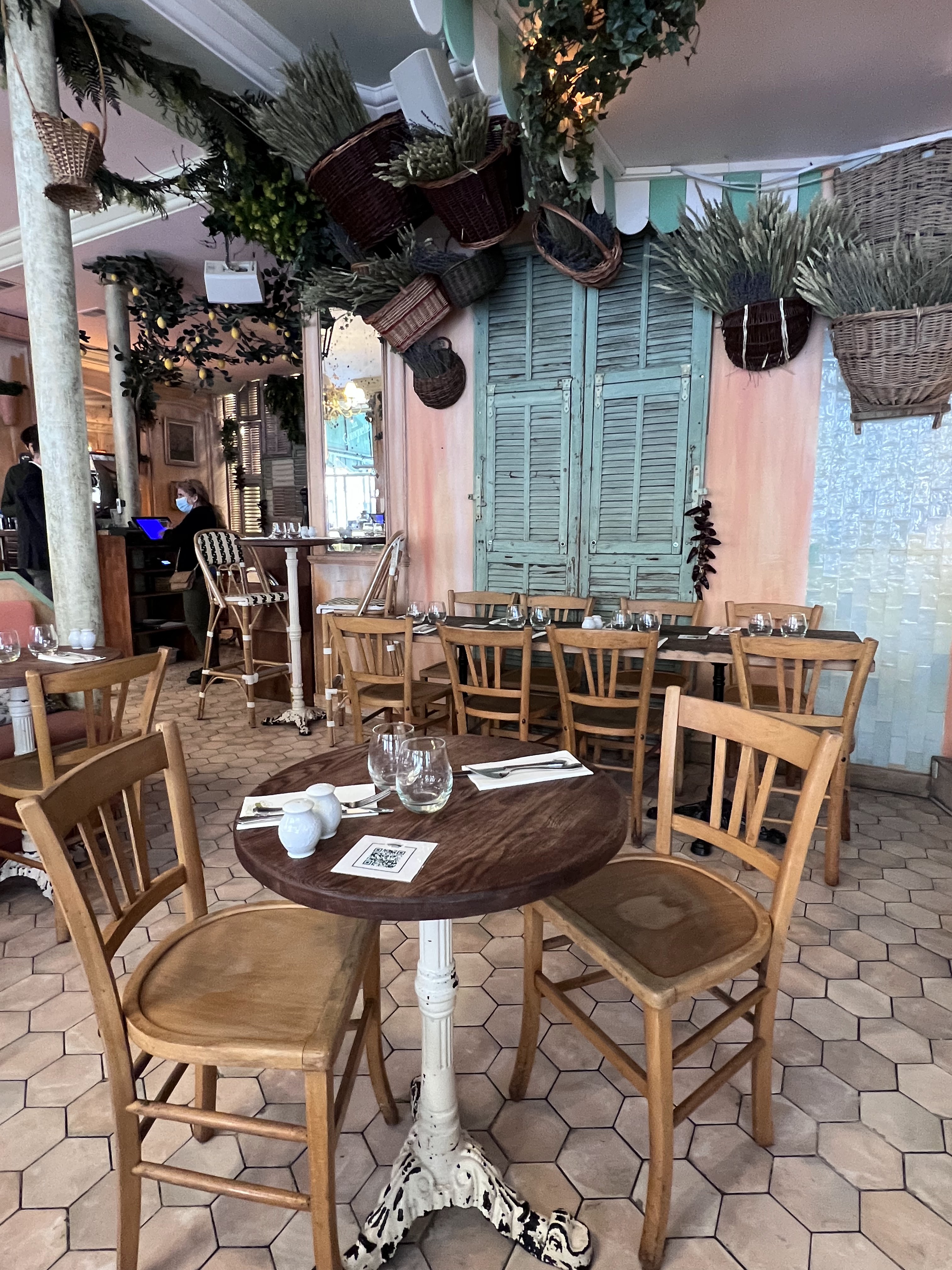 Les couleurs vives et chaleureuses du sud de la France sont au RDV . Une envolée de vert chatoyant , d’orange hermès , du mobilier boisé. Tout est raffiné . De plus, le personnel est avenant ainsi que le propriétaire des lieux. En outre, Les plats sont goûteux et de surcroît le poulet est Hallal . Une belle image d’ouverture d’esprit dans un lieu chic et raffiné où l’on se sent comme à la maison par sa simplicité et sincérité .