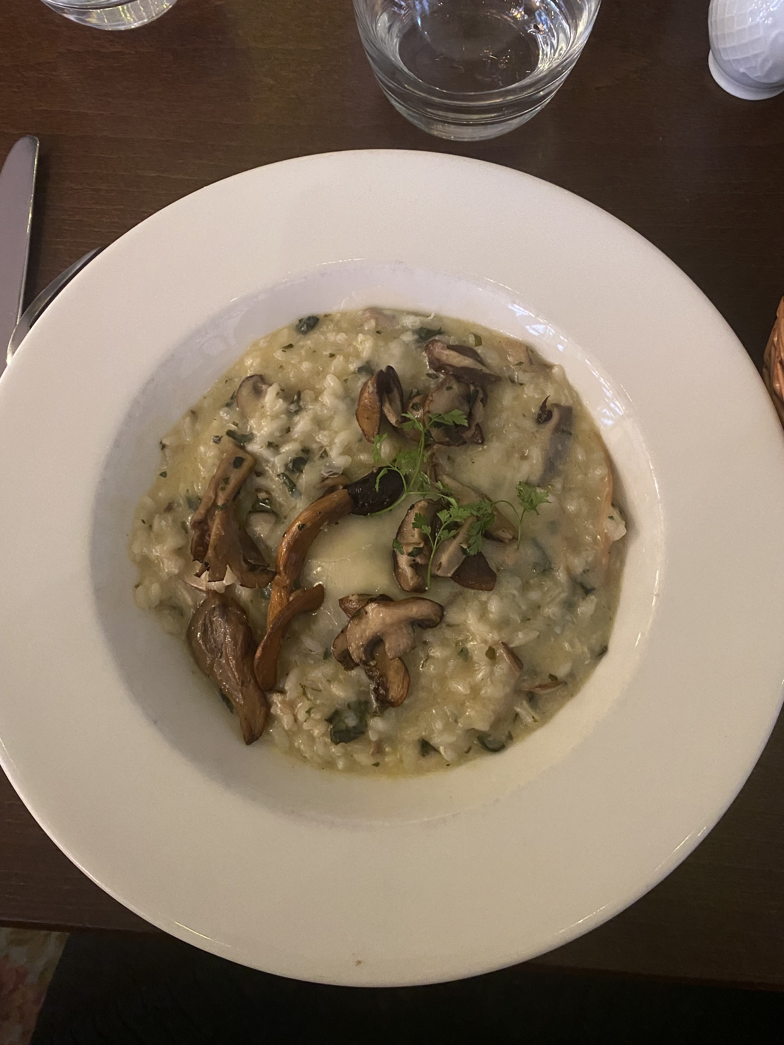 J’ai commandé le poulpe entier grillé (2p) et le risotto aux champignons et épinards pour nous trois. Le poulpe était super bon et vraiment mou pour mâcher. Même les 2 garnitures sont aussi bons (surtout les haricots verts). Le risotto était harmonieux avec ses légumes.