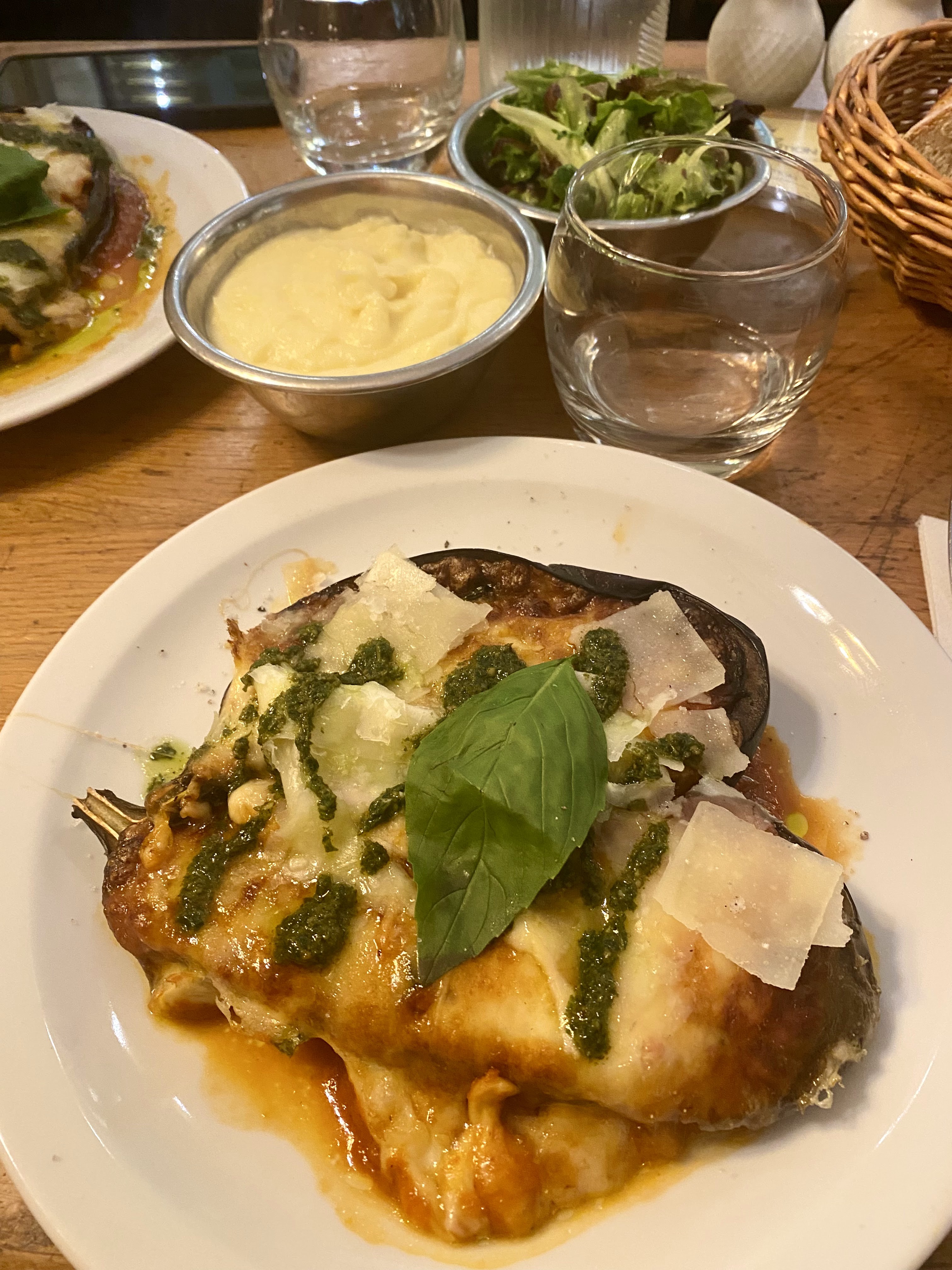 Cher propriétaire de ce resto, sachez que les gens qui viennent déjeuner cherchent un repas qui leur permettra de tenir jusqu'à 18h/19h. Le petit morceau d'aubergine que j'ai commandé en guise de plat principal m'a laissé sur ma faim... Par ailleurs, vos serveurs ne sont pas à la hauteur et mettent une pression importante sur les clients pour les obliger à prendre un dessert avant la fin de leur plat. Votre serveur a osé me couper plusieurs fois pendant mon échange avec un collègue pour me proposer un café alors que je lui ai dit clairement que j'en voulais pas... En résumé, je ne recommande pas ce restaurant