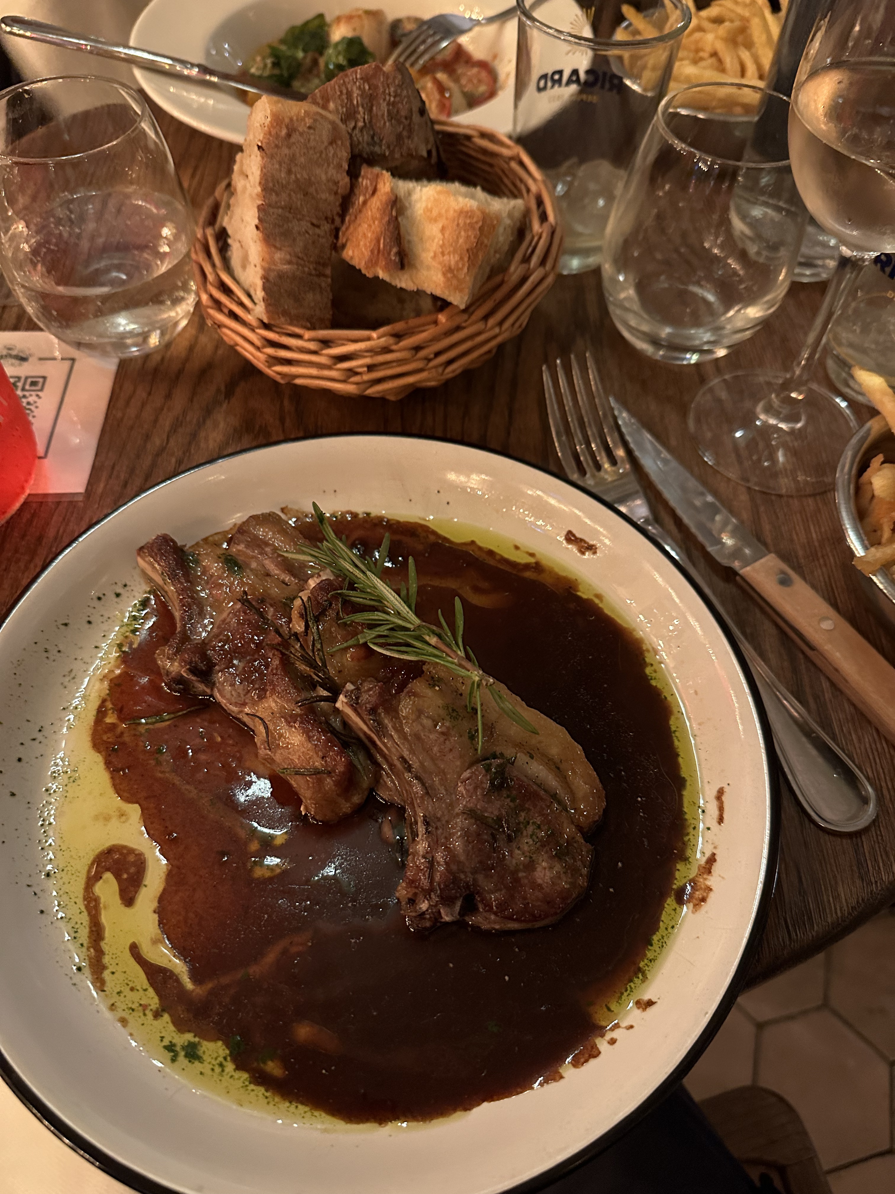 Un lieu qui attire par l’ambiance et la déco. Pour le plat, très basic, un agneau un peu simpliste et des frites qu'on m’a annoncé maison mais qui avaient une texture et un goût surgelé. Les autres convives semblaient satisfaits de leur plat. Très très bruyant le soir.