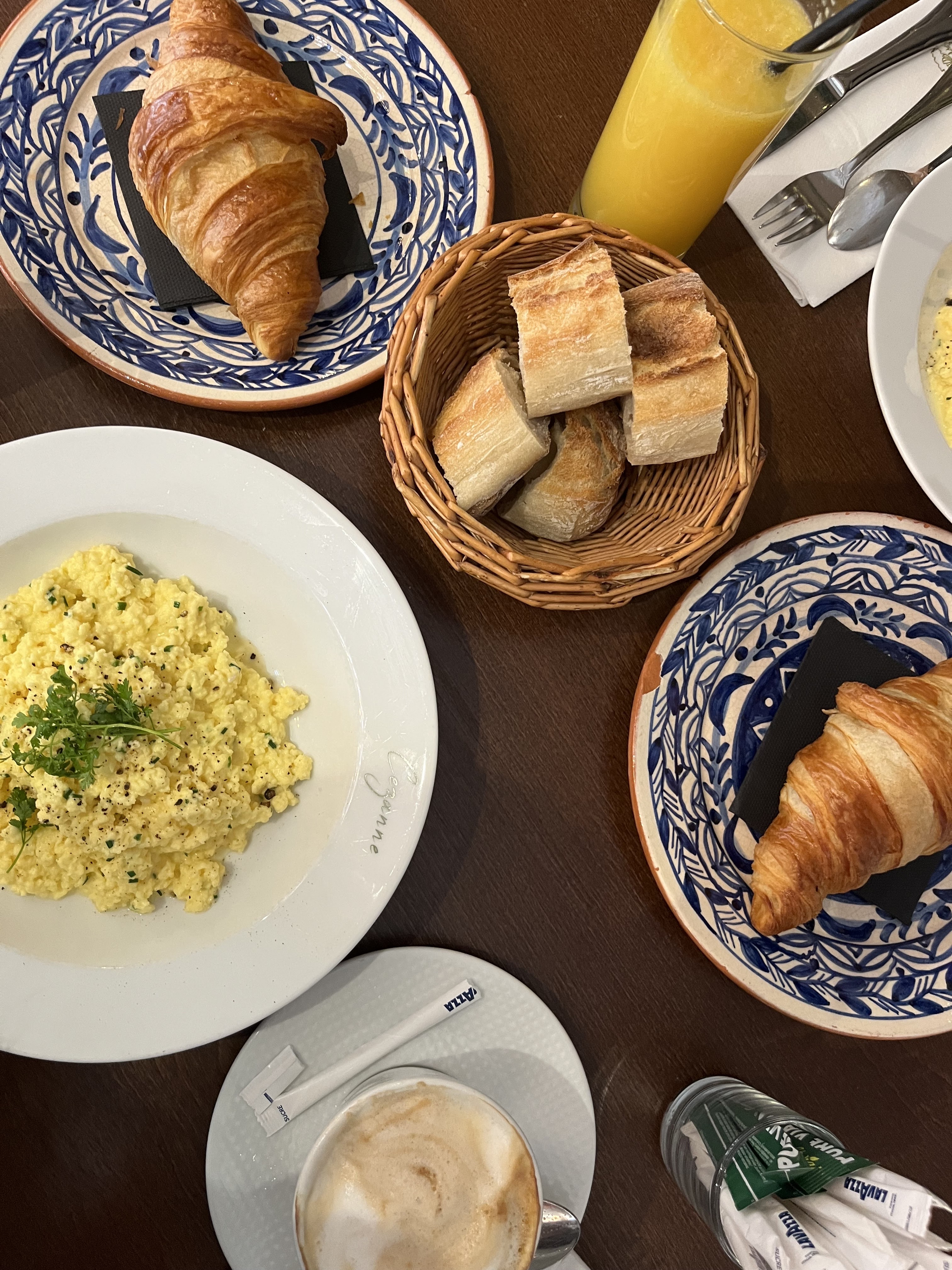 Le personnel était très gentil avec nous et parlait anglais. La nourriture était bien au-delà de nos attentes. Nous avons eu le petit déjeuner complet pour 15 euros : jus d'orange, croissant, œufs et café. Nous serons de retour! Merci!