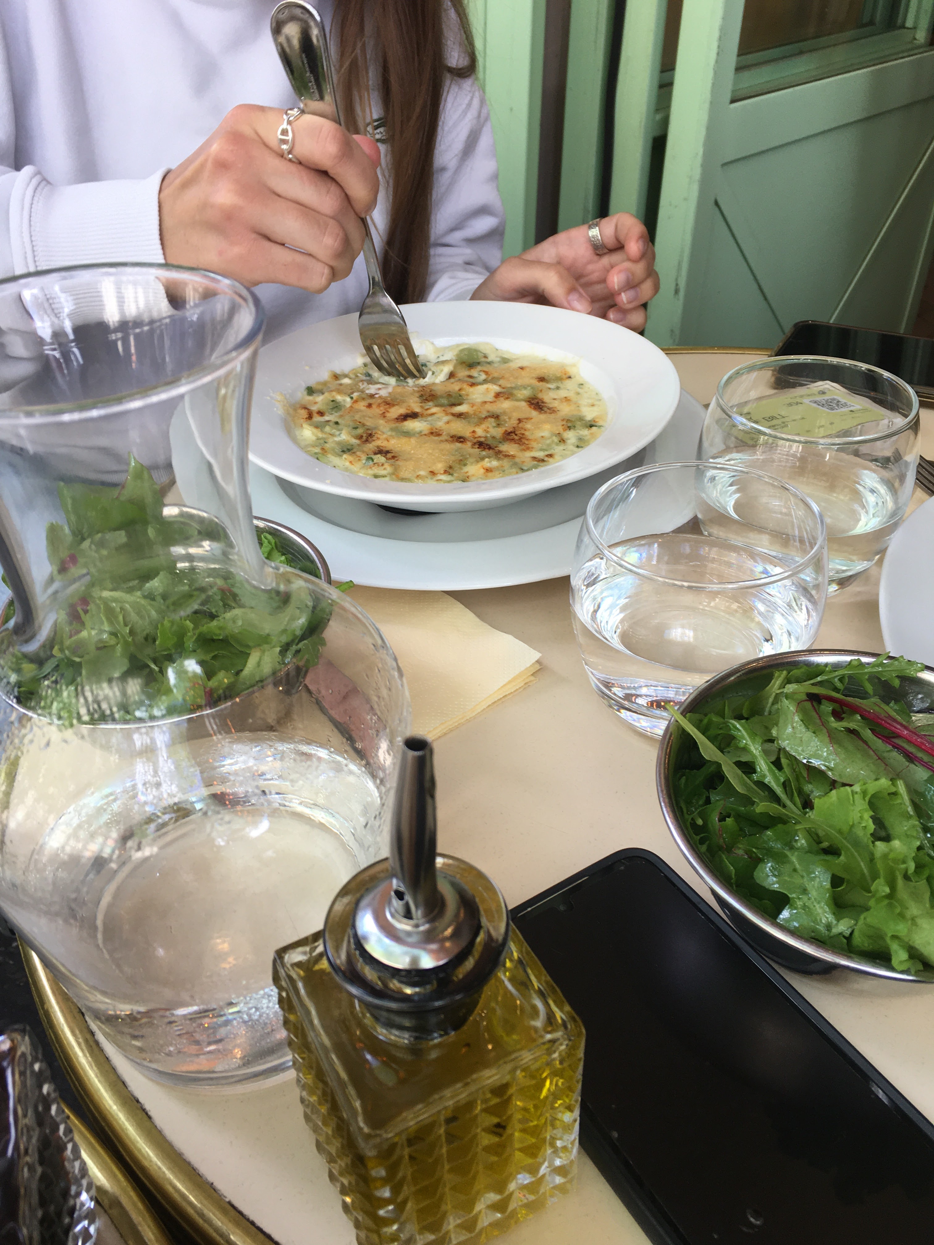 Premier repas à Paris. Nous voulons une cuisine raffinée, les enfants veulent des nouilles au beurre. Tout était incroyable !!!