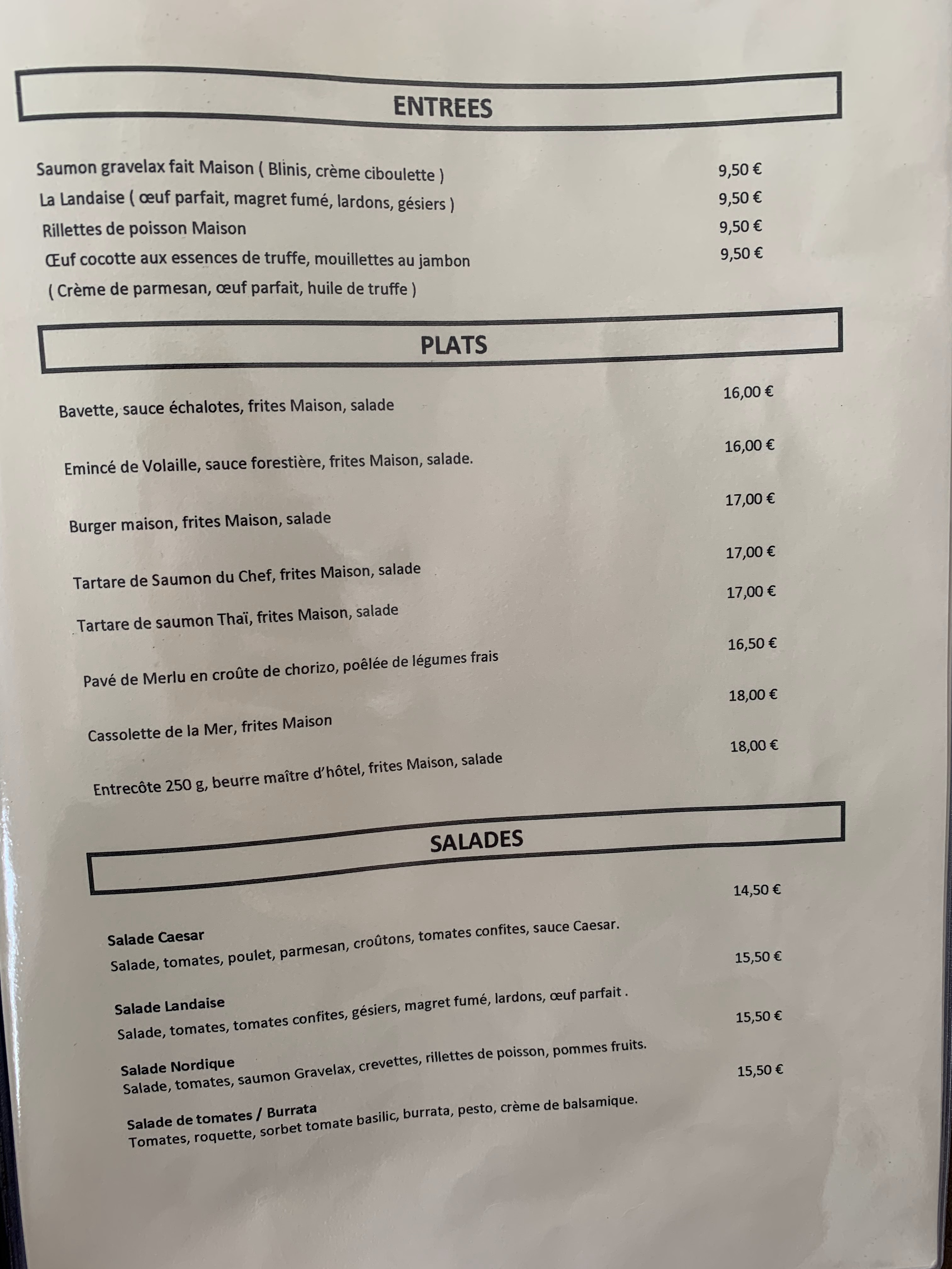 De passage à La Rochelle ne pas hésiter à venir déguster les plats à la carte Bavette à l échalote ,Salade nordique extra produits très frais très goûter et la salade n est pas l ingrédient principal Accueil et Service rapide
