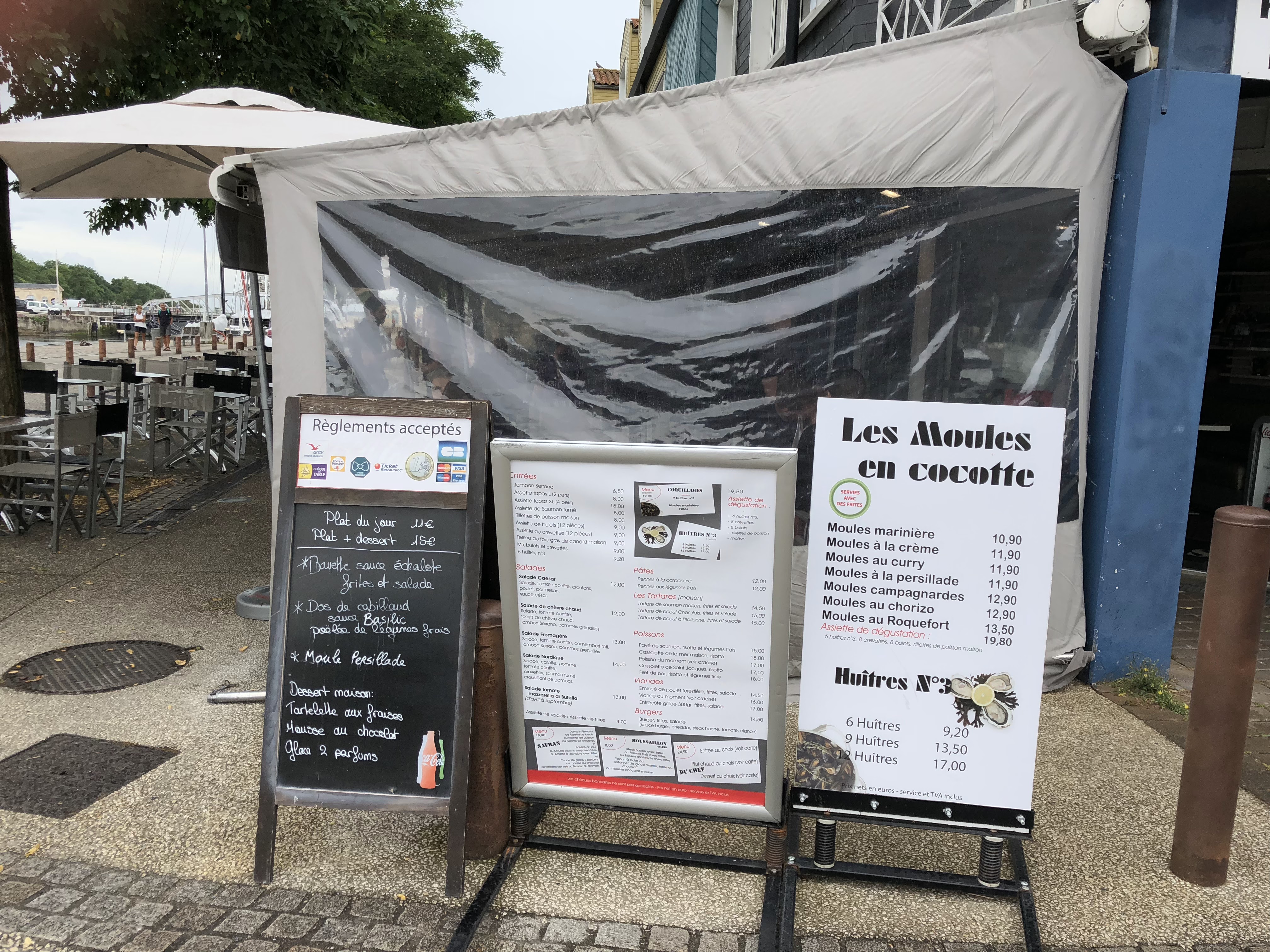 Déjeuner avec une belle vue sur le port un bel accueil malheureusement ceci reste très traditionnel niveau carte. Un peu déçu de mes moules.. mais sinon le reste était top ainsi que le dessert une superbe mousse au chocolat !
