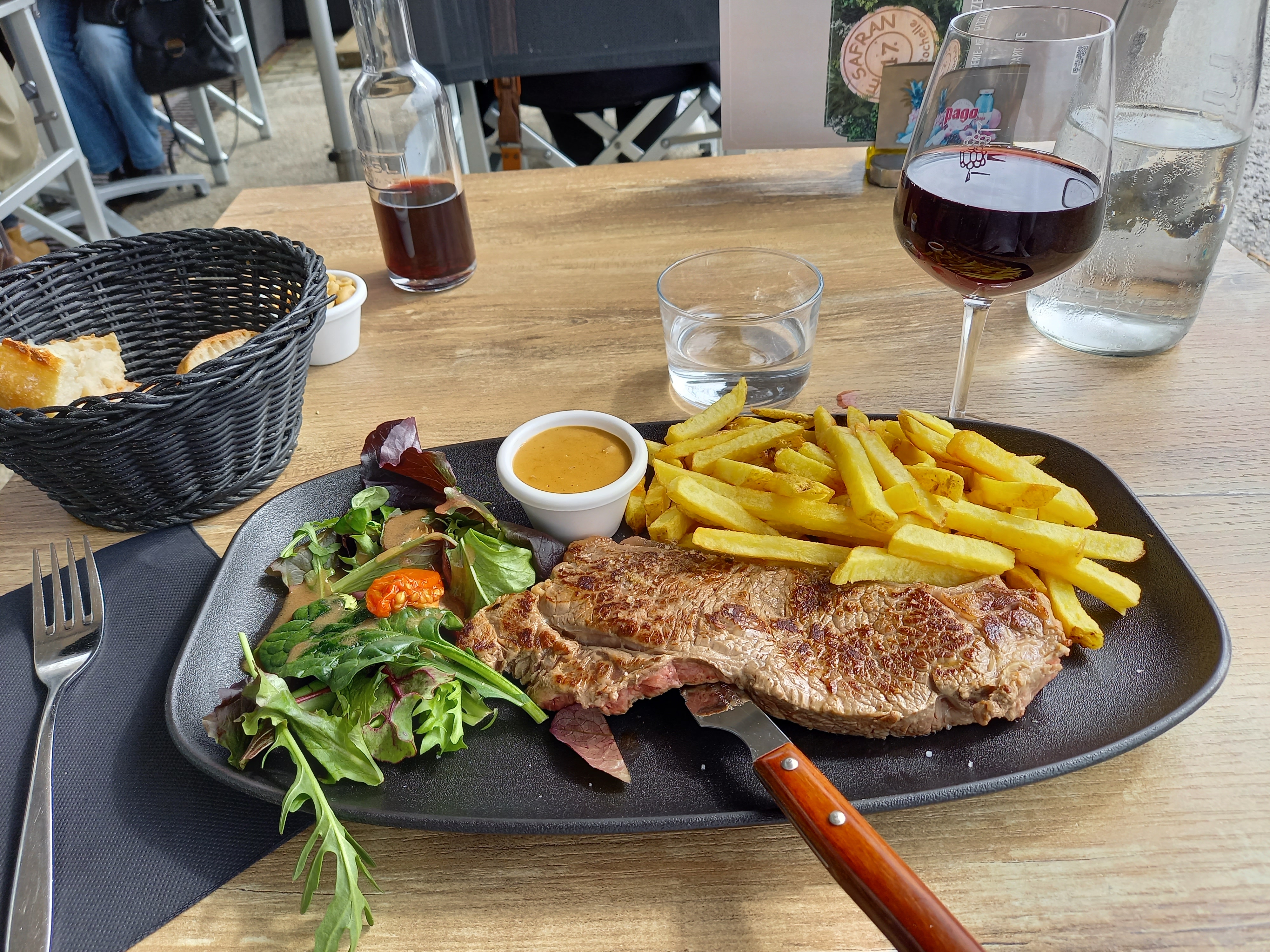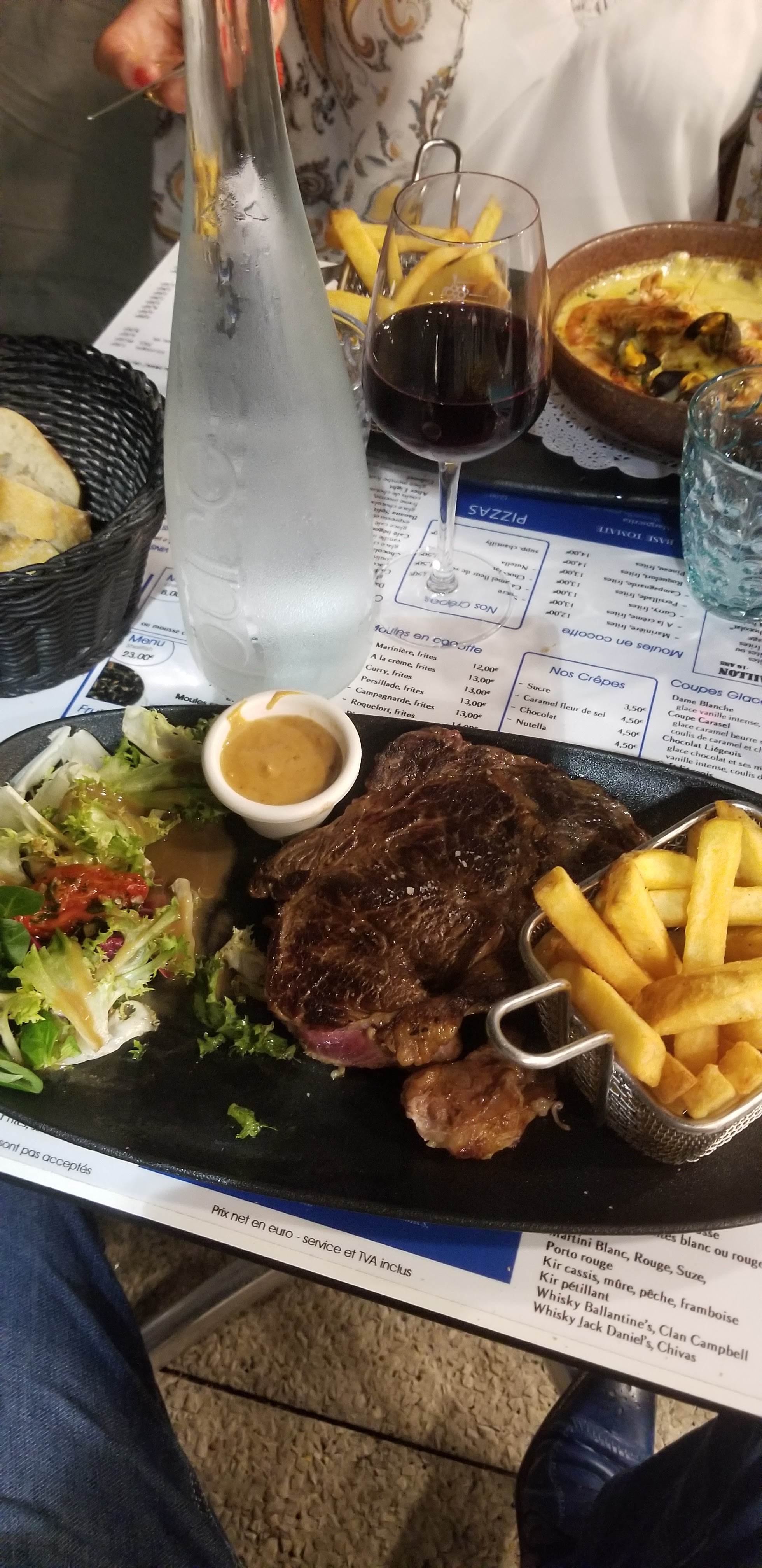 Nous avons mangé à côté du port, le cadre était très sympathique. Cependant, nous avons été un peu déçus de l’entrecôte et les frites (trop huileuses, et frites froides). Mais un bon point pour le service, le serveuses étaient très aimable, souriantes et rapides !