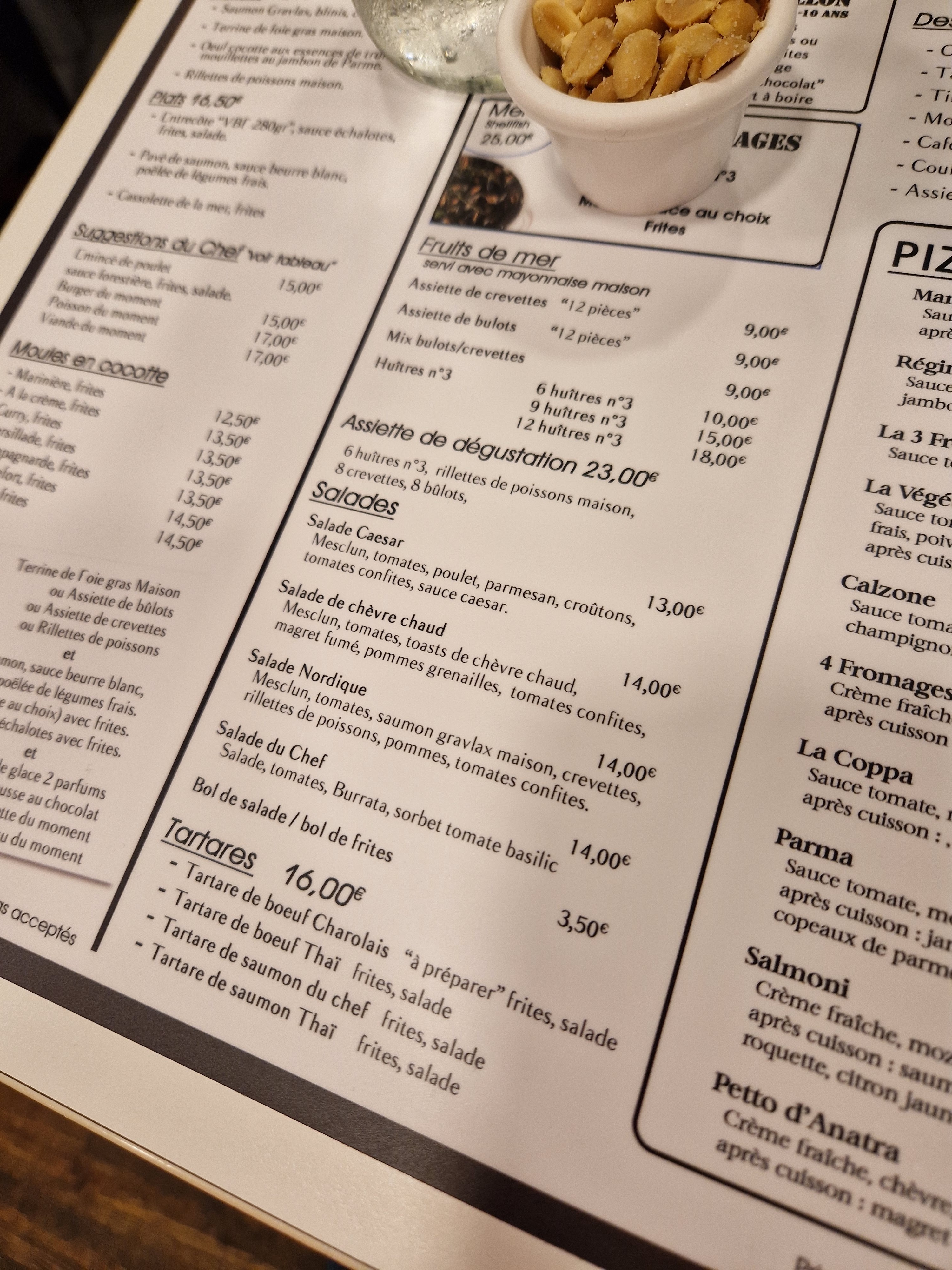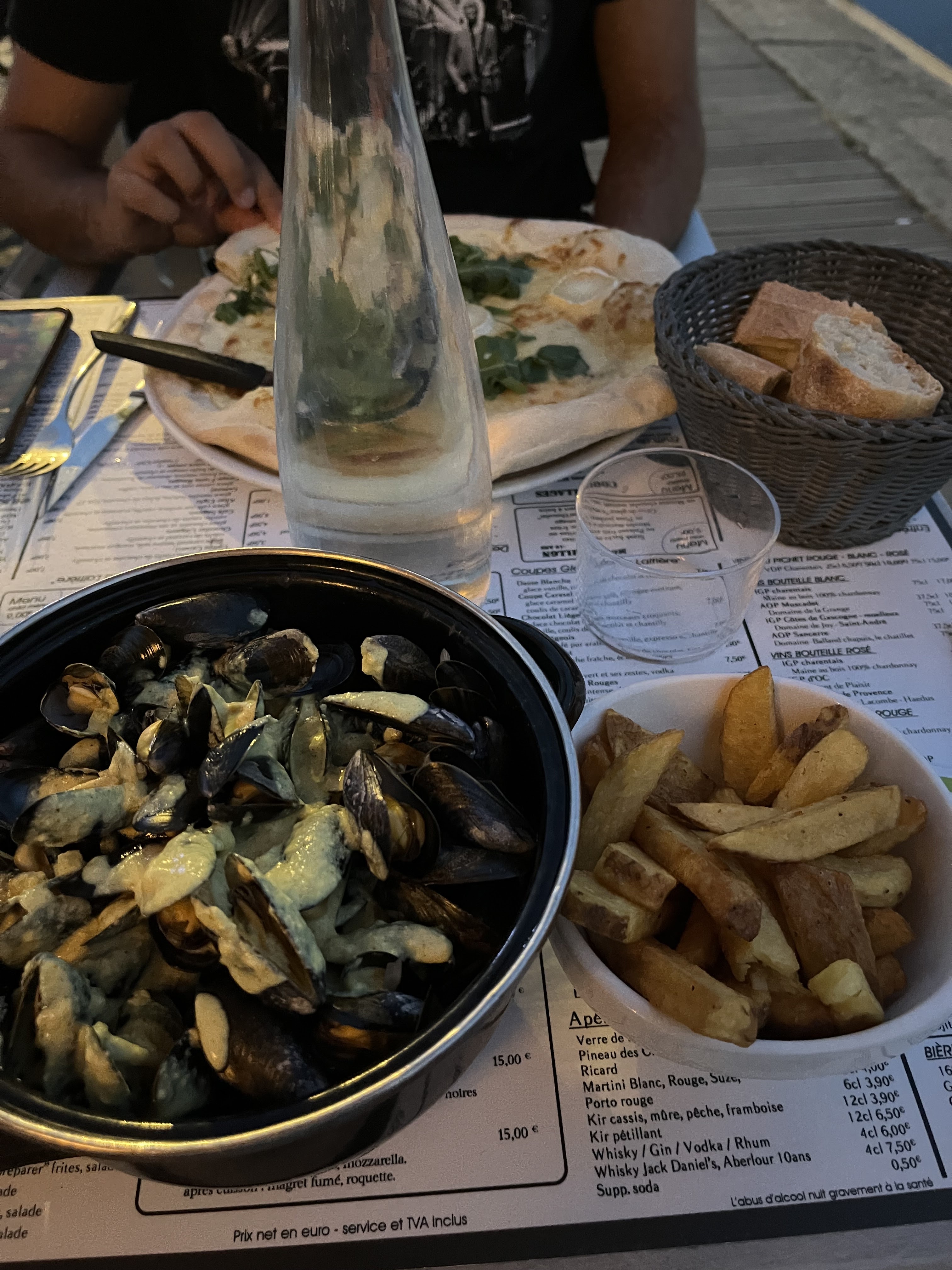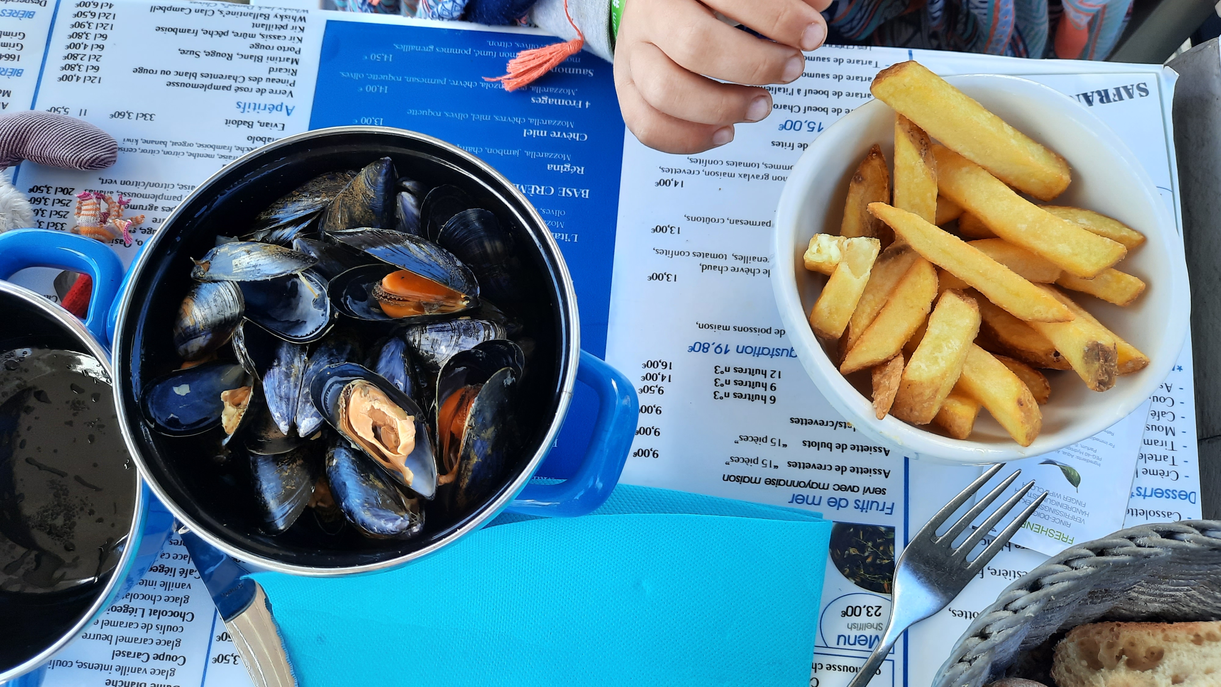Premier bon point, le lieu est ouvert en basse saison, toute la journée. Le personnel est sympathique. Nous avons pris une crêpe au goûter et sommes revenues dîner. Le menu enfant est très copieux s'agissant de l'option pizza. Les recettes de moules sont bonnes. Les produits semblent frais.