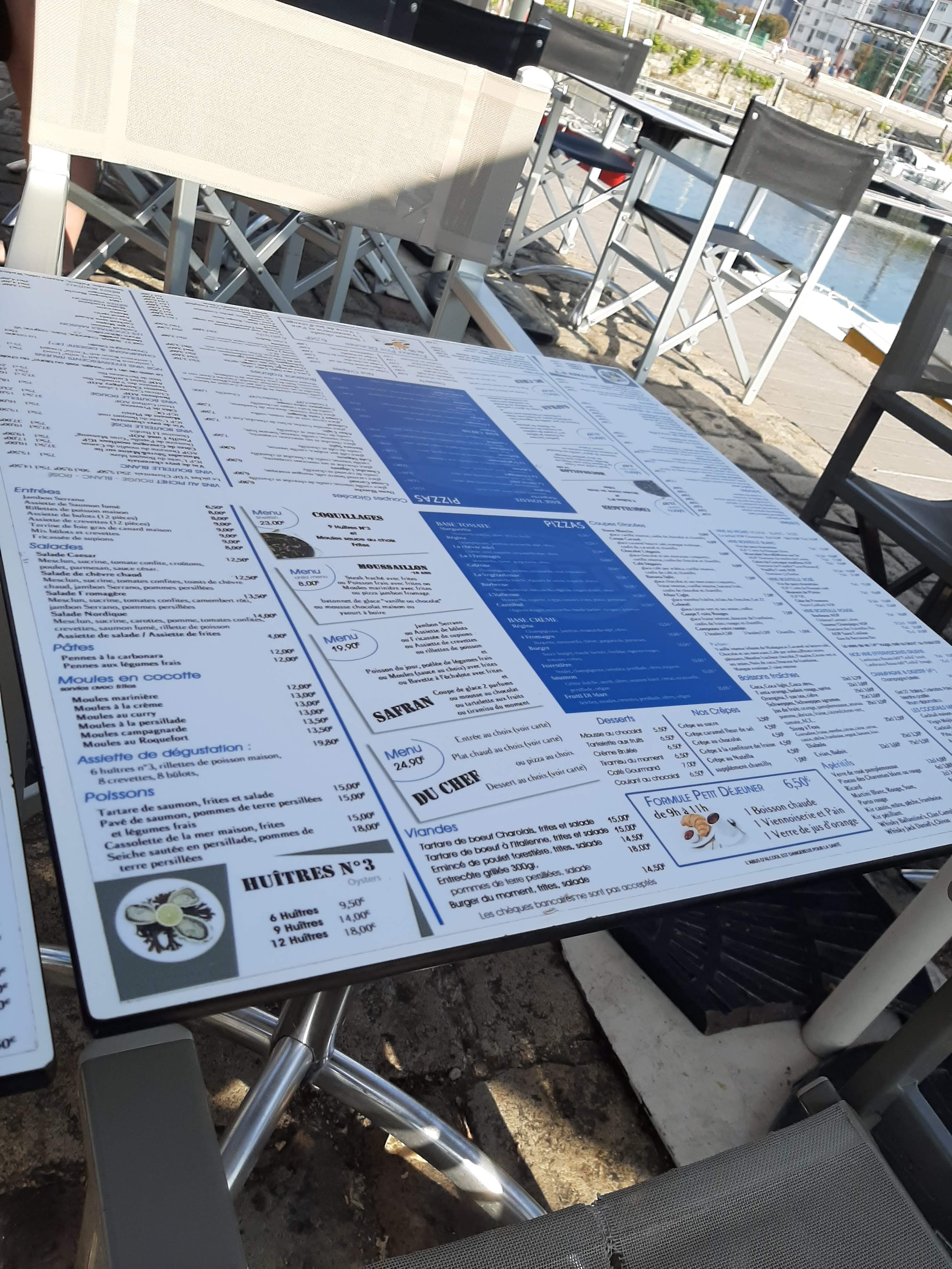 Un très bon accueil, emplacement très agréable en bord du port (plaisanciers haut de gamme) et les plats proposés sont très bons sans pour autant vous faire casser votre tirelire. Menu enfant à 8 euros, carte + 3 plats du jour : poisson, viande, Burger.