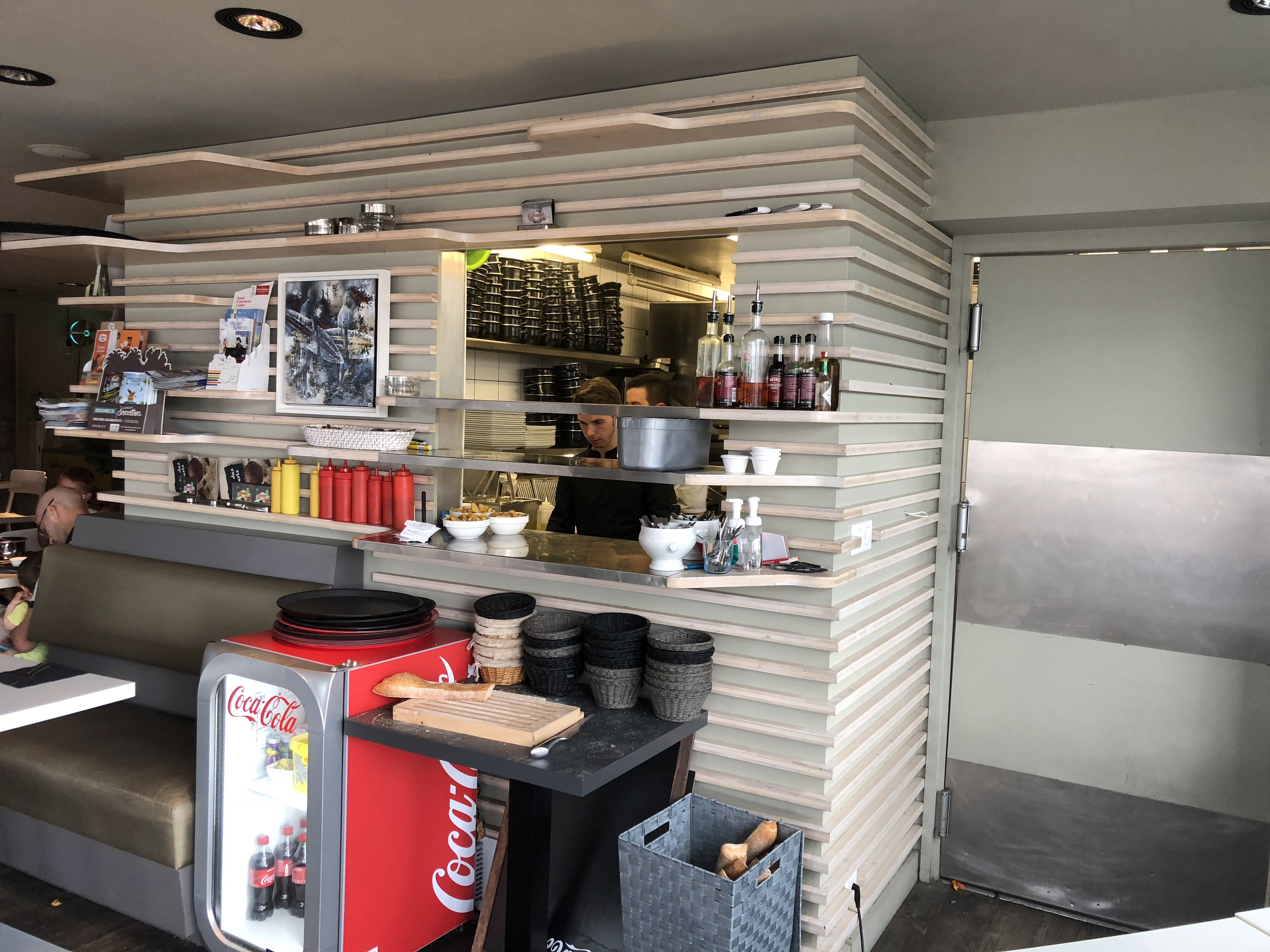 Repas très moyen ,pizza sèche et sans intérêt, moules dont la sauce était sur le dessus, mais plus rien en dessous. Vu le passage naturel et la queue pour venir y manger ,cela ne doit pas trop leur porter préjudice.