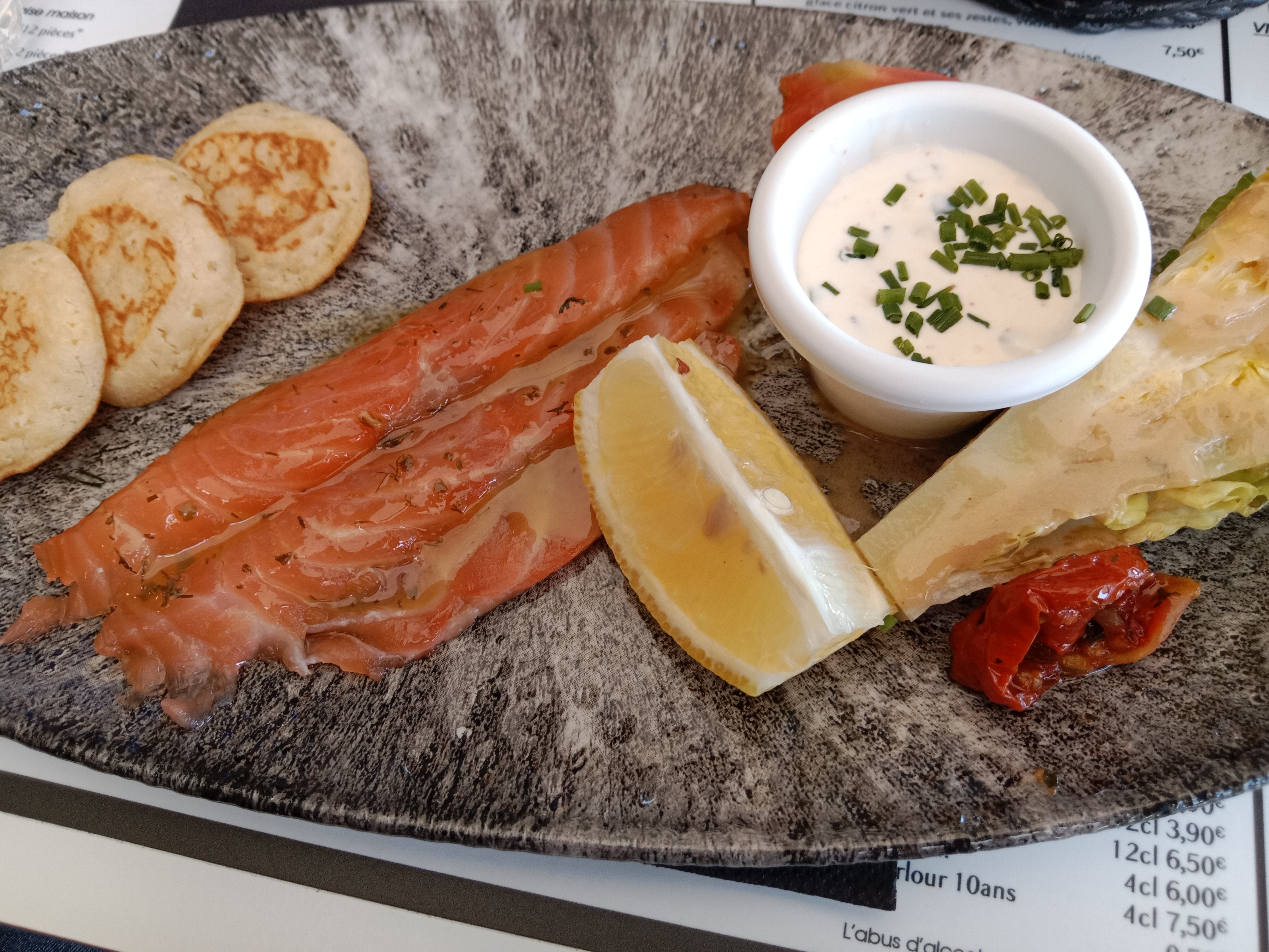 Le tartare de saumon du chef était très bon, le service chaleureux et rapide un midi d'avril. Situé juste en face de l'aquarium je vous conseille de manger là après votre visite