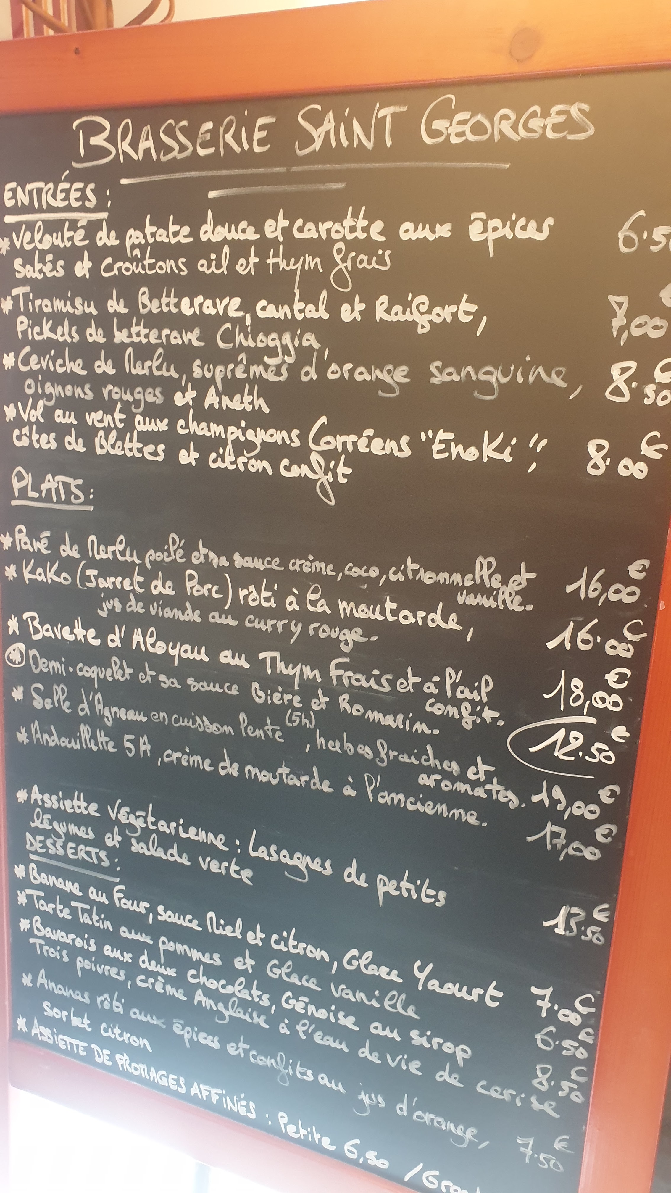 Quel endroit parfait ! Je n'arrive toujours pas à croire à quel point le personnel de la Brasserie Saint Georges était gentil, serviable et pro avec nous hier, car nous sommes arrivés après 19 heures sans réservation et toute la ville était bondée. J'ai trouvé cet endroit sur Google grâce aux bonnes critiques et je voulais vraiment y dîner et montrer à mon fiancé néerlandais la vraie cuisine française lors de notre dernière soirée de vacances. Chaque plat était copieux, savoureux, joliment présenté et préparé avec des ingrédients de haute qualité. Mention spéciale au tartare de veau et boudin parmentier. L'ambiance, la nourriture et le service étaient 5 étoiles et pour un prix très abordable. Merci encore!