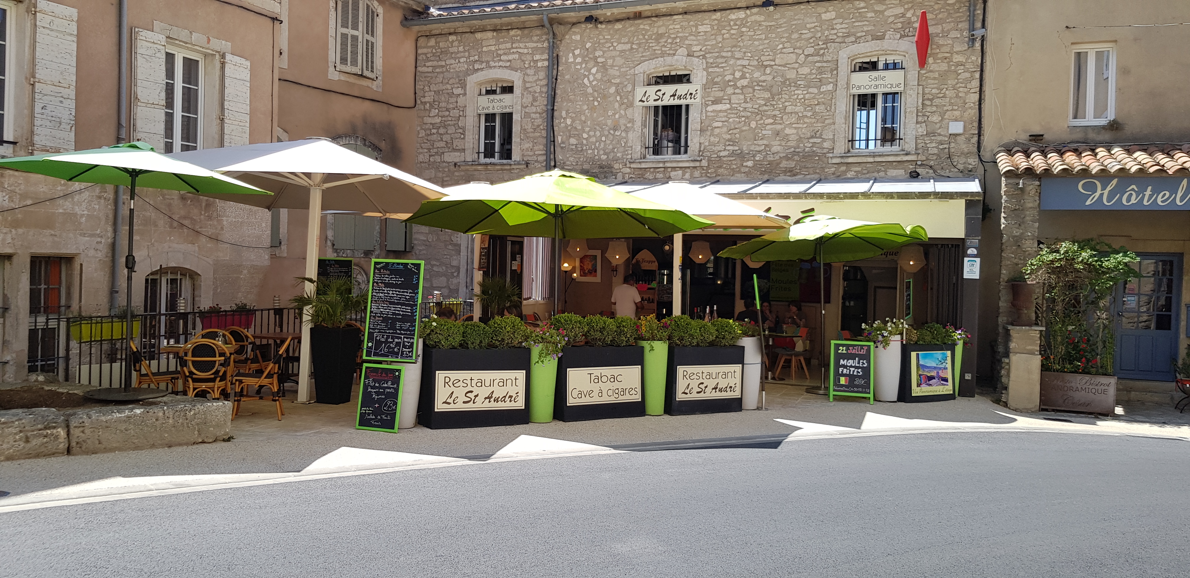 Nous sommes passés ce dimanche par le St André à Bonnieux, un homonyme 😊. Mais parlons cuisine et Dégustation (avec un D majuscule). Tout d'abord l'accueil : on se sent bien et surtout bien conseillé. Et arrivent les plats ! A Bonnieux on peut se dire piège à touristes... Et bien non ! Nous sommes de la région (parisiens exilés et ô combien comblés depuis 17 ans) et donc à l'affût d'une (très) bonne adresse et le St André en est une ! Pour ma part, une entrée simple, jambon cru et carpatio de melon, par-fait, ensuite un carpatio de bœuf... La viande coupée au couteau et assaisonnée aux petits oignons accompagnée d'une salade et de frites moelleuses est un régal pour mes papilles. Mon épouse a opté pour des ravioles aux truffes et m'en parle encore aujourd'hui tellement elle s'est régalée. Bref, si vous passez par Bonnieux, faites une halte culinaire au St André, vous ne le regretterez pas. Ah, j'ai oublié pour accompagner mon carpatio, un petit Luberon (Chasson) qui a sublimé le tout. C'est certain nous y retournerons !