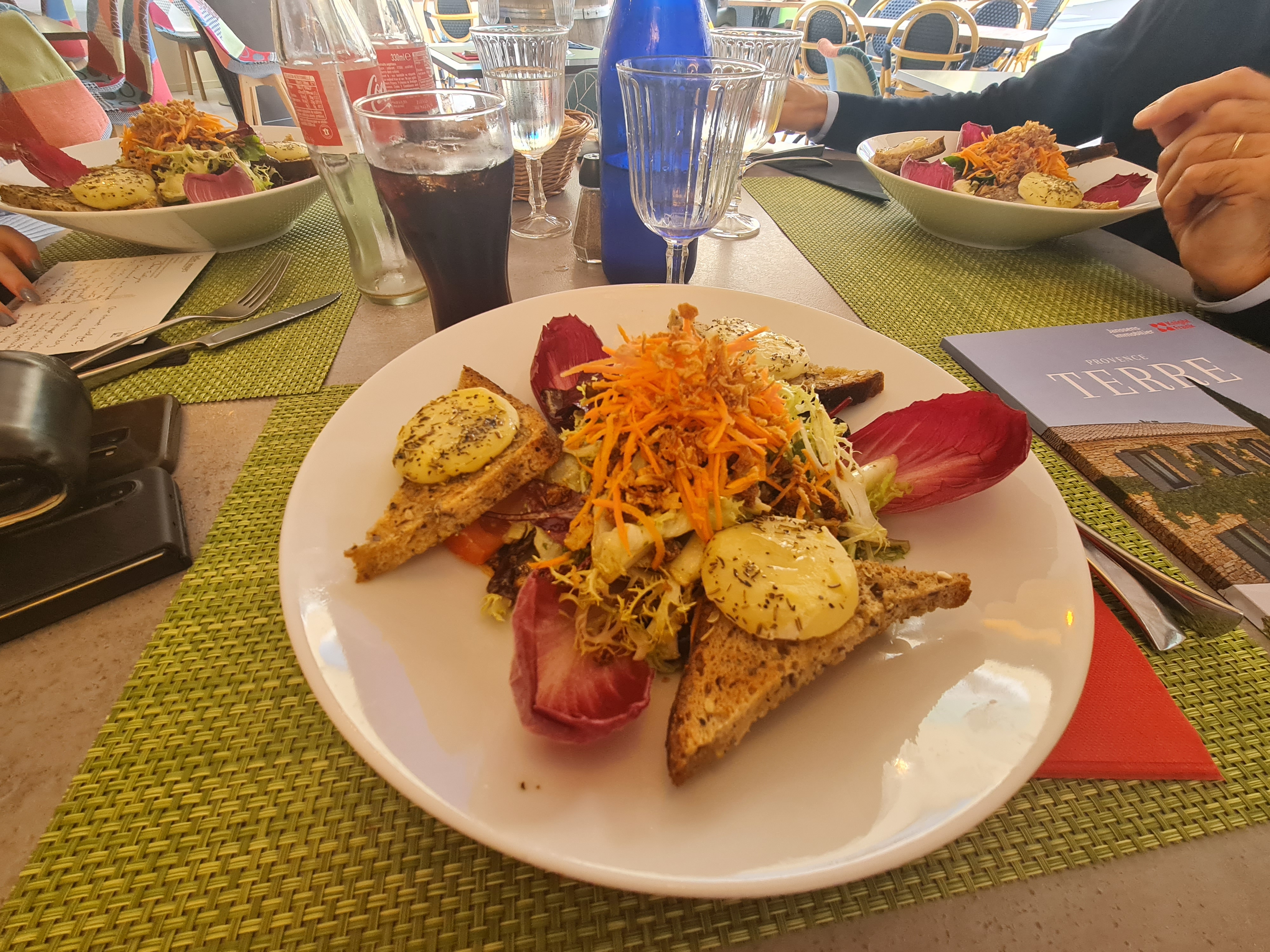 Trop cher pour ce que c'est Salade trop peu assaisonnée Et granuleuse...reste de sable ....salade mal lavée Voiture qui passe en continu. ...pas très agréable
