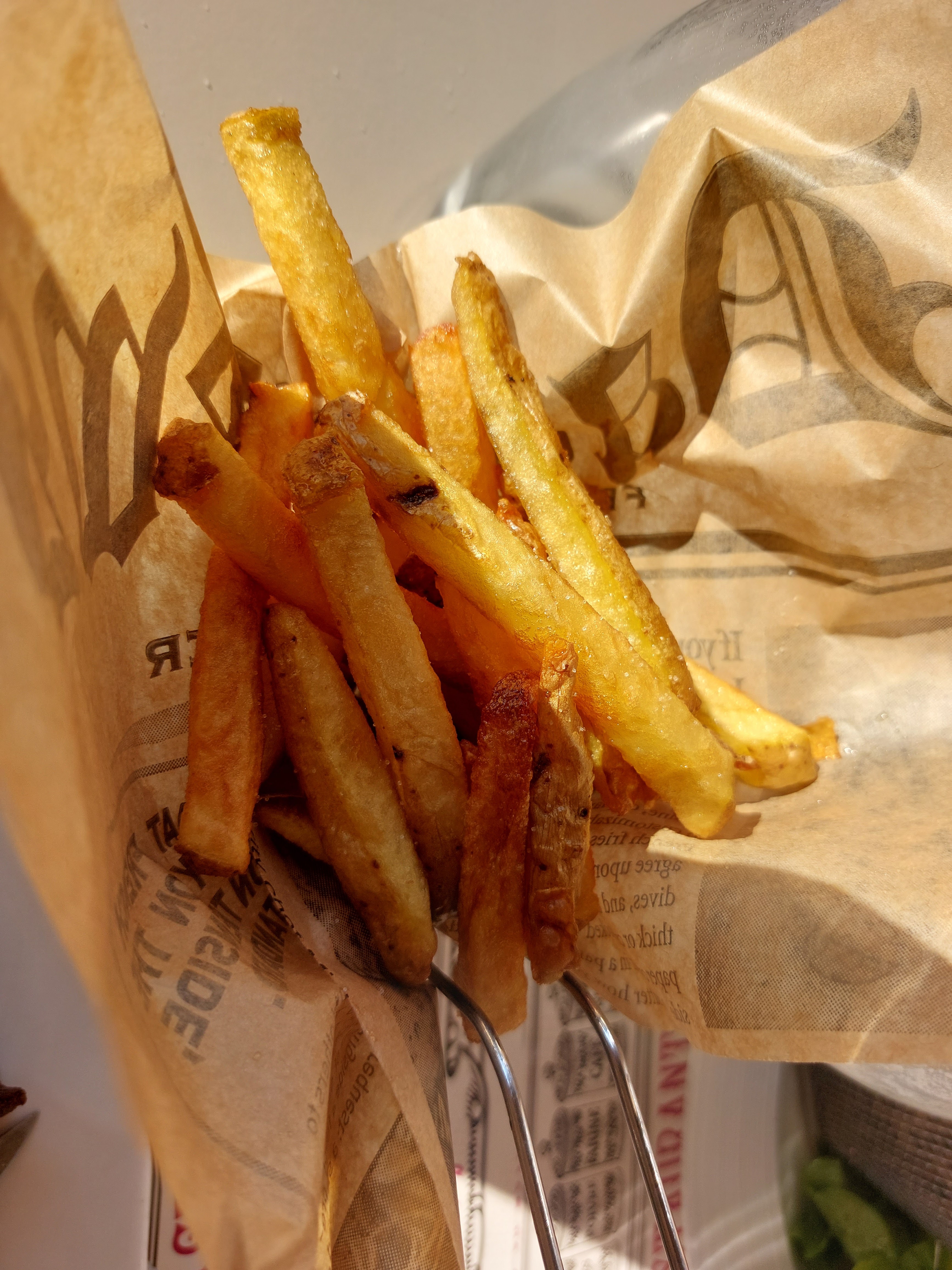 Nous avions faim et nous nous sommes arrêtées à ce restaurant . Accueil froid , les serveurs manquent de professionnalisme . Ils n'ont pas demandé les pass sanitaires , ni à nous ni à toutes les personnes qui rentraient . Les frites ne sont pas bonnes du tout . Nous avons eu droit à deux petits bouts de pain . Franchement j'ai été déçue , je ne recommande pas .