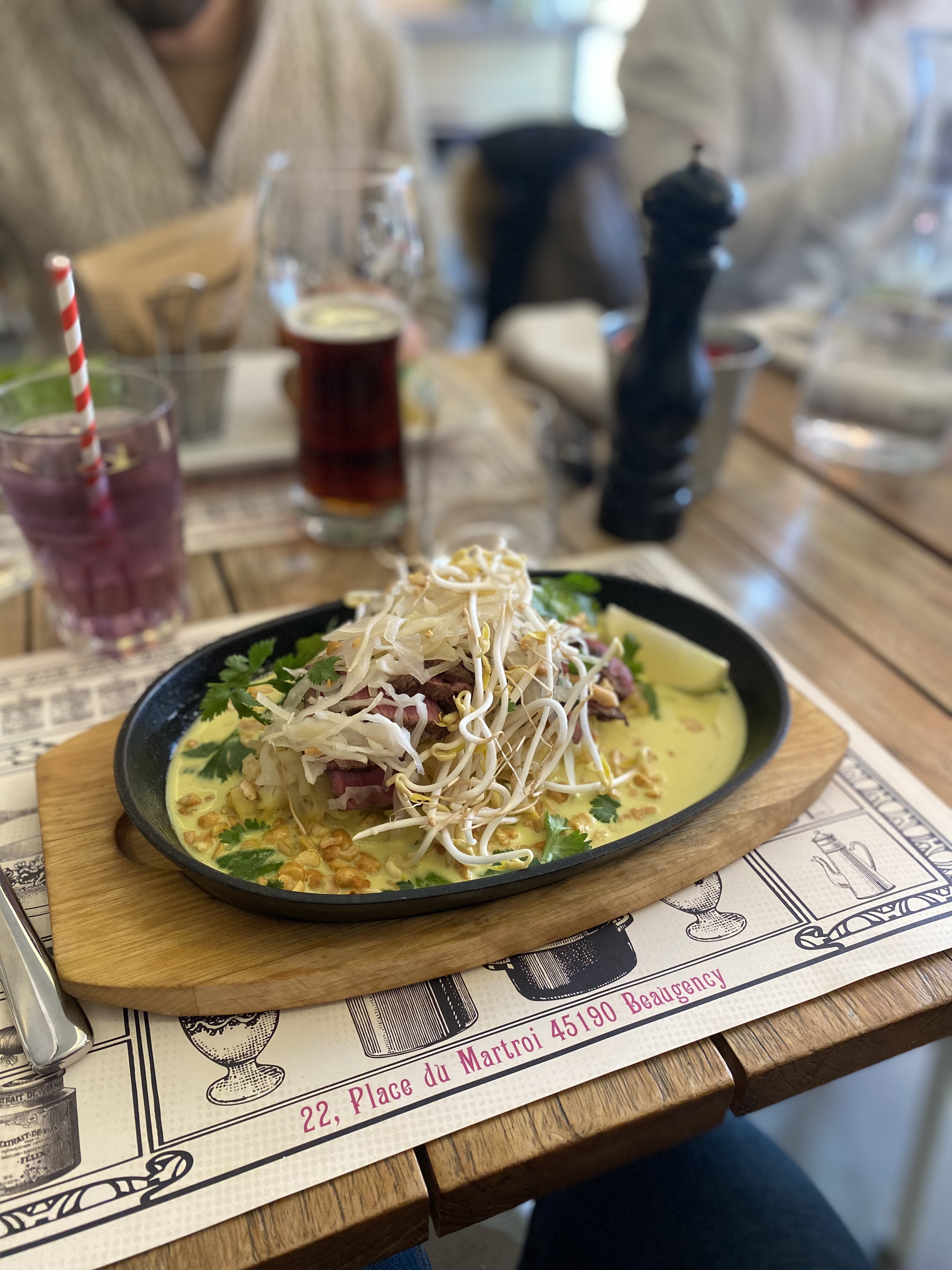 Accueil sympa. Très joli cadre en particulier belle salle au premier étage. Bons plats, portions généreuses, nous avons apprécié les burgers et les côtelettes de saumon. Le pad thai était un peu trop citronné. Bel emplacement dans la place de Beaugency