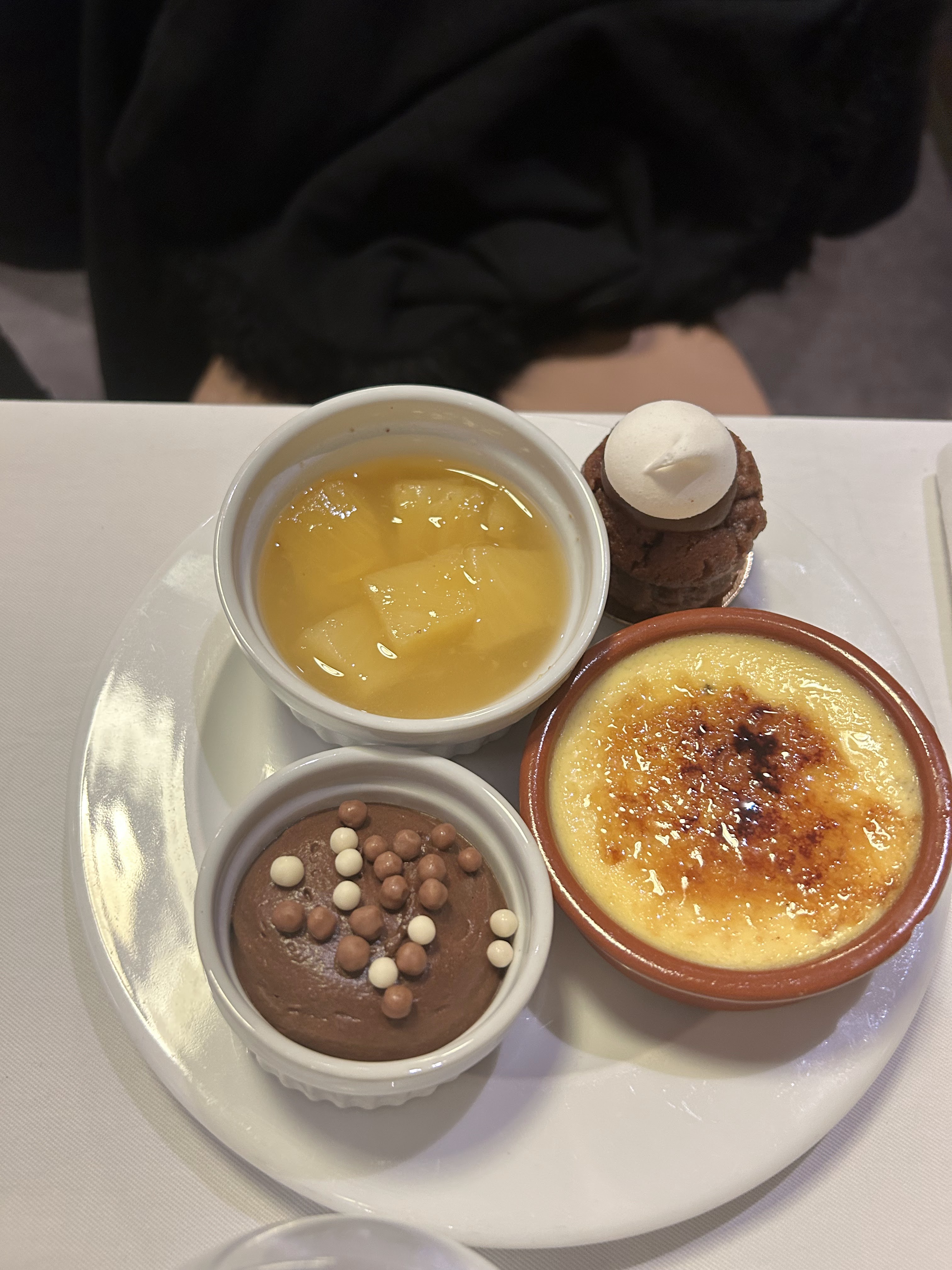 Excellent repas, et des desserts excellents et un personnel au top Par contre, nous y sommes retournés pour ls St Valentin et nous avons été déçu Mal assis quand on fait 1m80 et impossible de boire un verre de vin car c'était directement une bouteille ou rien Vraiment dommage