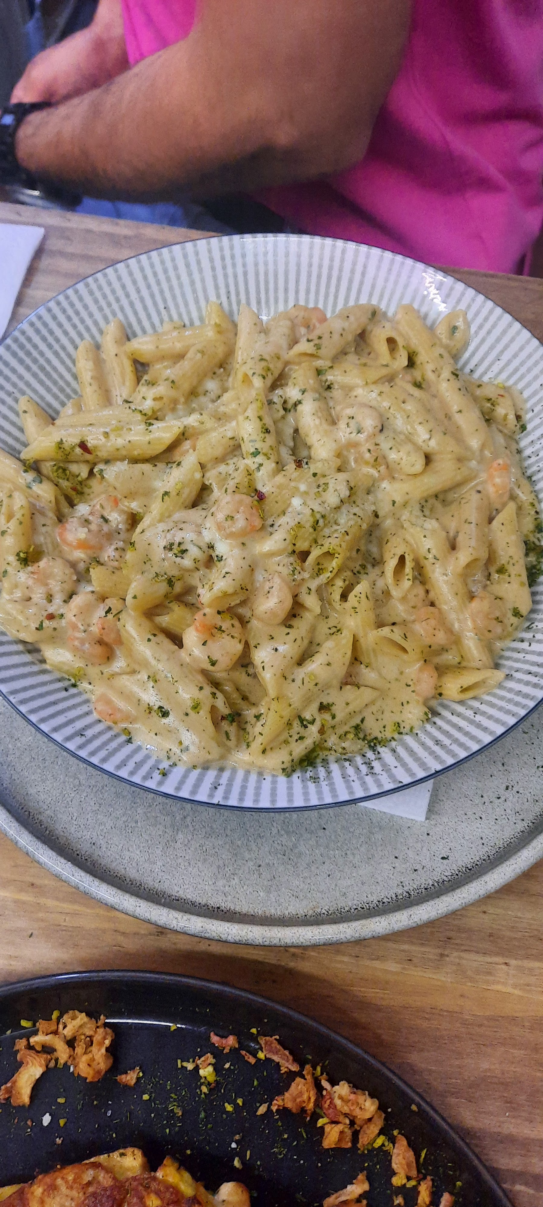 Ultra déçue par ce restaurant noté 4,9/5. J'y allais très confiante sur la qualité des saveurs. Je choisis le risotto, malgré sa mauvaise orthographe sur la carte. J'aurais du me méfier d'un mélange de poulet et saumon. Alors ce n'est pas un risotto, mais c'est du riz basmati ou thai en cuisson classique. Quant aux saveurs, aucune cohérence, trop de laurier et autres herbes. Assaisonnement très salé. Le tout nappé d'une espèce de sauce sucrée. Niveau quantité, il y en a largement pour 2, ça oui. En tout cas je n'ai pas pu en manger grand chose malgré ma faim. La photo du plat parle d'elle-même. Risotto. Les mamies italiennes doivent se retourner dans leurs tombes !
