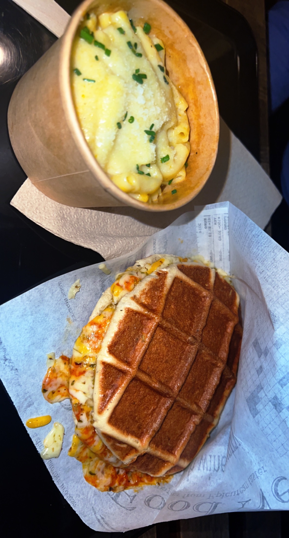 Très bons sandwichs/ gauffres si on peut appeler ça comme cela, avec comme accompagnement des Mac&chesse ce qui change des autres fast food/restaurants. La gouffre au saumon manquait un peu de gout, manque de citron sûrement mais était bonne quand même. Le prix est vraiment correct, je recommande !