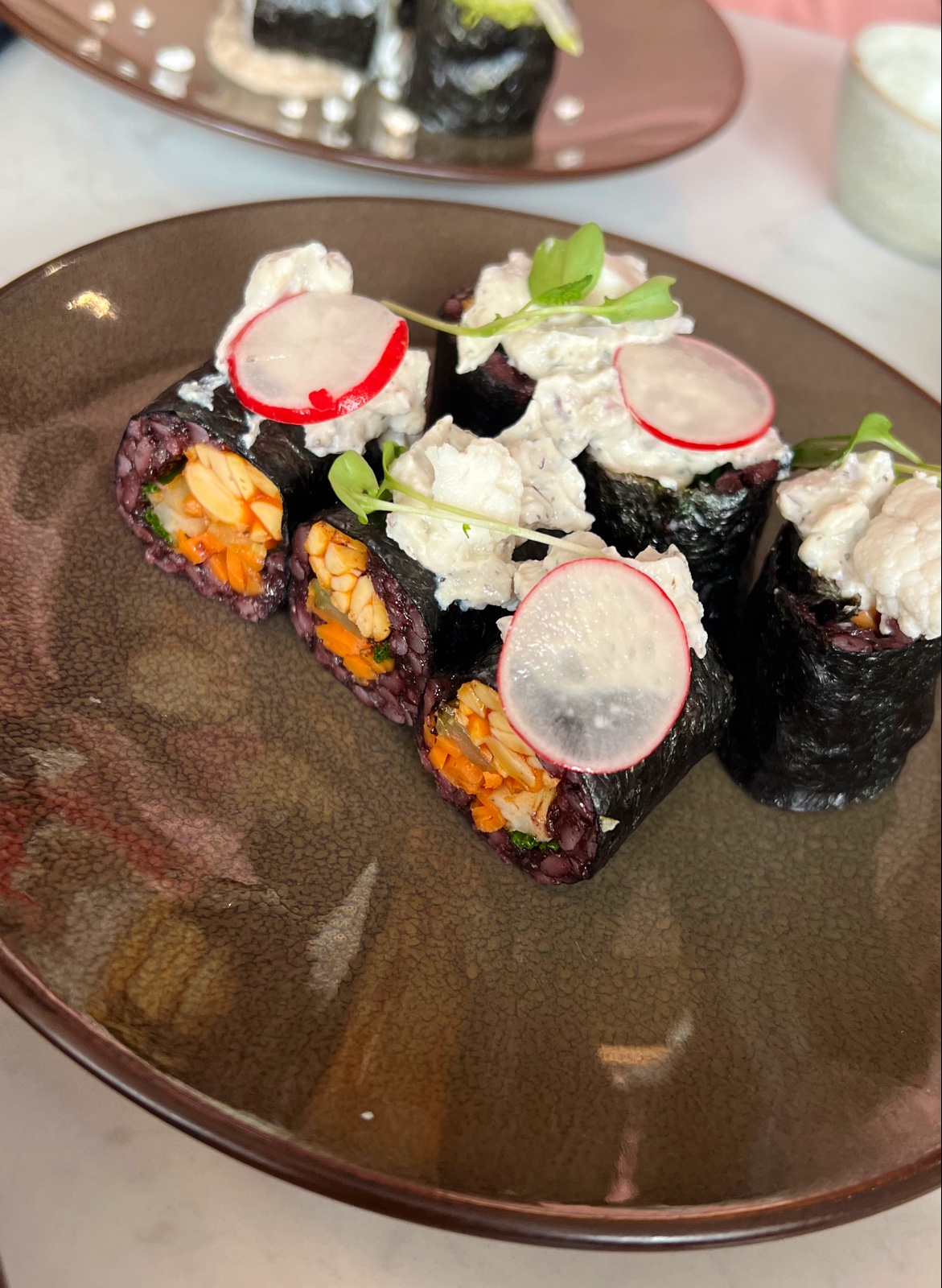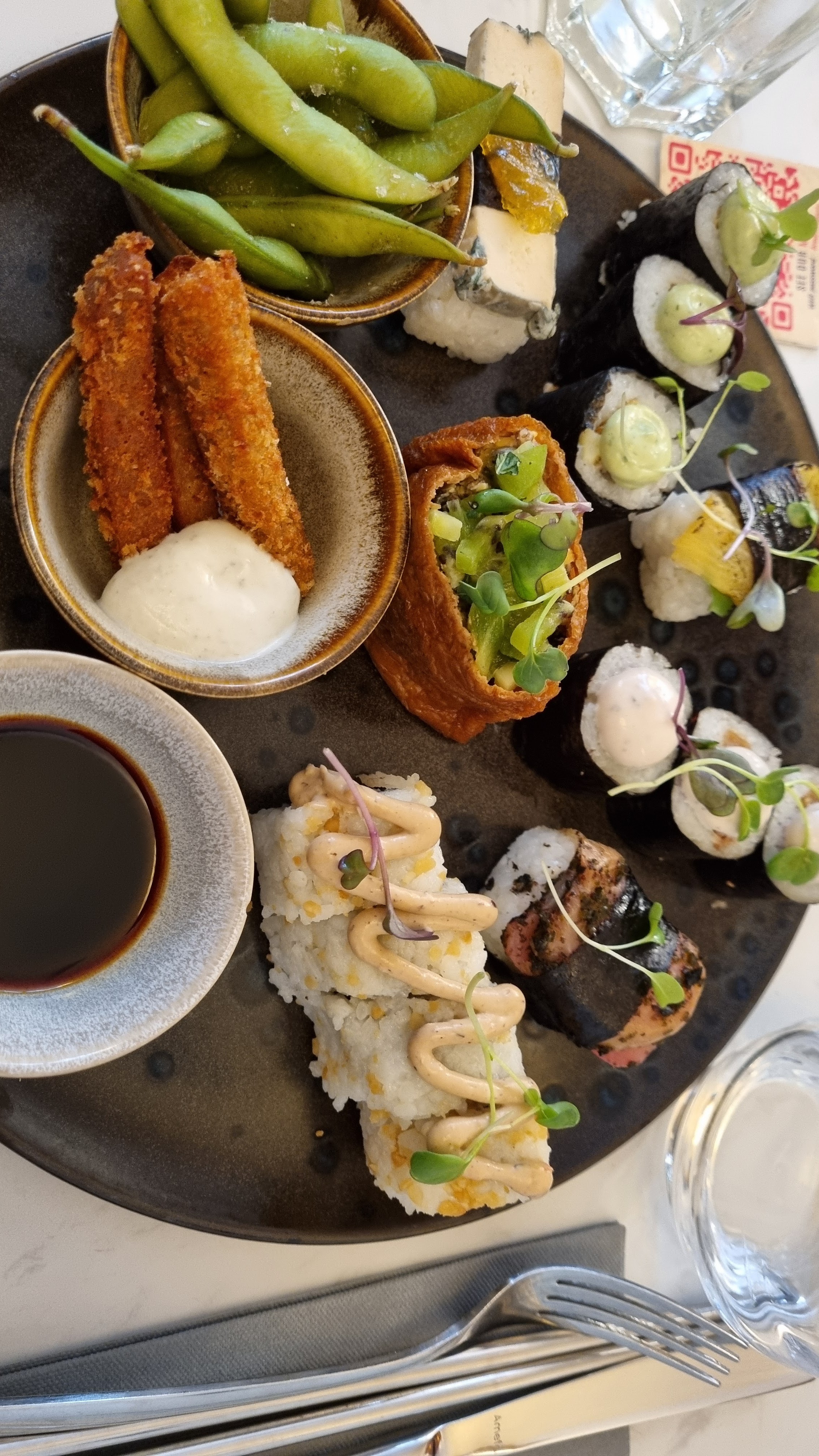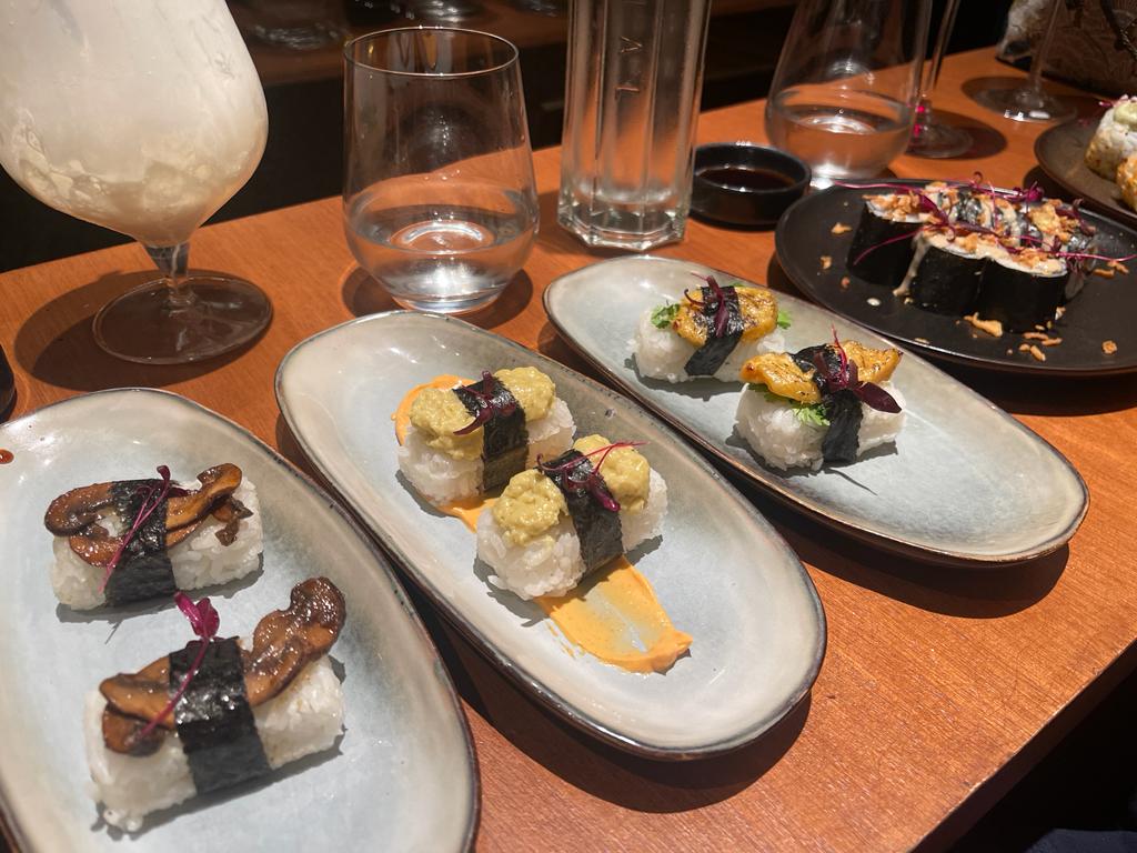 Les sushis sont beaux et surtout très bons. Nous avons testé le menu découverte pour tout goûter 😋 Gros coup de coeur pour les makis olive fumée. Restaurant de sushis vegans au top, hâte de revenir 😄 J'ai largement préféré mon expérience ici que chez bloom sushi (où les sushis sont un peu fades à mon goût).