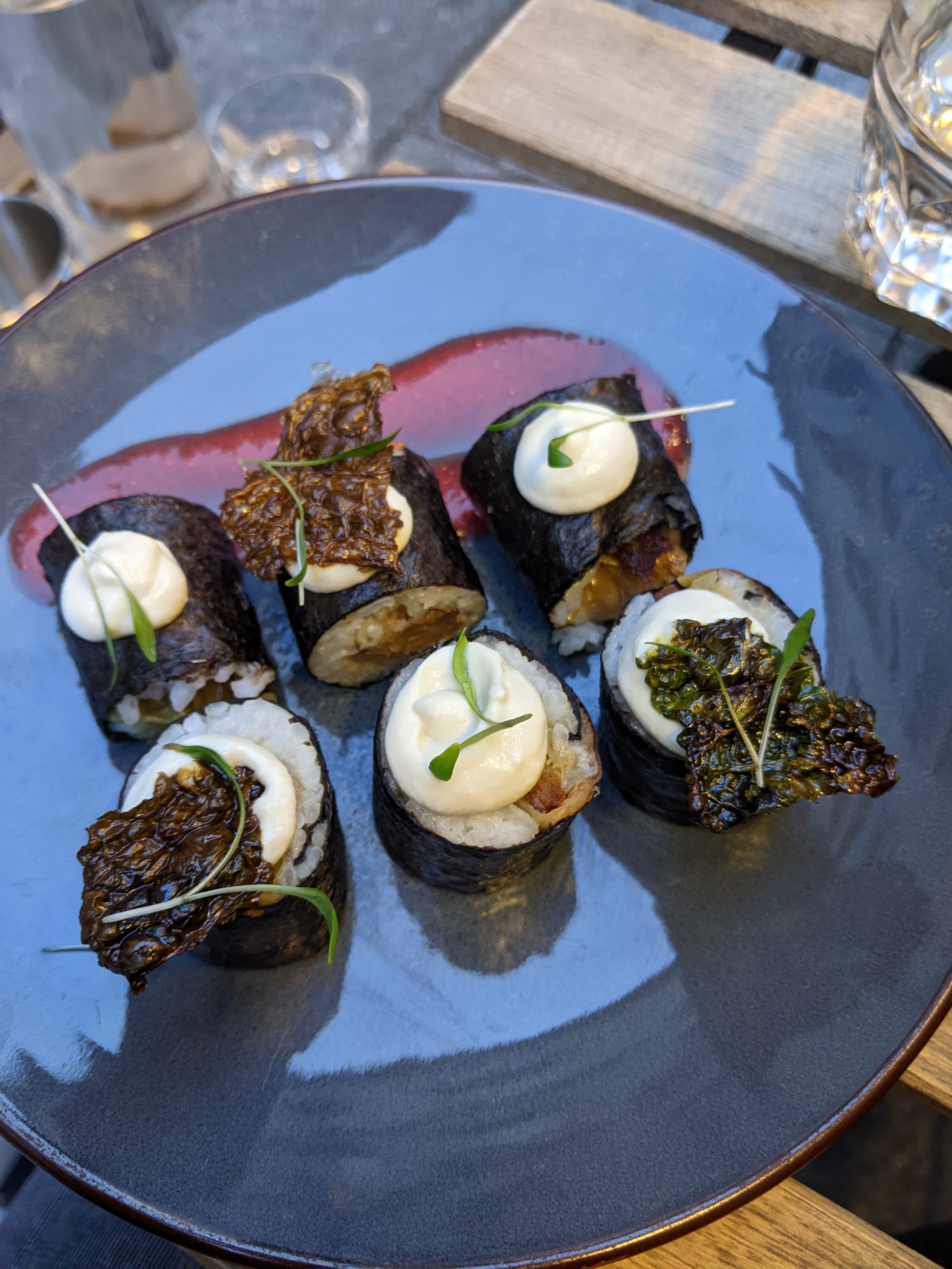Nous n'avons pas été emballé par le concept. Peut être aurions nous dû essayer d'autres choses sur la carte. Nous avons pris des makis et California rolls frits et les saveurs n'étaient pas assez prononcées à notre goût. Pour du vegan, on s'attendait à des explosions de saveurs et associations complexes surtout à ce prix là. 10 euros pour 6 pièces c'est pas donné surtout quand on est déçu du goût ou de son absence