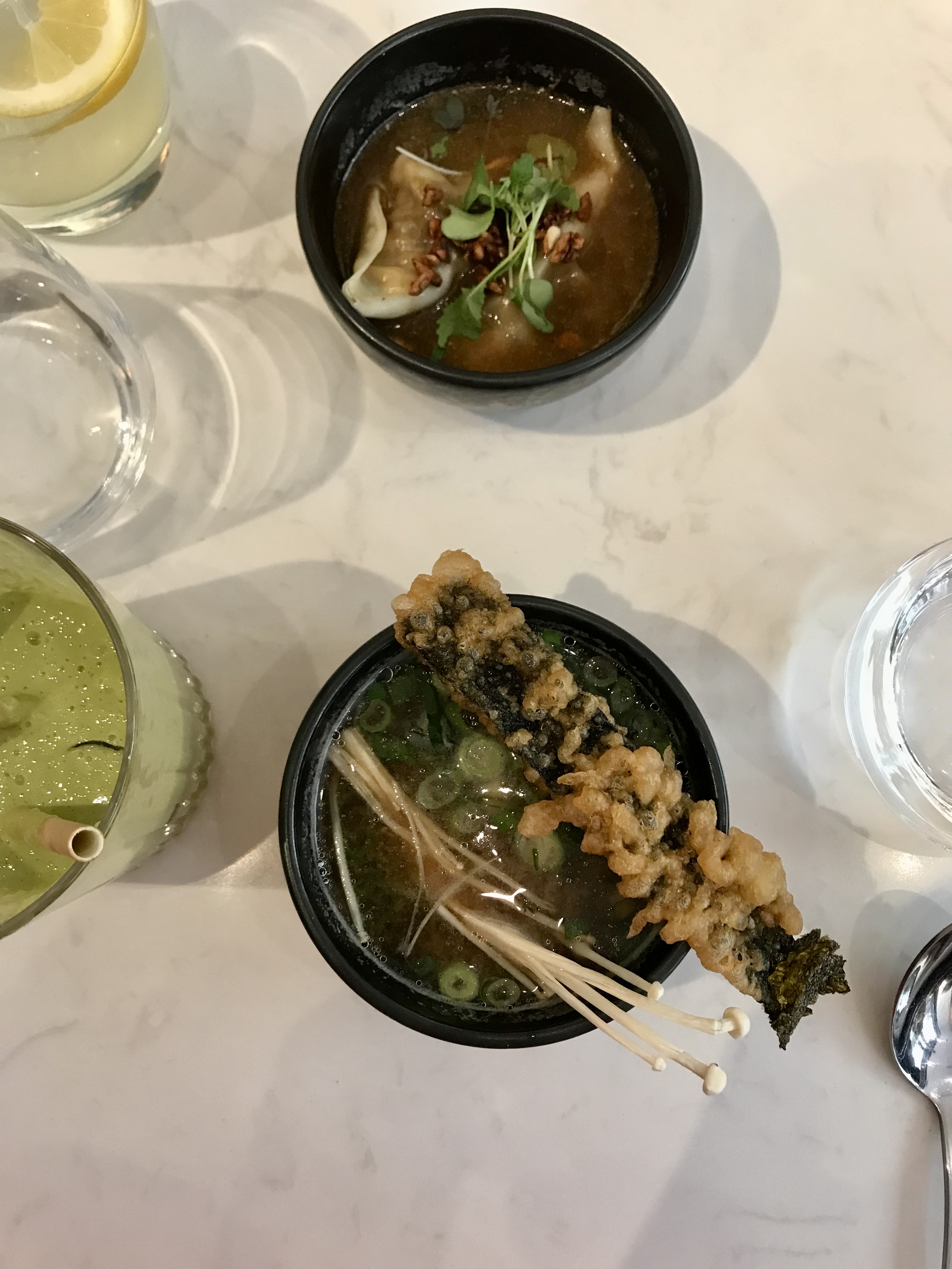 Que dire si ce n’est que c’était une tuerie ! Déjà, pouvoir manger des mets d’inspiration japonaise sans avoir de trucs tout bateau à la maki concombre, c’était juste merveilleux. Et, ensuite, c’est dans la lignée du restaurant de Pigalle : il y a une telle recherche et un tel travail que chaque bouchée est une vraie explosion de saveurs. Et c’est tellement beau à voir en plus… Je voudrais aussi faire une mention spéciale pour le seitan maison qui était dans le ramen d’automne; le petit goût de cannelle apportait vraiment un petit plus à l’ensemble du plat.