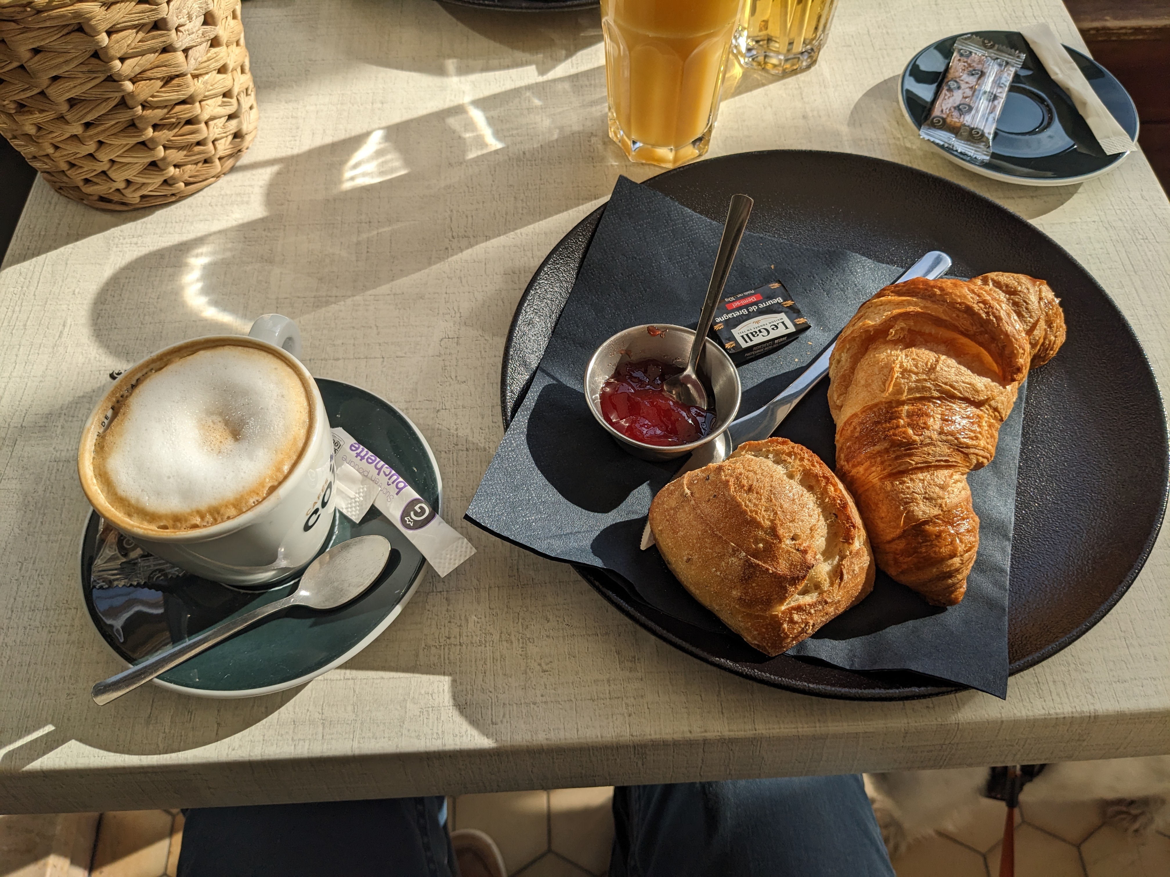 Un petit dej tranquille au soleil. Mention spéciale pour la gentillesse du serveur.