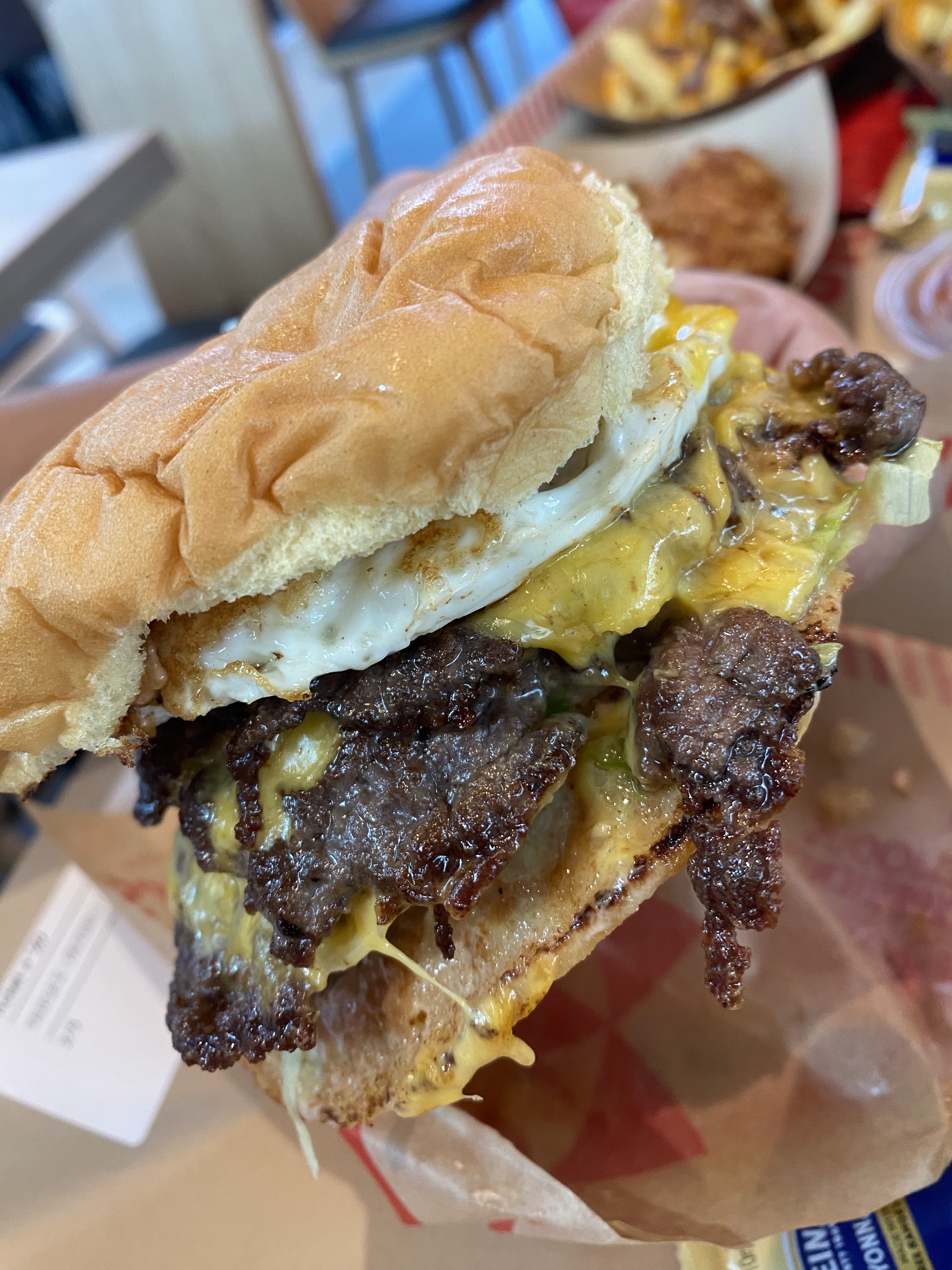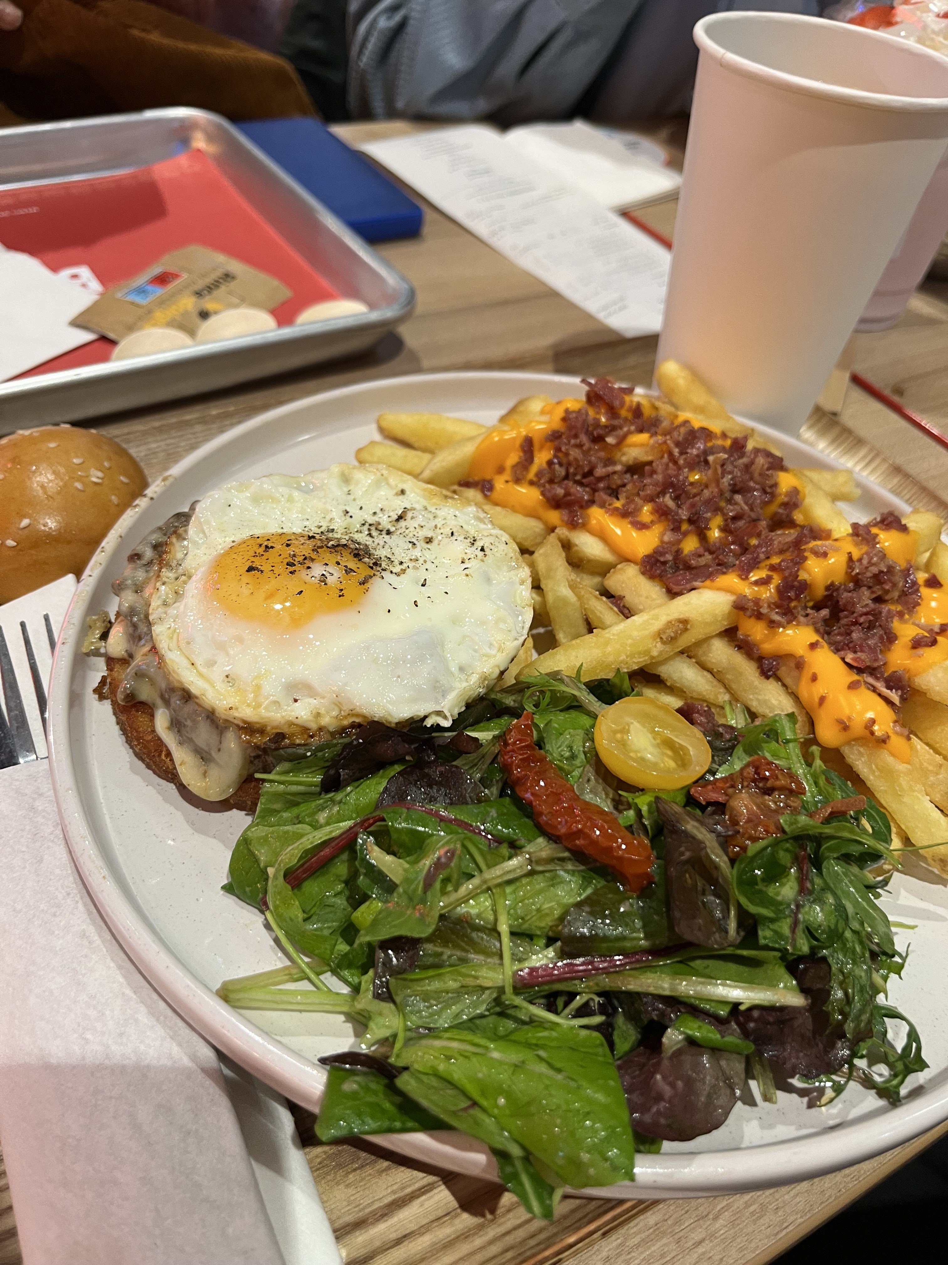 Les burgers smash délicieux le bacon sur les frites j'ai moins aimé, service rapide et bon accueil général.