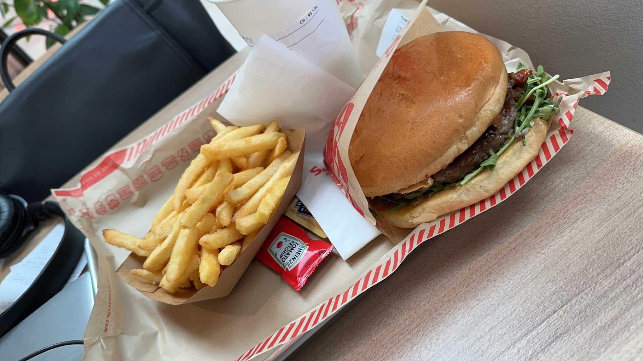 Super concept, nous avons goûté le smash burger simple efficace, pour moi le steak un tout petit peu salé et les frites pas trop salé au final c'est un bon équilibre (suggestion essayer d'assaisonner les frites avec épices cajun ou paprika fumé ça fait la différence), je reviendrai en famille, pour goûter autres choses , je recommande, dédicace au serveur prince sympathique et souriant.