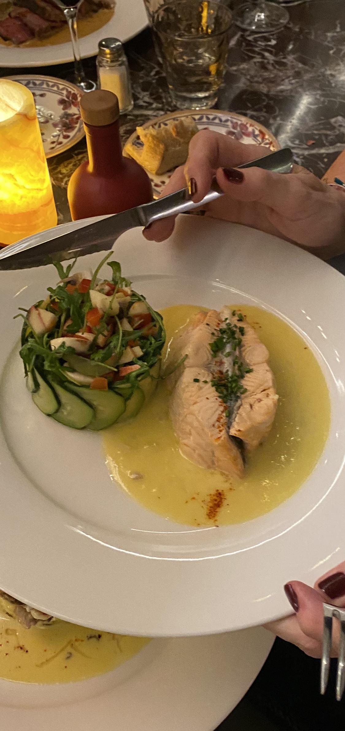 Dîner à l’intérieur cette fois, agencement raffinée, décoration et confort de qualité, on y est très bien. Accueil des barmans et du staff du restaurant super top, tenue vestimentaire de bon goût ! De l’apéritif jusqu’au dessert, des plats originaux et bons ça fait plaisir ! Service de Laurent, professionnel, souriant et dynamique, sans fausse note, tout simplement pro ! On a hâte d’y retourner pour la nouvelle carte !