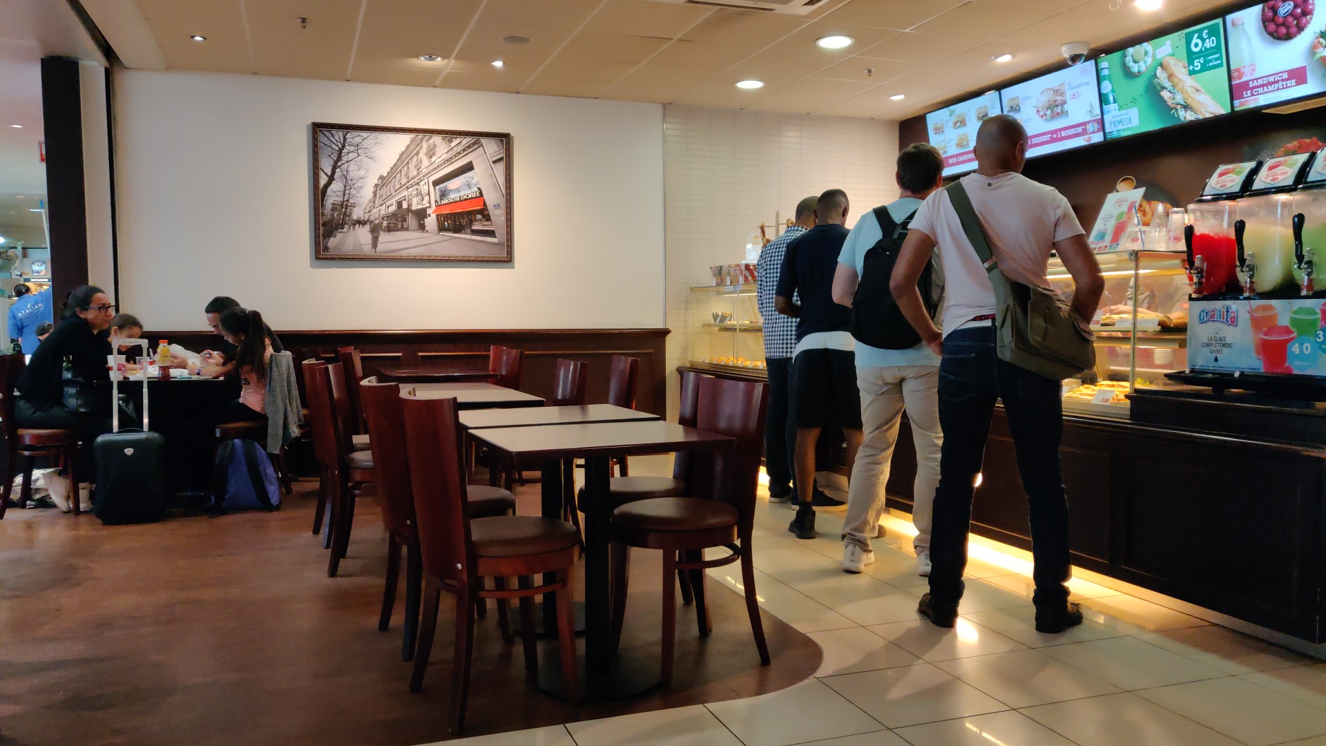 Cet avis concerne le petit kiosque entre les portes M46 et M44. Ma femme et moi avons fait la queue à l'ouverture pour obtenir de la nourriture. Pendant que nous commandions, la personne qui prenait la commande était plutôt méchante et très impatiente. Lorsque ma femme a mal prononcé un aliment, elle a été critiquée. Après avoir terminé la commande, la salope, qui s'est avérée être la gérante, a dit à la femme qui travaillait à la caisse de ne pas nous vendre. En revenant de PAUL, où nous avons acheté d'excellents sandwichs, la salope nous a insulté en anglais après nous avoir dit de commander en français plus tôt. Quelle blague.