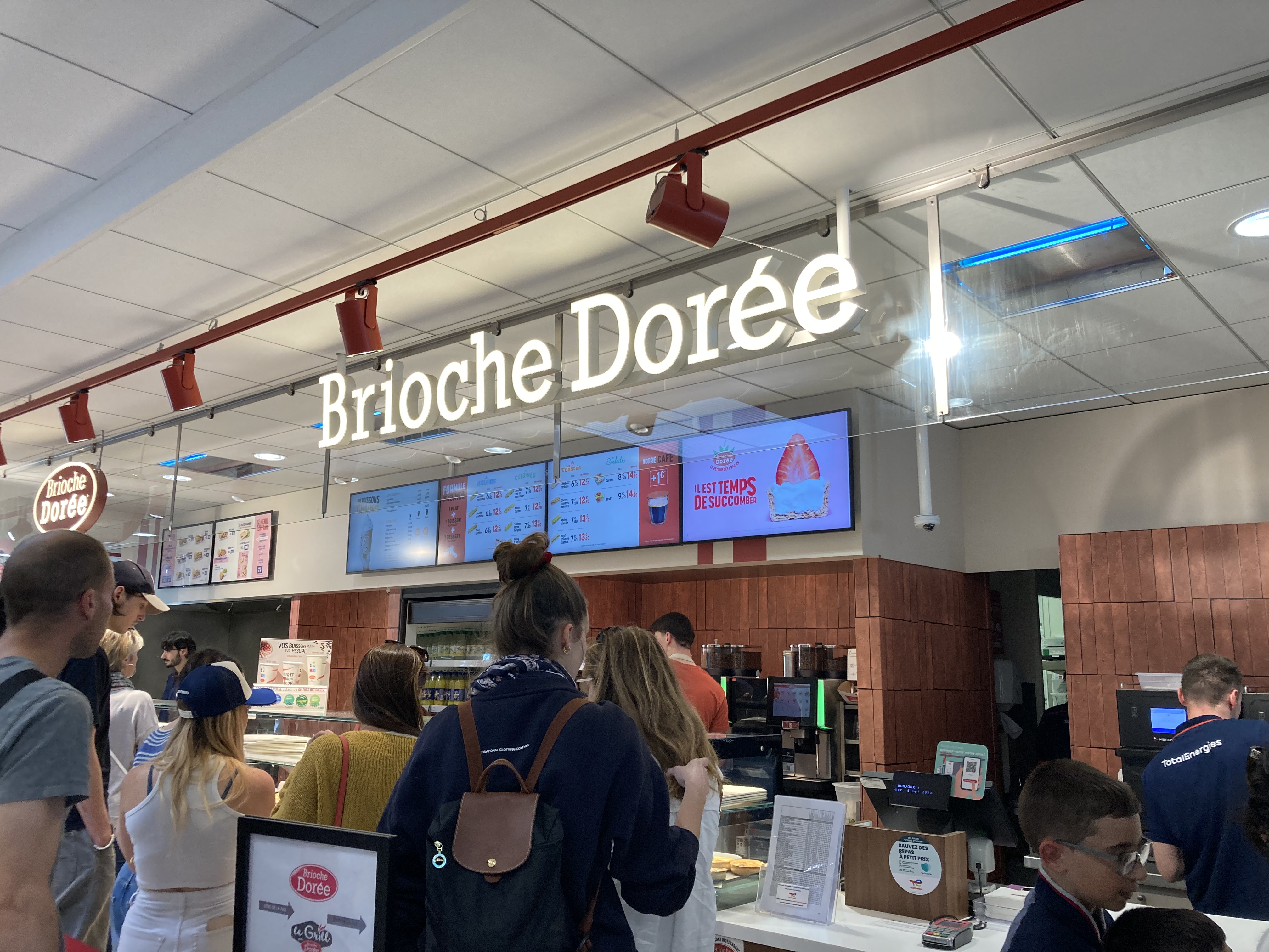 Brioche dorée: les sandwiches étaient plutôt bons. En revanche, la salle de restauration était dans un état lamentable quand nous sommes arrivés: toutes les tables disponibles étaient sales. Le sol était très sale également: mares de café et détritus en pagaille. Franchement irrespectueux des clients !