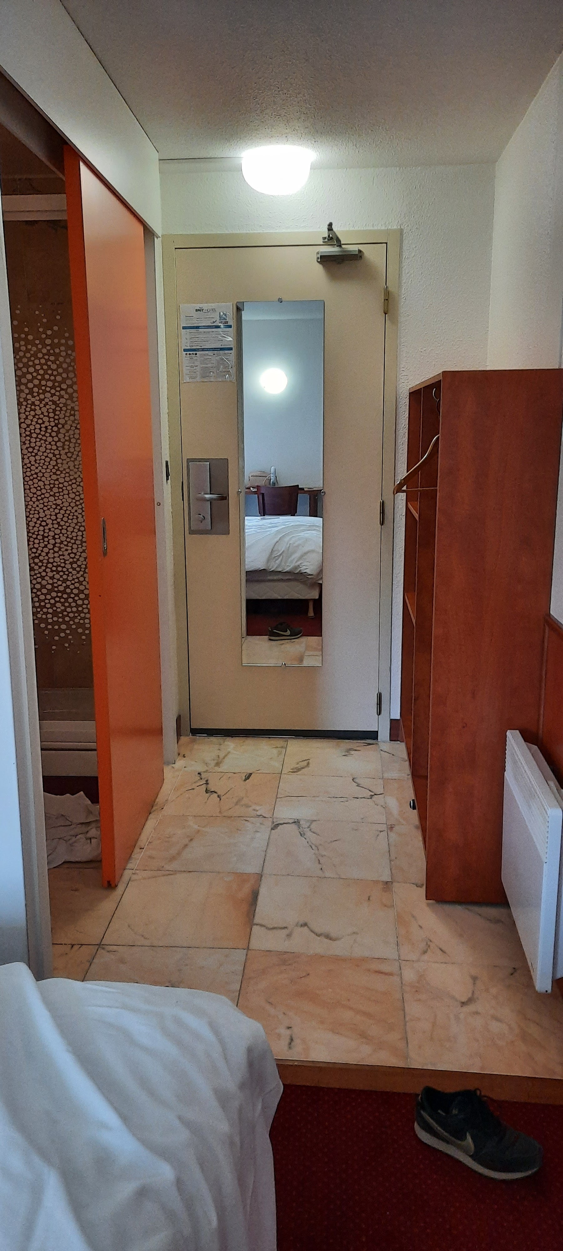 Literie super bonne j’y ai dormis comme un bébé. Un très grand lit ce qui n’est pas négligeable (180). L’organisation de la commande et de la prise de repas est bien rodé, choix varié même si j’avoue que la quantité est était à mon goût un peu juste.. une bonne adresse propre et efficace, pas bruyant. Visite de nouveau dans cet hôtel qui m’avait laissé un très bon souvenir, hélas les jours passent et mes ressentis sont différents : douche qui ne chauffe pas.. longtemps longtemps...puis un filet d’eau pour se doucher le débit est parti en vacances, et pour finir la douche ne s’évacue pas correctement. D’une semaine à l’autre mon avis est donc devenu plus négatif que lors de ma première visite.