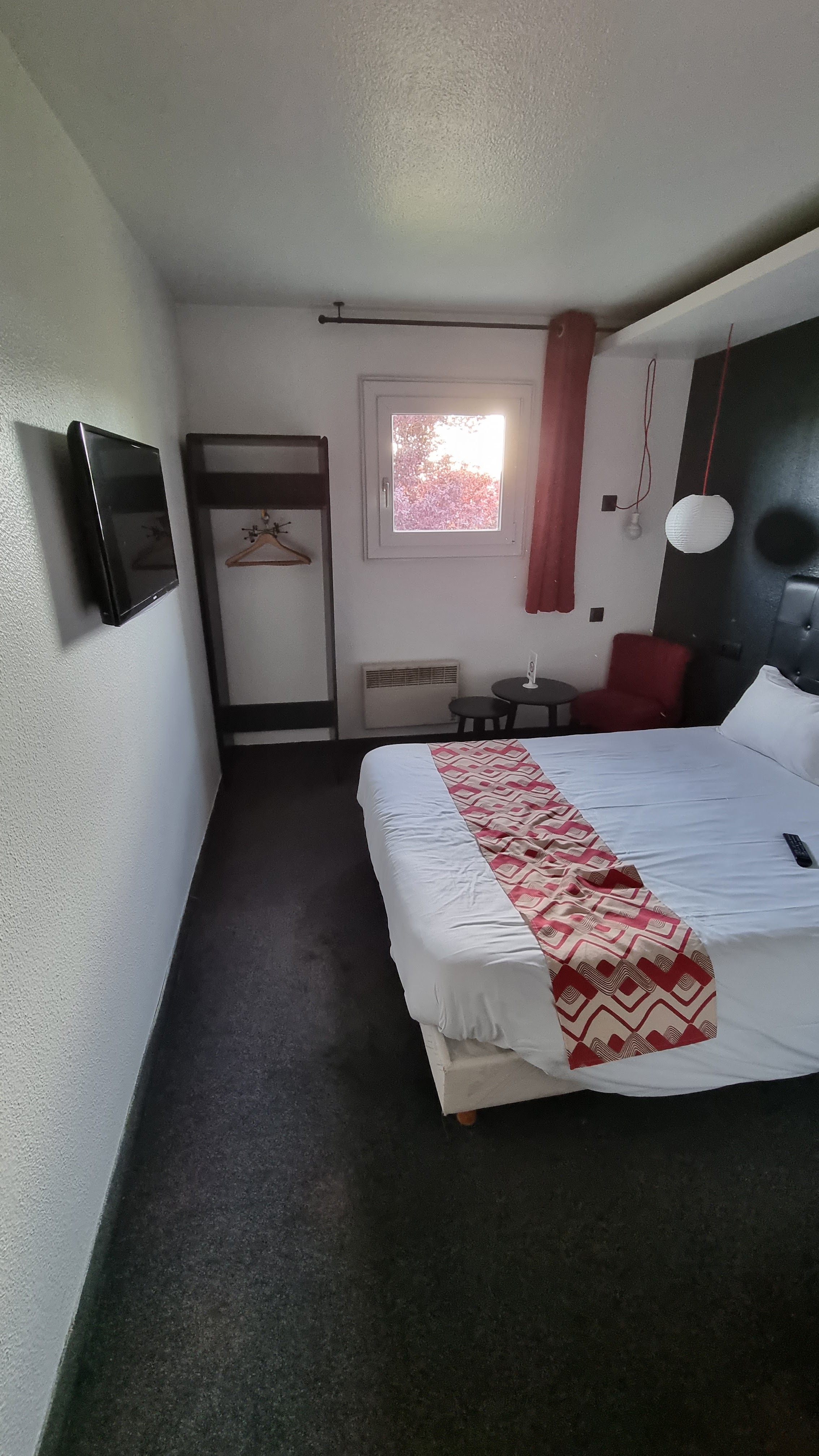 Lit confortable, avec une télé un peu trop haute. Il fait bien chaud dans les chambres mais manque une lumière au plafond. : Un séjour agréable à l'hôtel.