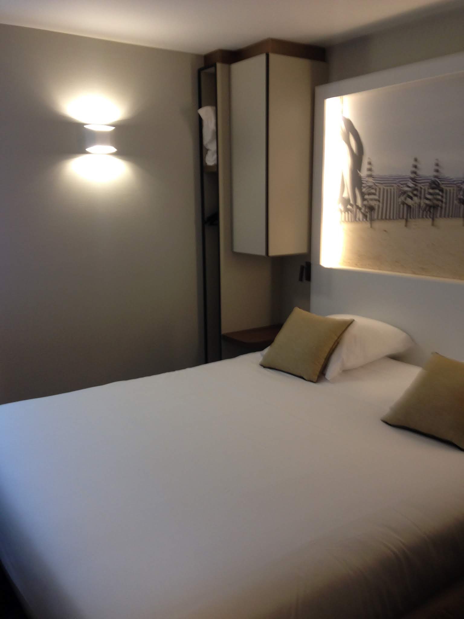 Bonne literie, propre,chambre simple et classique, attention de ne pas être au niveau des portes battantes, bruyant, petit déjeuner correct Ne pas oublier les frais d'hébergement