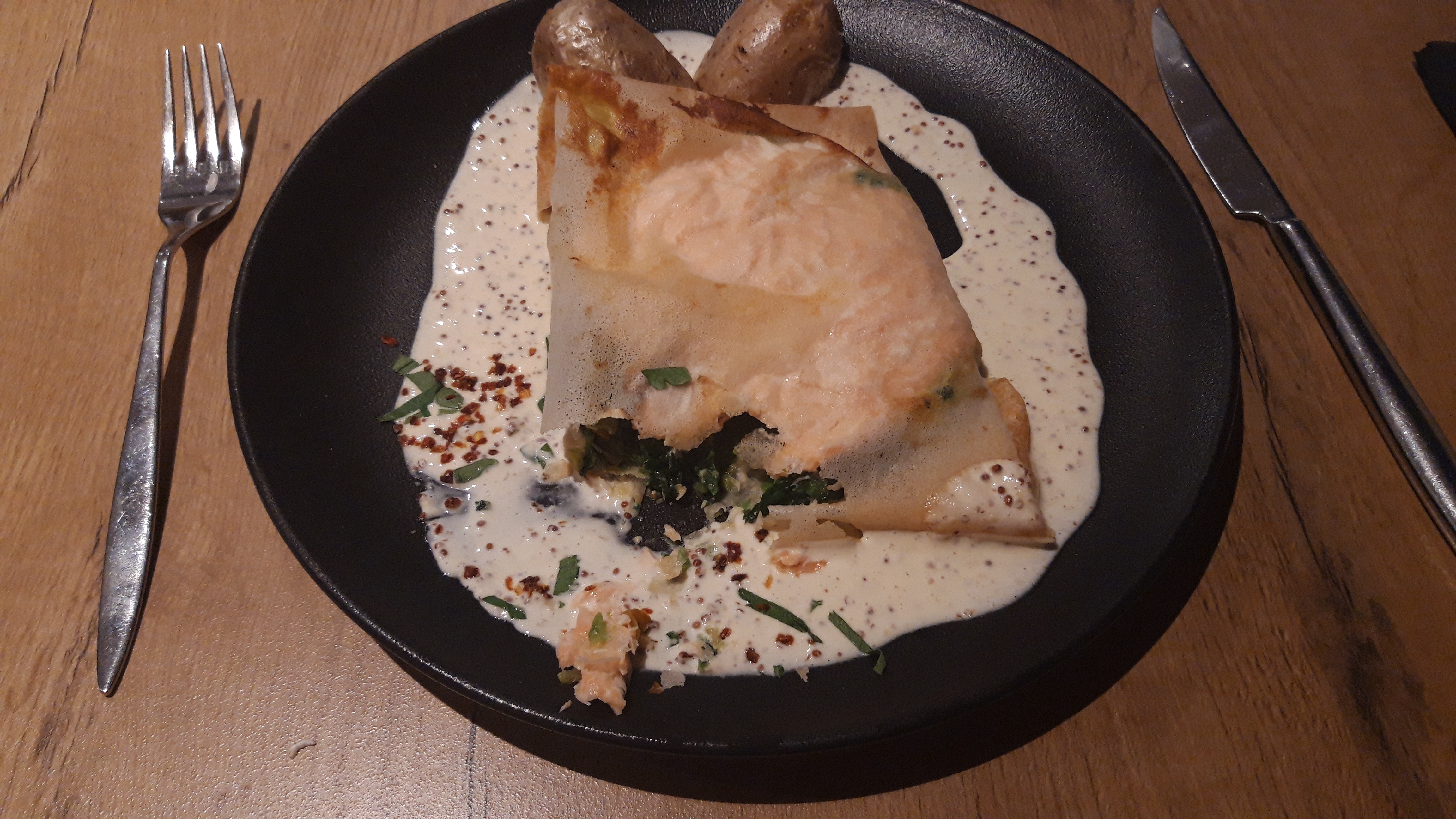 Très bon restaurant, service impeccable et un personnel très agréable. Un chef qui a une vrais personnalité et qui innove. Belle présentation. Il doit connaître bien le poisson. Véritable escalopes d'espadon bravo. Bon rapport qualité prix.