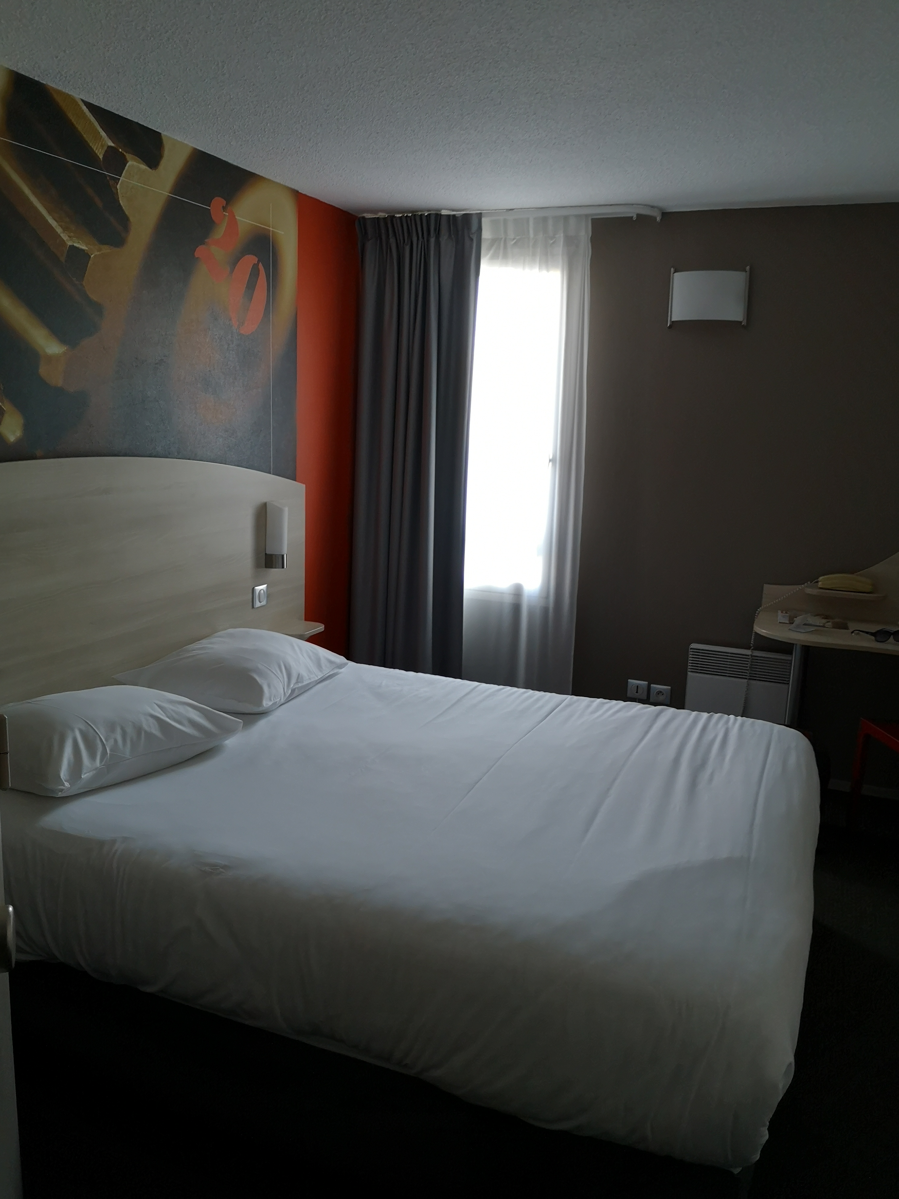 Après une étape au Brit hôtel de Nantes la Beaujoire, quelle déception! moquette malodorantes odeurs de cigarettes, Chambre vétuste, revêtement muraux exotiques(feuille A3 agrafée faisant office de camouflage), moquette tachée, salle d eau minuscule (on se croirait dans un hôpital)..bref, je ne comprends pas les codes d un 3* dans ce qui nous a été proposé.. un seul point positif, l accueil souriant par la jeune fille a la réception.
